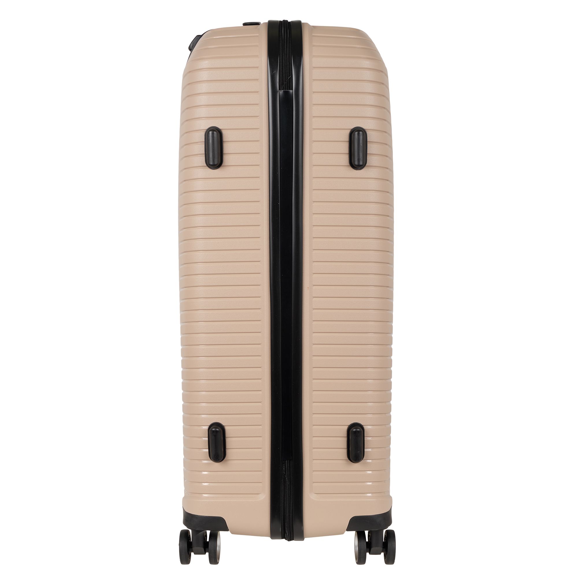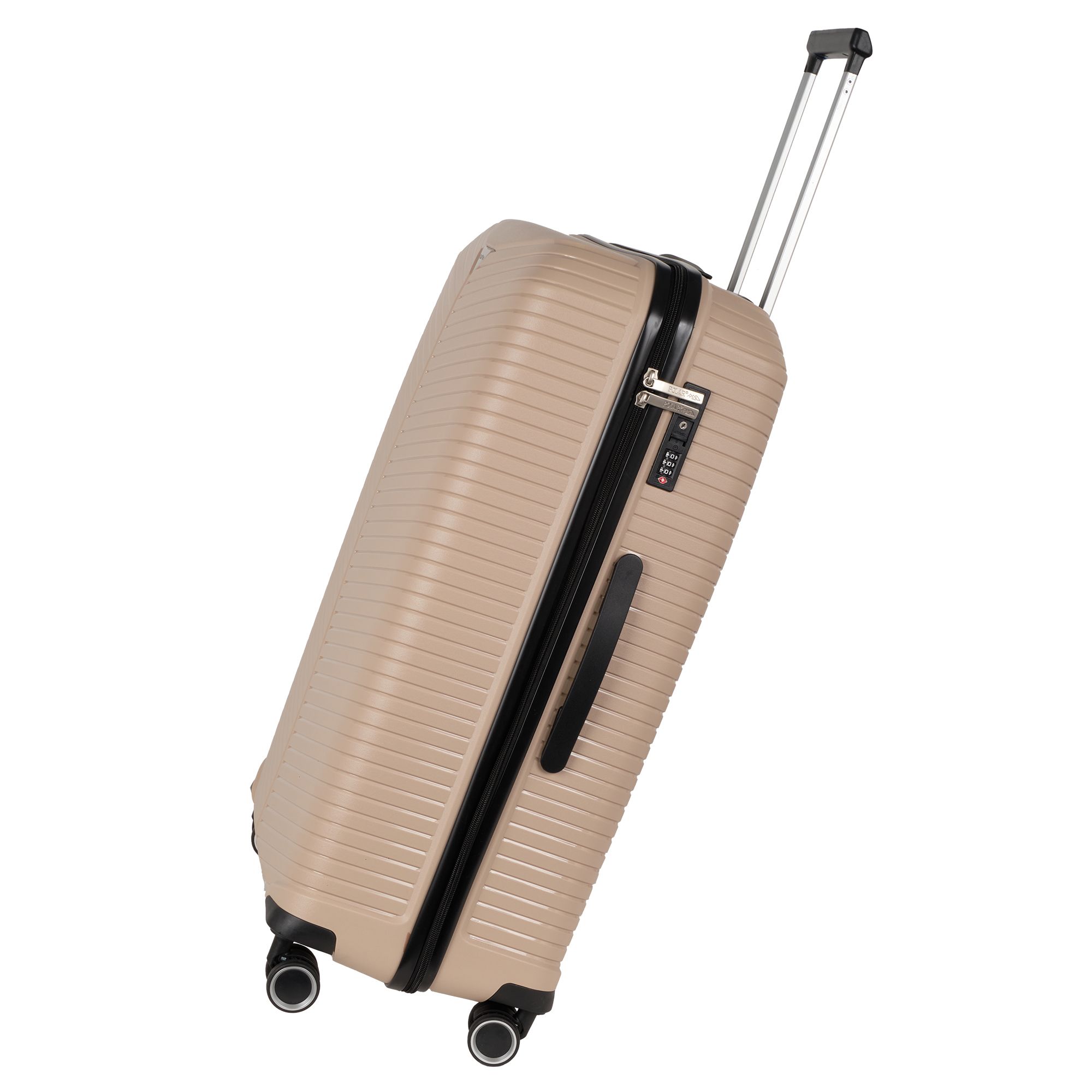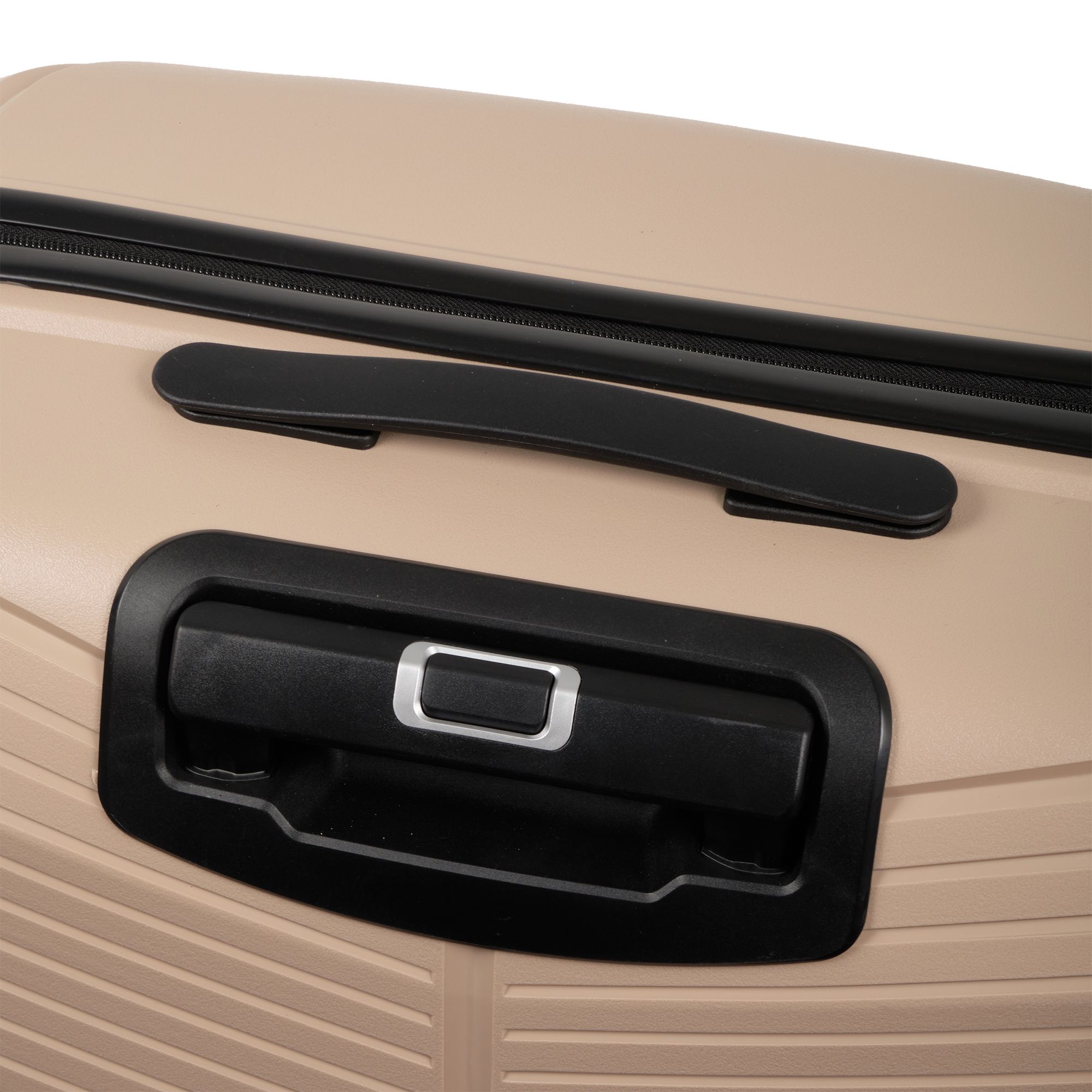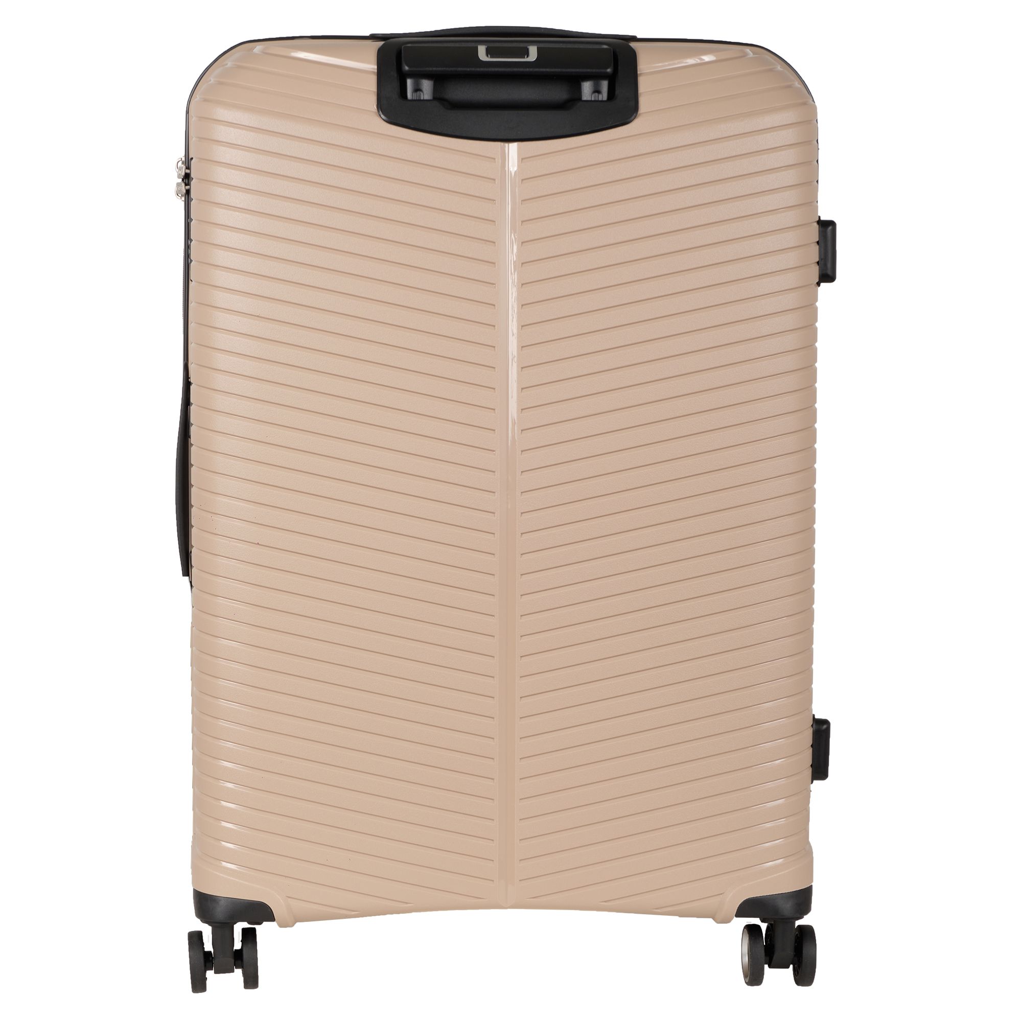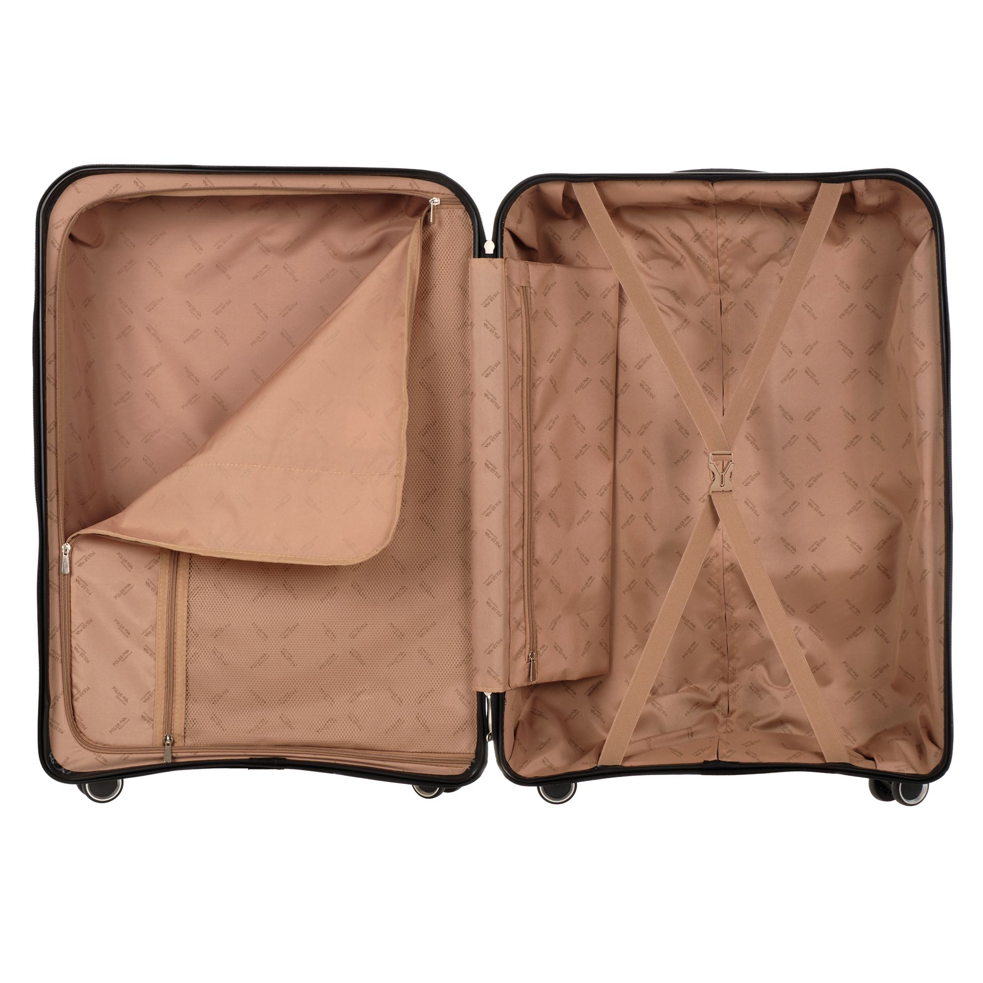 Чемодан фирмы Polar на четырех прорезиненных колесиках. Чемодан выполнен из PP-пластика (Полипропилен). Полипропилен обладает высокой прочностью, эластичностью и высокой ударостойкостью. Внутри подкладка из полиэстра. Одна секция чемодана с креплением резинками для одежды. Вторая секция застегивается на молнию для удобства упаковки вещей. Есть кодовый замок TSA.