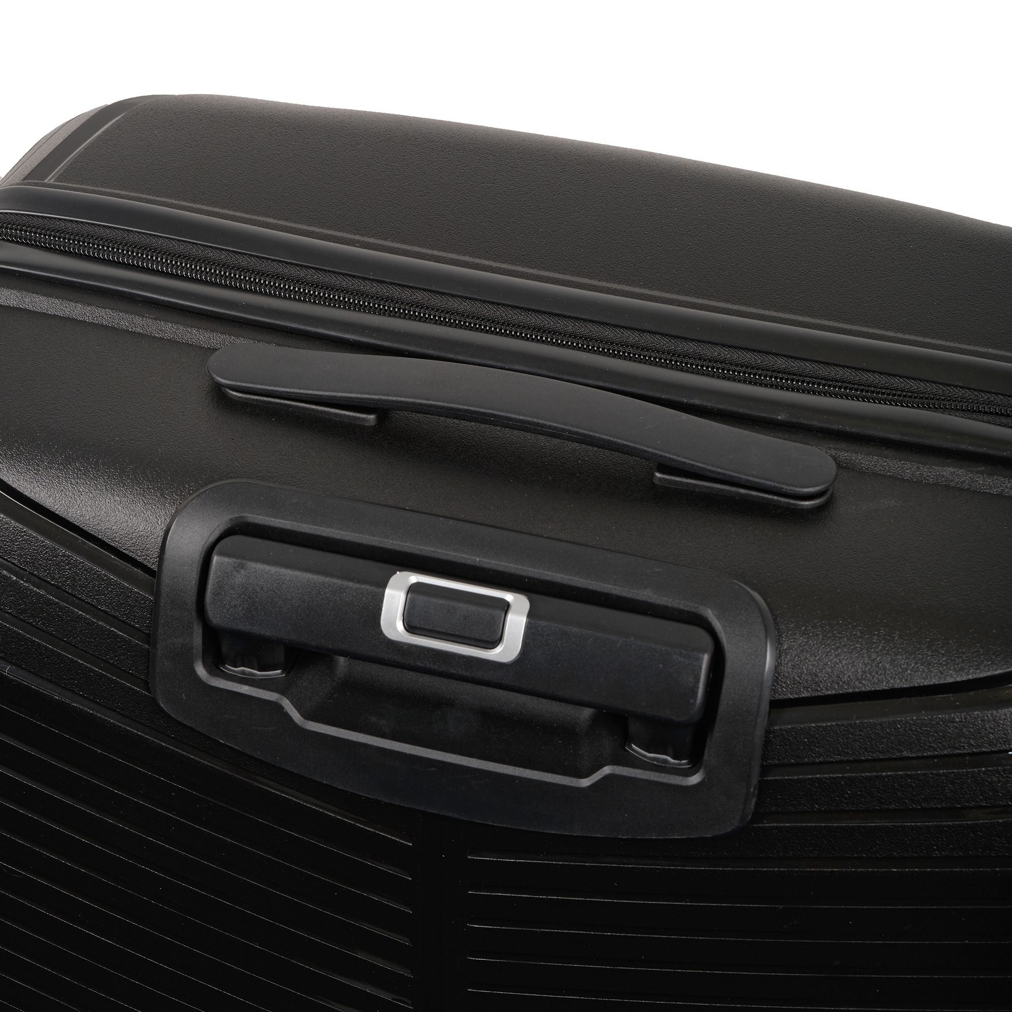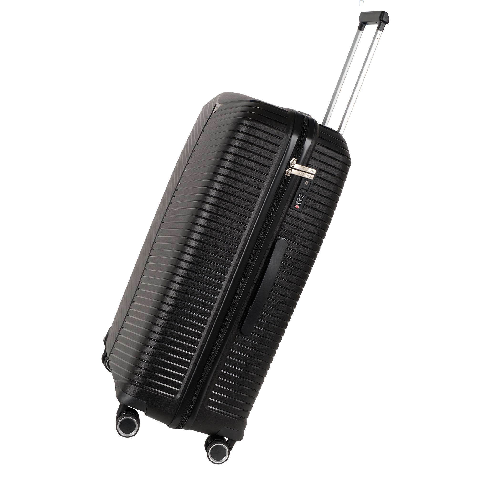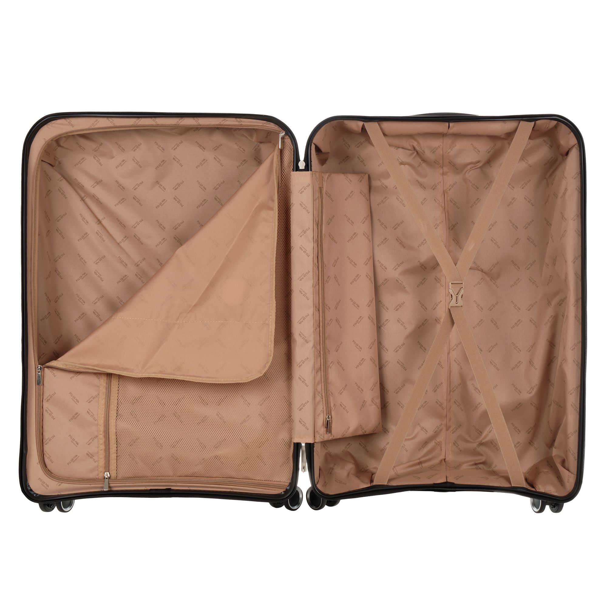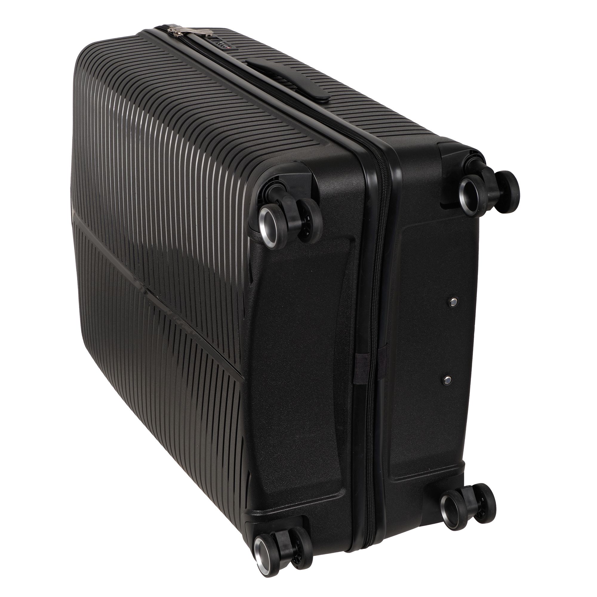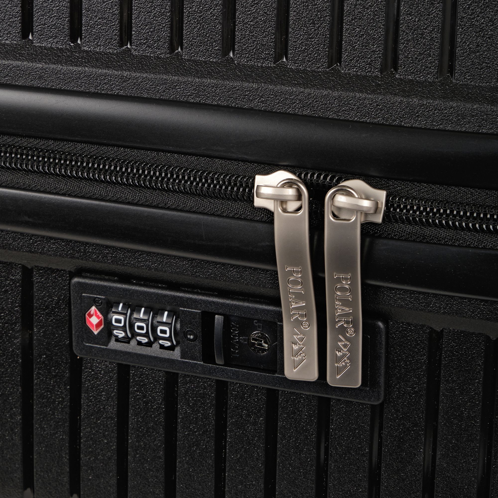 Чемодан фирмы Polar на четырех прорезиненных колесиках. Чемодан выполнен из PP-пластика (Полипропилен). Полипропилен обладает высокой прочностью, эластичностью и высокой ударостойкостью. Внутри подкладка из полиэстра. Одна секция чемодана с креплением резинками для одежды. Вторая секция застегивается на молнию для удобства упаковки вещей. Есть кодовый замок TSA.