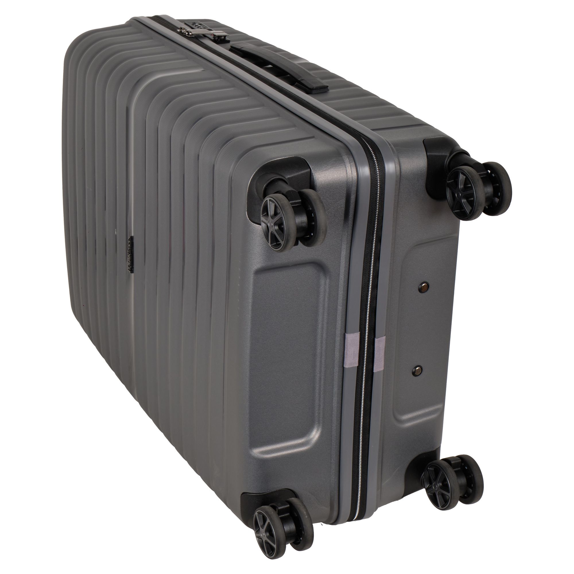 Чемодан фирмы Polar на четырех прорезиненных колесиках. Чемодан выполнен из PP-пластика (Полипропилен). Полипропилен обладает высокой прочностью, эластичностью и высокой ударостойкостью. Внутри подкладка из полиэстра. Одна секция чемодана с креплением резинками для одежды. Вторая секция застегивается на молнию для удобства упаковки вещей. Есть кодовый замок TSA. Выдвижная ручка, максимальная высота которой составляет 105 см.
