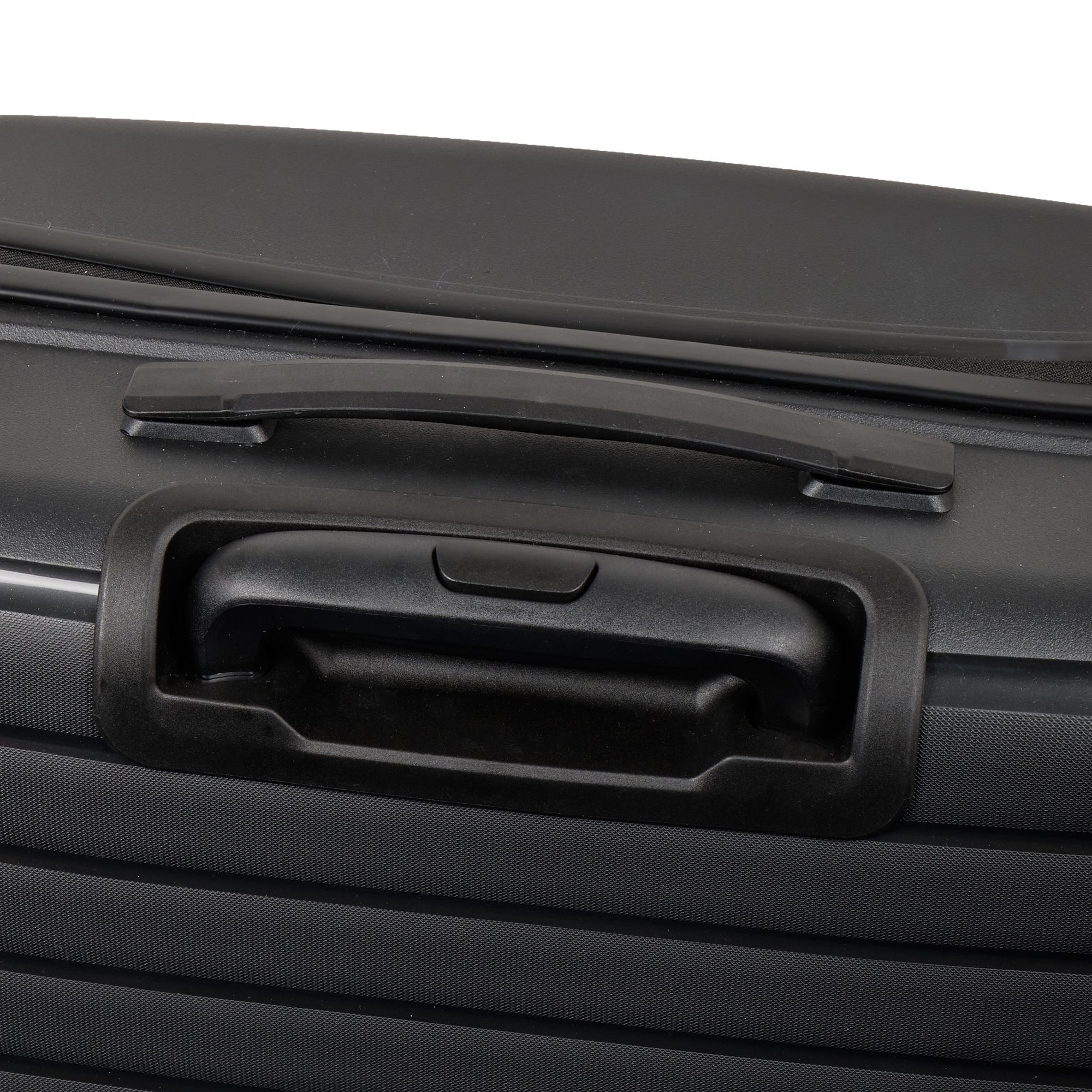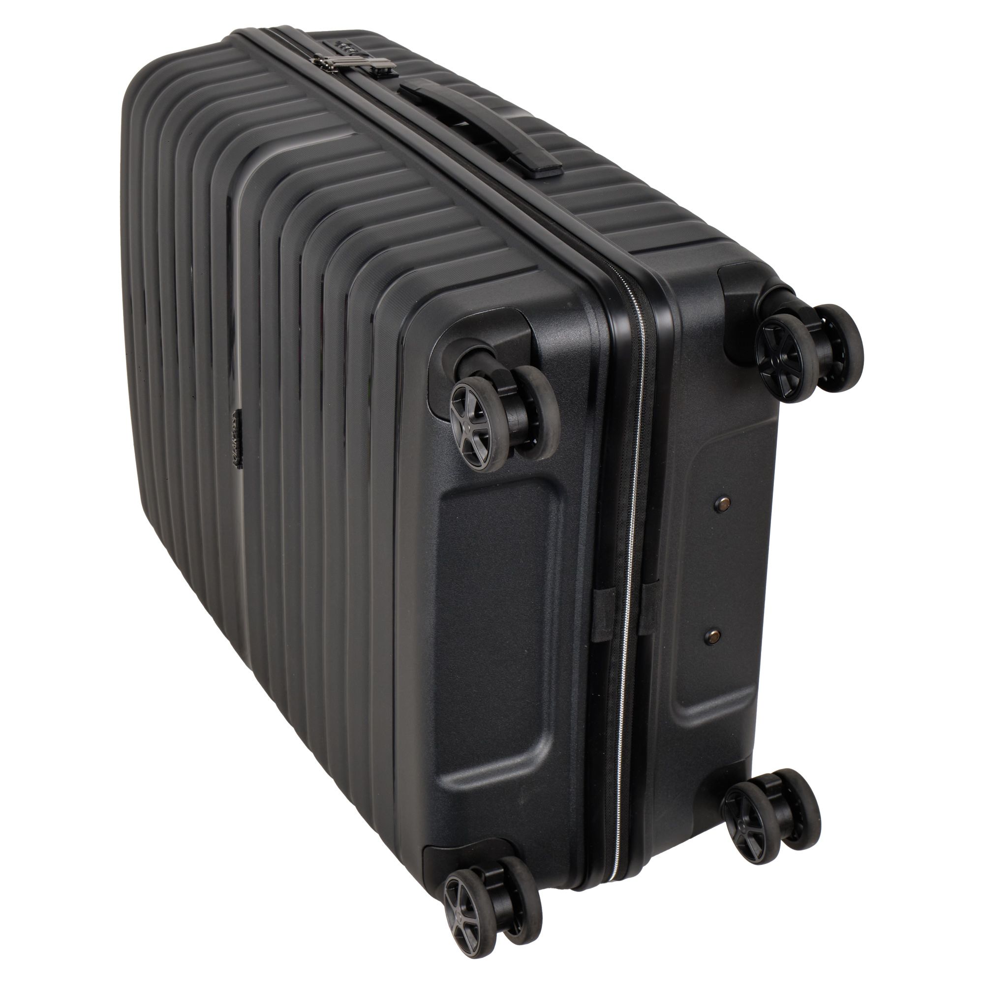 Чемодан фирмы Polar на четырех прорезиненных колесиках. Чемодан выполнен из PP-пластика (Полипропилен). Полипропилен обладает высокой прочностью, эластичностью и высокой ударостойкостью. Внутри подкладка из полиэстра. Одна секция чемодана с креплением резинками для одежды. Вторая секция застегивается на молнию для удобства упаковки вещей. Есть кодовый замок TSA. Выдвижная ручка, максимальная высота которой составляет 105 см.