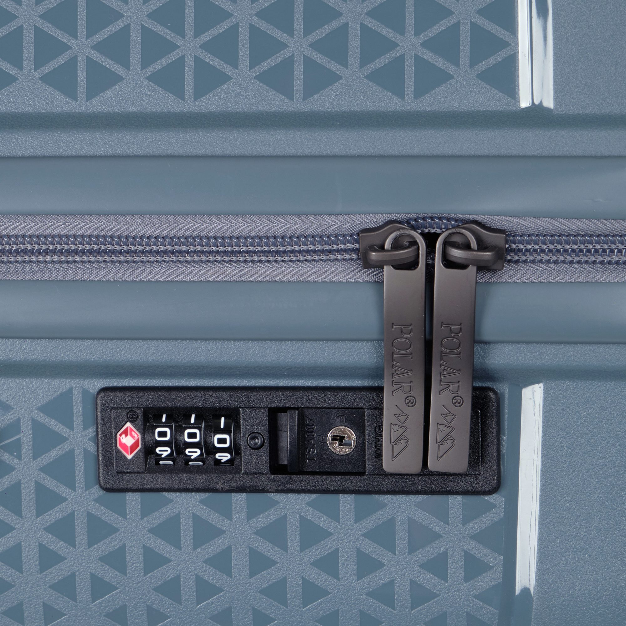 Чемодан фирмы Polar на четырех прорезиненных колесиках. Чемодан выполнен из PP-пластика (Полипропилен). Полипропилен обладает высокой прочностью, эластичностью и высокой ударостойкостью. Внутри подкладка из полиэстра. Одна секция чемодана с креплением резинками для одежды. Вторая секция застегивается на молнию для удобства упаковки вещей. Есть кодовый замок TSA.