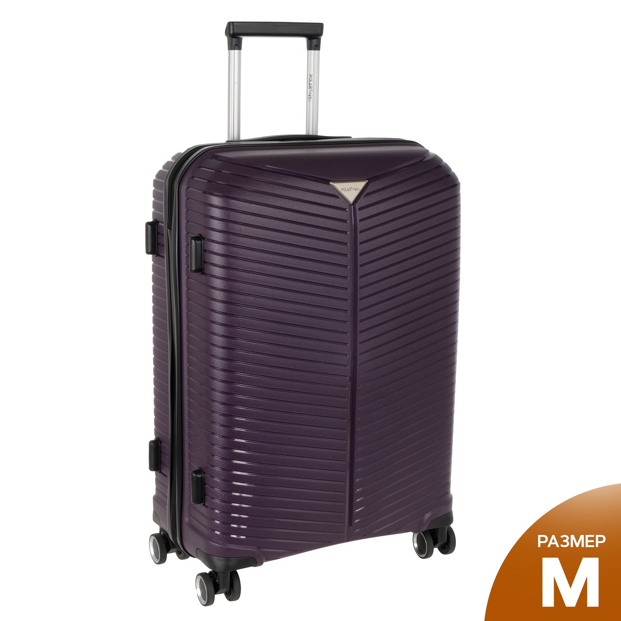 Чемодан фирмы Polar на четырех прорезиненных колесиках. Чемодан выполнен из PP-пластика (Полипропилен). Полипропилен обладает высокой прочностью, эластичностью и высокой ударостойкостью. Внутри подкладка из полиэстра. Одна секция чемодана с креплением резинками для одежды. Вторая секция застегивается на молнию для удобства упаковки вещей. Есть кодовый замок TSA.