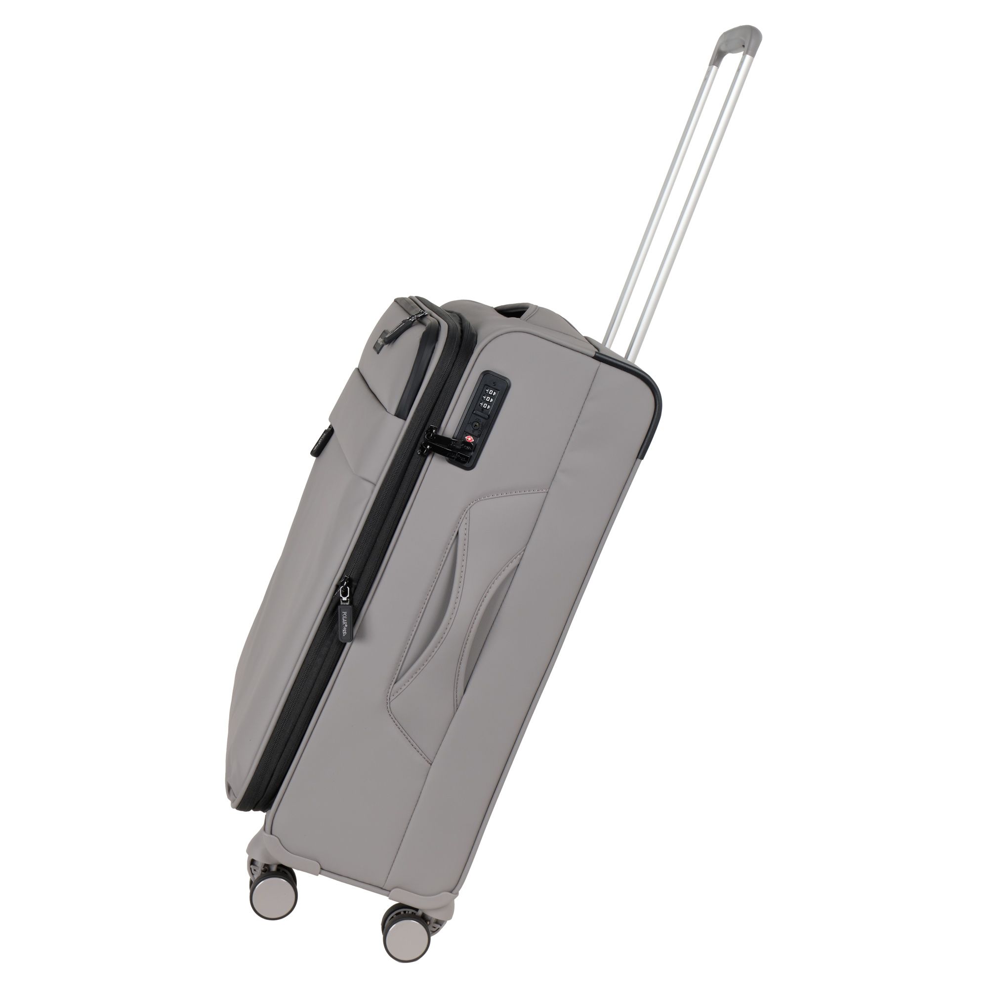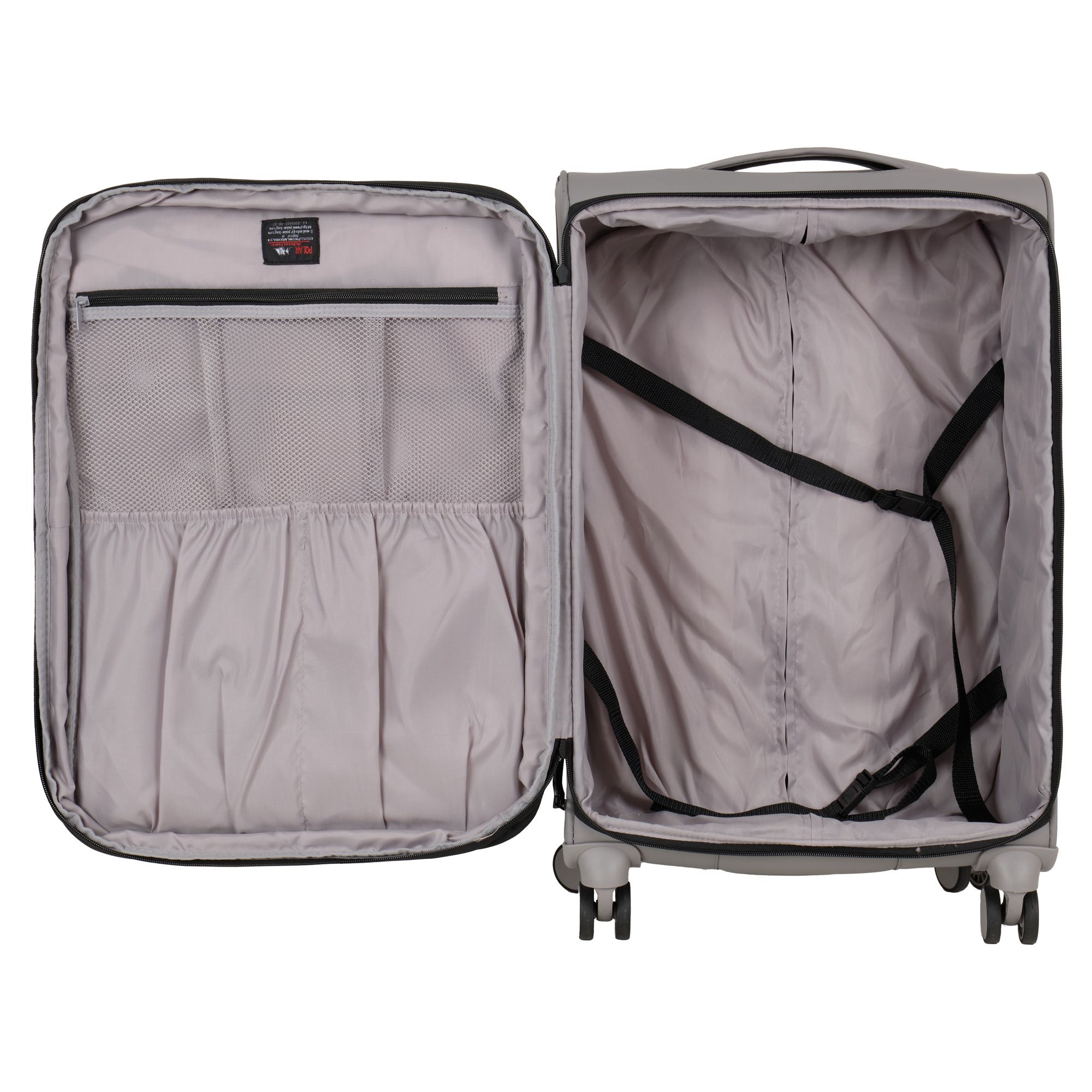 Суперлегкий чемодан POLAR выполнен из плотного водоотталкивающего полиэстера, устойчивого к загрязнениям.Чемодан закрывается по периметру на двухстороннюю молнию. Сверху удобная ручка, есть боковая ручка. Бесшумные и прочные двойные вращающиеся колеса  360 градусов для легкого перемещения и хорошей балансировки. Встроенный кодовый замок TSA, снаружи на передней стенке вместительный карман на молнии. Выдвижная ручка, максимальная высота которой составляет 105 см.