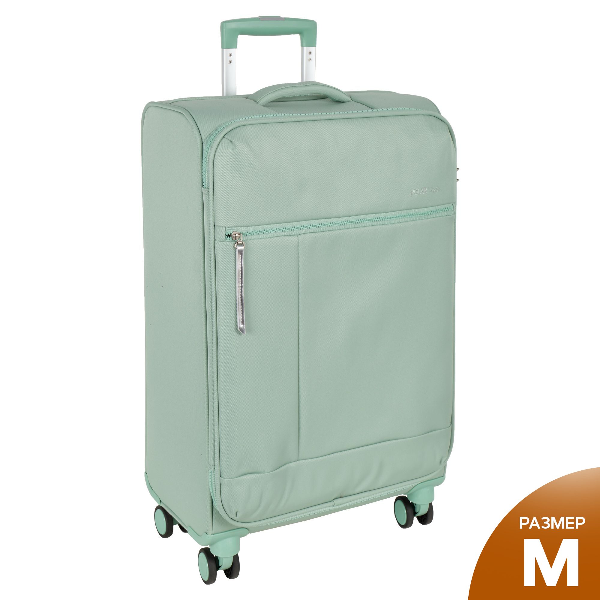 Новый облегченный чемодан фирмы Polar с отделкой колес, тележки , молнии в цвете. Чемодан закрывается по периметру на двухстороннюю широкую молнию. Сверху удобная ручка, есть боковая ручка. Бесшумные и прочные двойные вращающиеся колеса  360 градусов для легкого перемещения и хорошей балансировки. Встроенный кодовый замок TSA, снаружи на передней стенке вместительный карман на молнии. Выдвижная ручка, максимальная высота которой составляет 105 см.