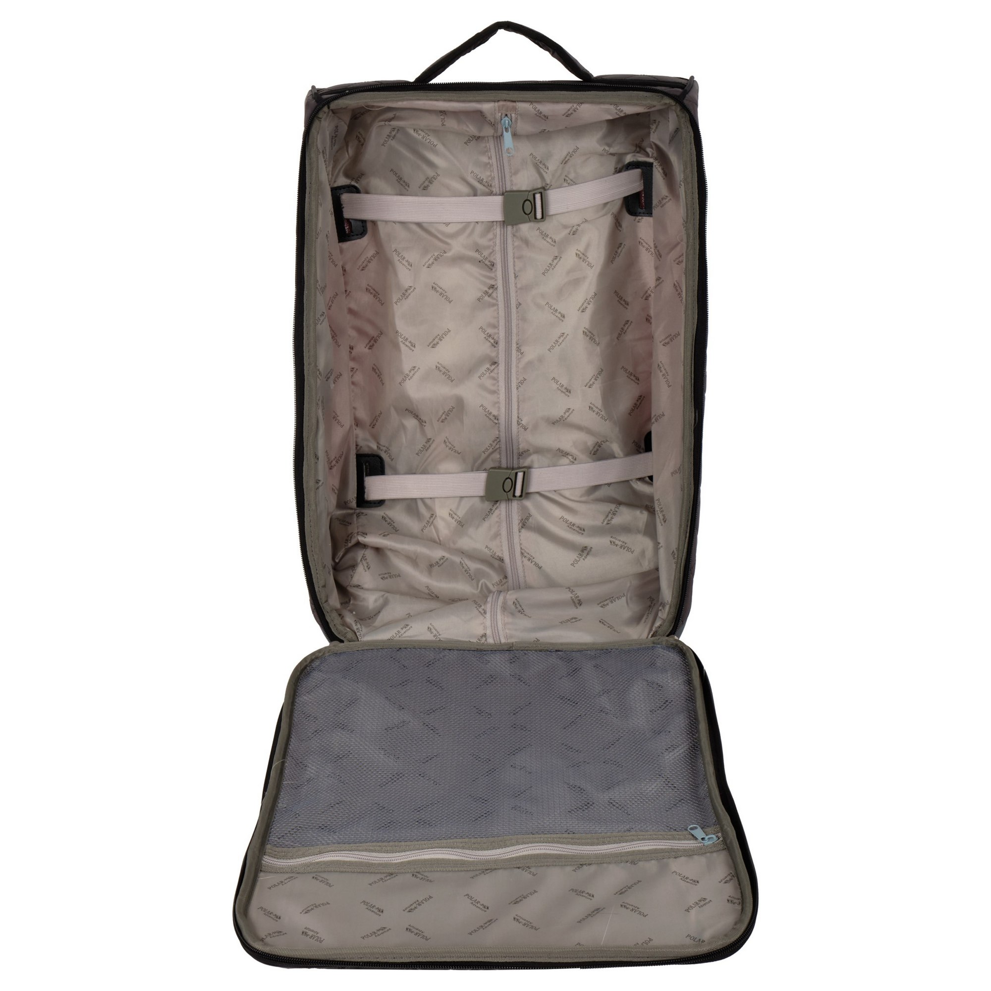 Эта модель дорожной сумки от компании POLAR отлично подойдет для краткосрочных путешествий или командировок. Сумка- чемодан состоит из одного отделения, которое закрываются на двухсторонние молнии. Основное отделение имеет фиксирующие ремни для ваших вещей, на стенке отделения есть сетчатый карман. Также на передней стенке есть два врезных кармана на молнии, в который можно положить документы или вещи, которые должны быть под рукой.