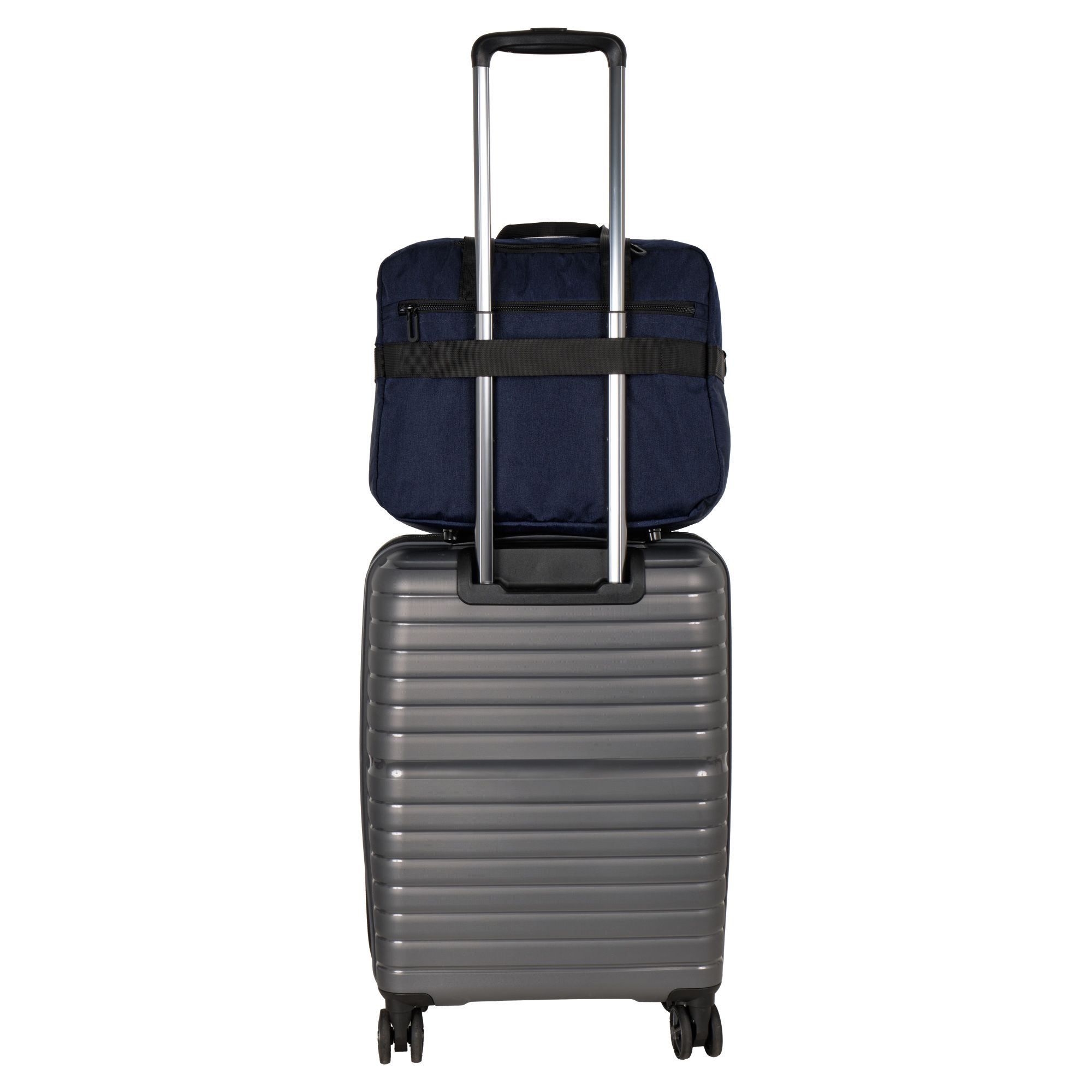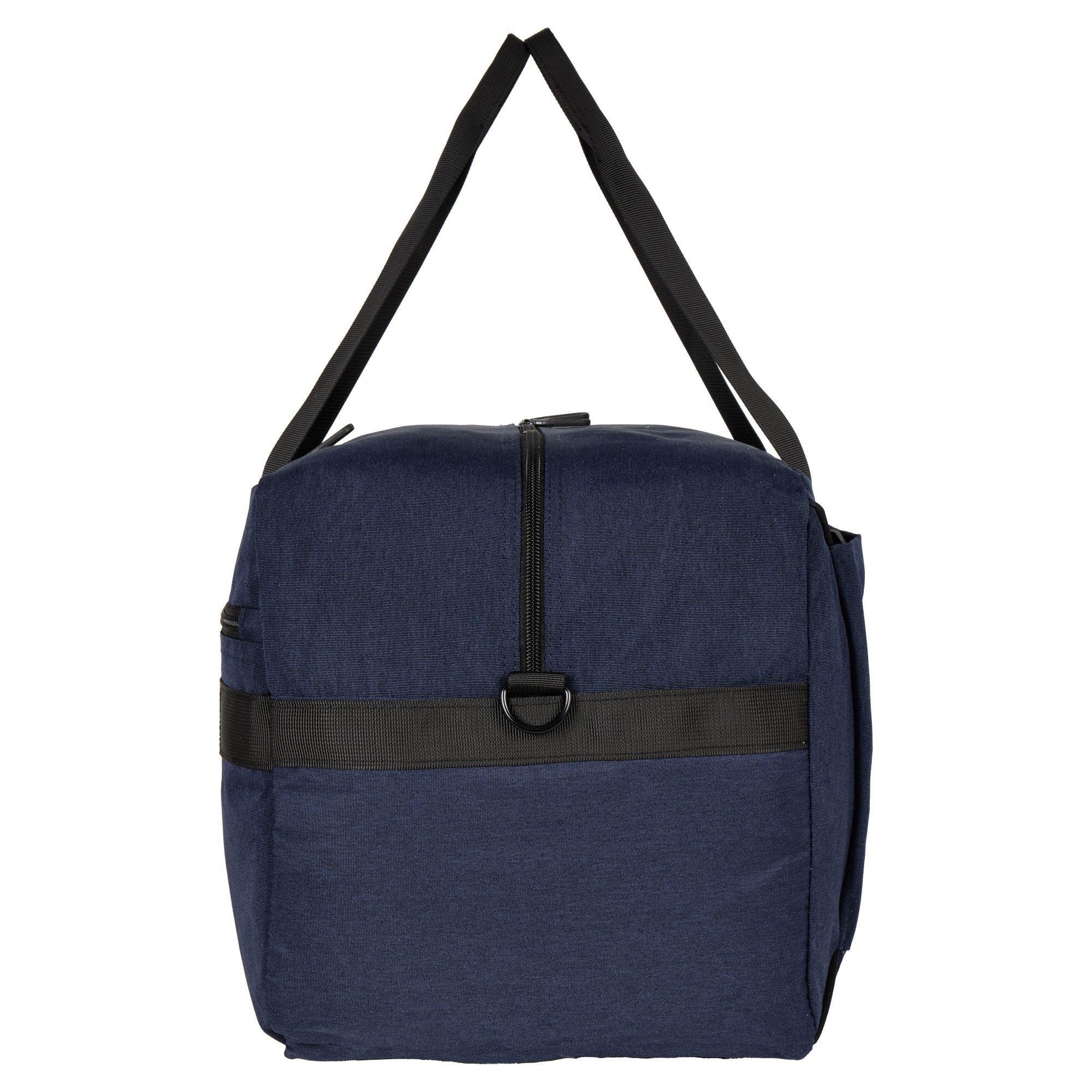 Модель имеет одно основное отделение свободного назначения, внутри карман органайзер, которое закрывается на молнию. Спереди и сзади большие карманы на молнии. У сумки есть две ручки для переноски в руке высотой 27 см и длинный отстегивающийся ремень 123 см, который регулируется по длине. Есть ремень для крепления на чемодан. На дне сумки пластиковые ножки, чтобы дно оставалось чистым.