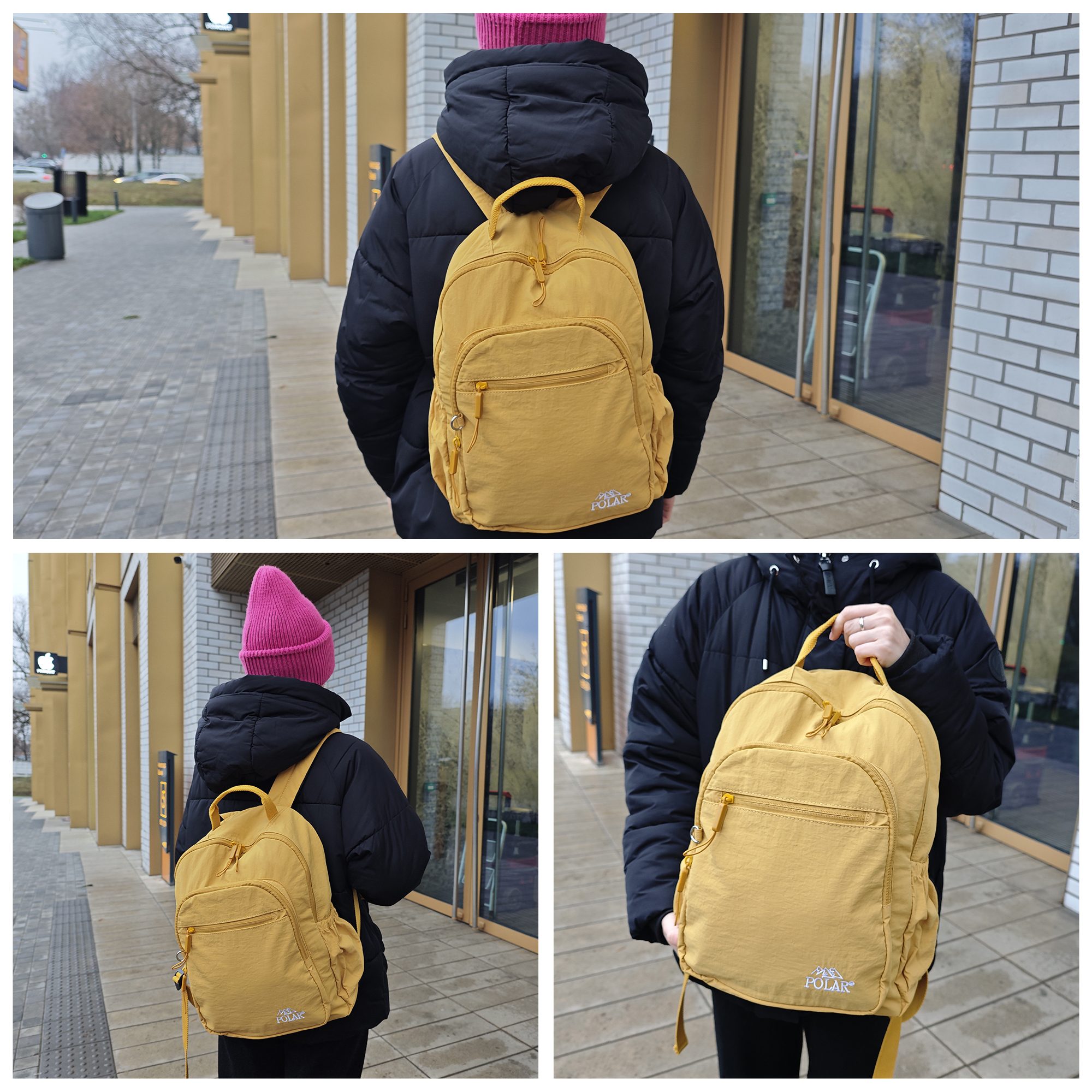 Городской рюкзак фирмы Polar выполнен из полиэстера. Рюкзак состоит из основного отделения, предназначенного для стандартного ежедневного набора вещей, состоящего из кошелька, документов, мобильного, телефона, очков и ключей, внутри основного отделения есть два открытых кармашка и карман на молнии. Отделение рюкзак свободно вмещает формат А4. Спереди накладной карман на молнии. По бокам расположены два открытых кармана на резинке. Лямки регулируются по длине 90 см. Сверху расположена ручка высотой 7 см.