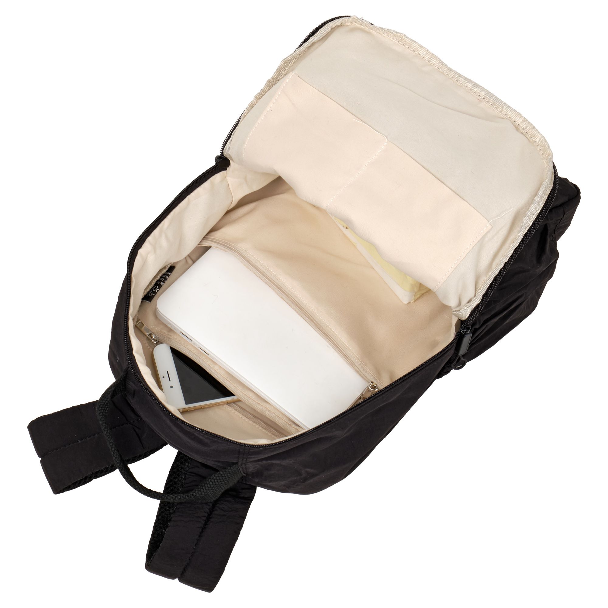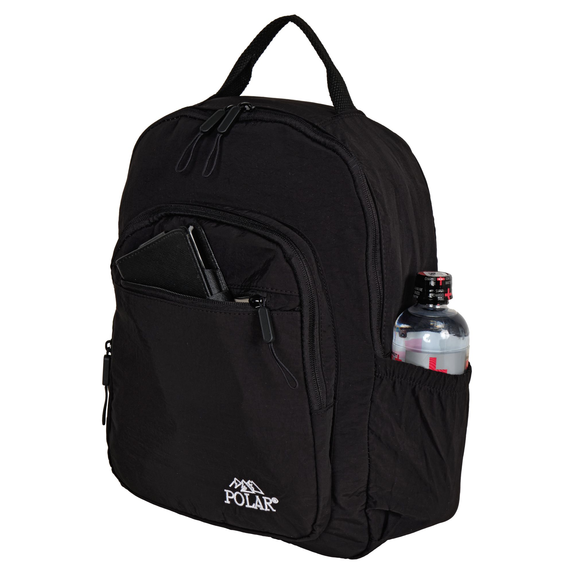 Городской рюкзак фирмы Polar выполнен из полиэстера. Рюкзак состоит из основного отделения, предназначенного для стандартного ежедневного набора вещей, состоящего из кошелька, документов, мобильного, телефона, очков и ключей, внутри основного отделения есть два открытых кармашка и карман на молнии. Отделение рюкзак свободно вмещает формат А4. Спереди накладной карман на молнии. По бокам расположены два открытых кармана на резинке. Лямки регулируются по длине 90 см. Сверху расположена ручка высотой 7 см.