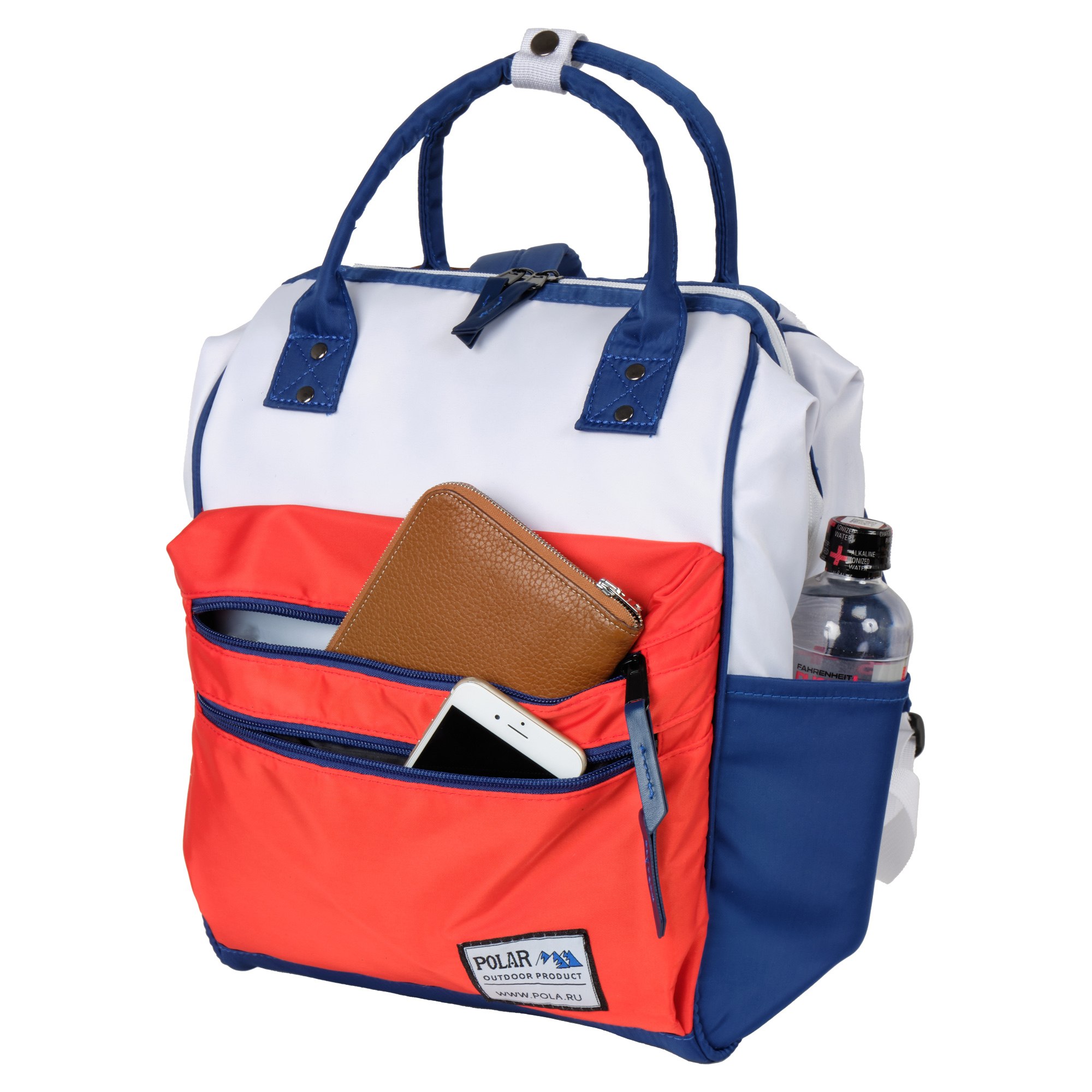 Городской рюкзак фирмы Polar выполнен из полиэстера. Представлен в модной, яркой цветовой гамме. Модель имеет вместительное каркасное отделение, закрывающееся на двухстороннюю молнию. Внутри рюкзака, есть два небольших кармана на молнии и открытый. Спереди два кармана на молнии. По бокам карманы для бутылки с водой или зонтика. На спинке рюкзака есть вертикальная молния для быстрого доступа к вещам. Модель имеет две ручки высотой 10 см для переноски и лямки, регулируемый по длине 90 см.