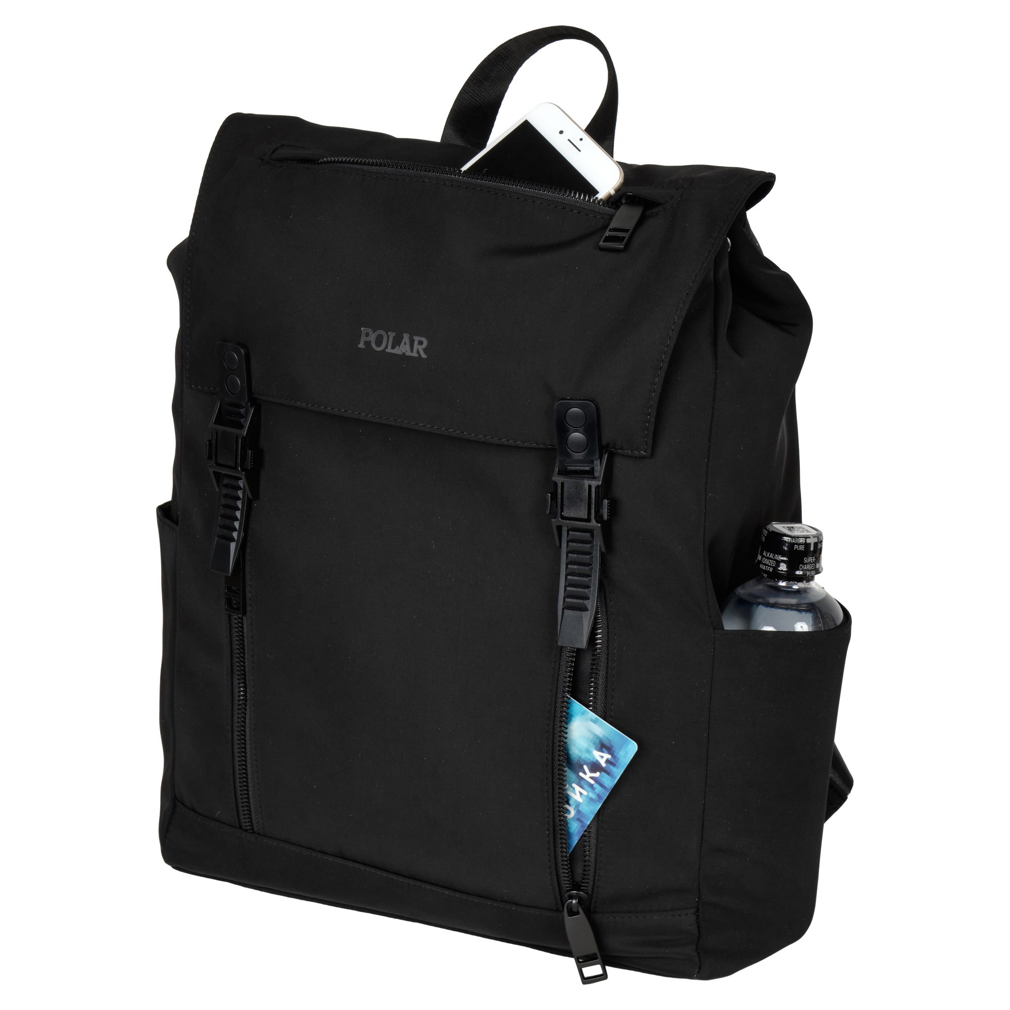 Стильный рюкзак фирмы POLAR для прогулок и учебы, путешествий и спорта, работы, школы, института с верхним клапаном на удобной пряжке. Такая конструкция позволяет менять объем рюкзака, когда вы захотите увеличить его основное отделение за счет клапана на застежке. Так же верхний клапан — это дополнительная защита ваших вещей от краж и дождя. Рюкзак выглядит очень современно. Он универсален и очень надежный, подходит как для мужчин, так и для женщин. Материал рюкзака полиэстер. Основное отделение закрывается на молнию. Внутри один большой карман для документов формата А4, планшета или ноутбука до 14 " и небольшой карман на молнии. Спереди два кармана на молнии для карточек, ключей. Два боковых кармана под бутылку или зонт. Сзади карман на молнии. Длина лямок 96 см, ширина 5 см.