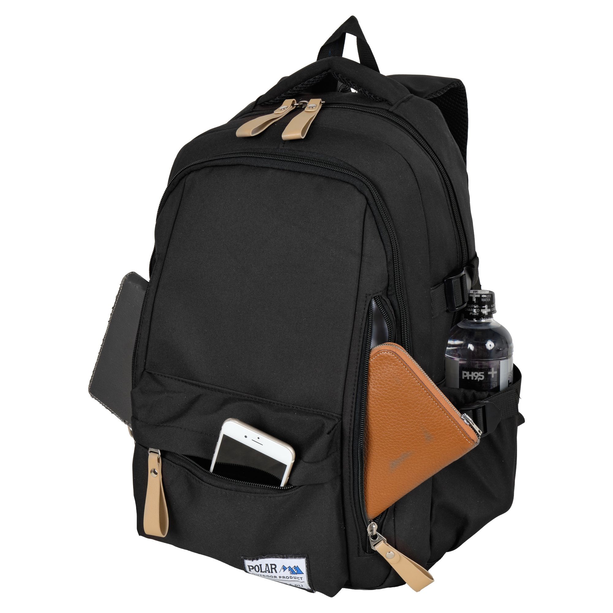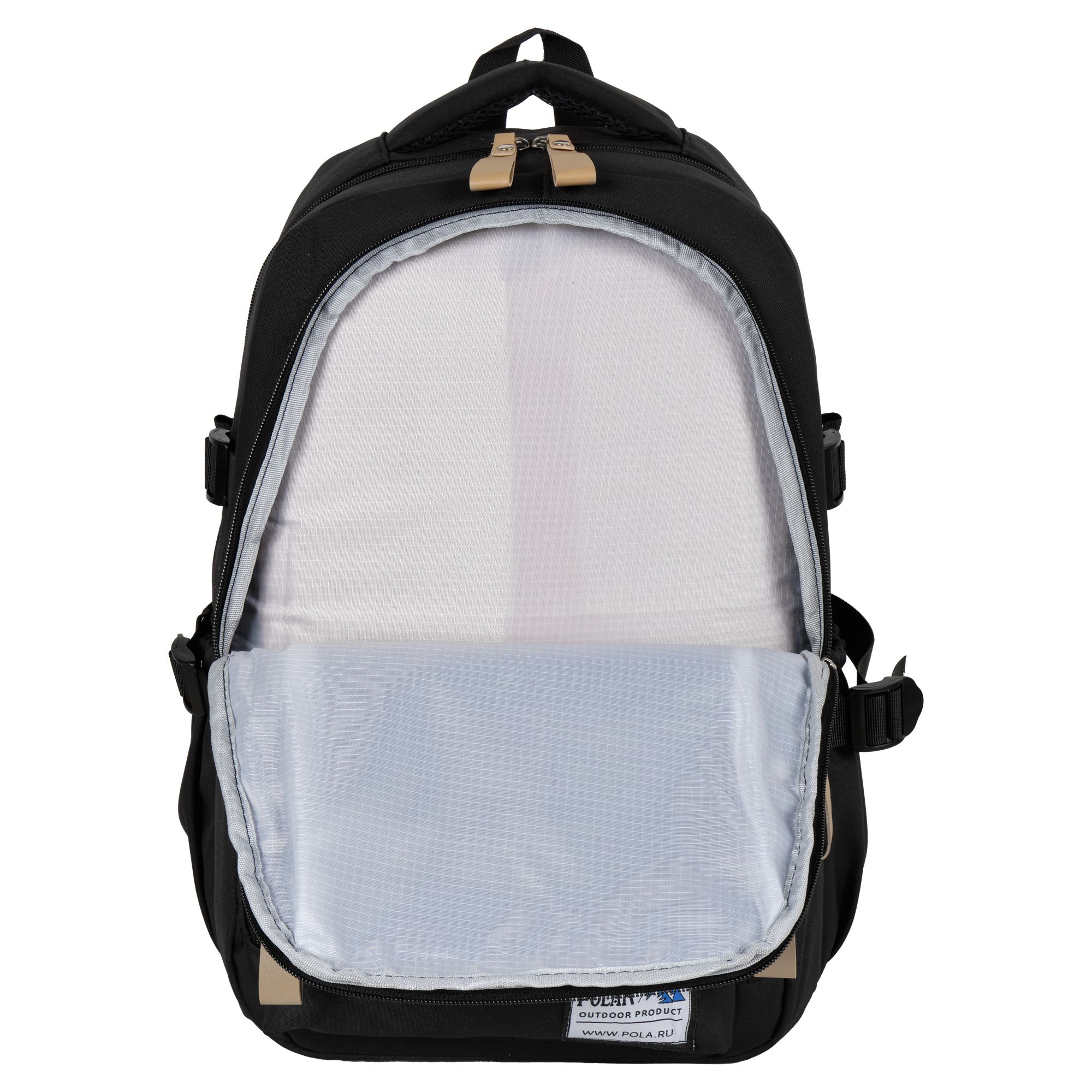 Городской рюкзак Polar для повседневной носки. Два независимых отделения на молнии формата А4. Внутри большого отделения открытый карман, где можно разместить планшет/ноутбук или документы, папки . Спереди скрытый карман с боковыми молниями, а так же передний накладной карман. Боковые карманы на резинке с фиксирующими ремнями для регулирования объема рюкзака. Сзади расположен потайной карман Антивор. Спинка и лямки мягкие, с поролоновыми вставками. Сверху рюкзака ручка для переноски и петля для подвешивания. Материал Полиэстер.