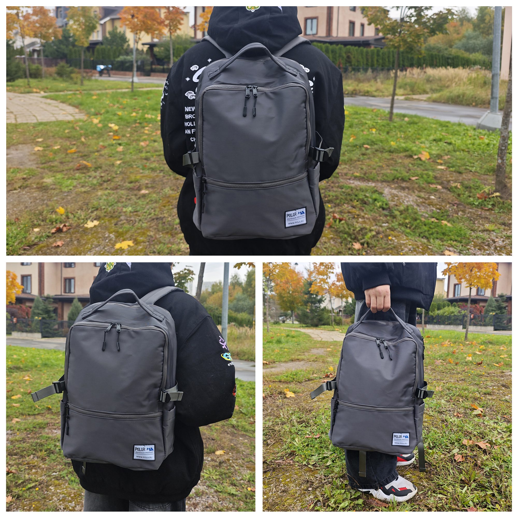 Удобный городской рюкзак фирмы Polar. Мягкие плечевые лямки создают дополнительный комфорт при использовании данной модели. Рюкзак состоит из двух отделений, которые закрываются на молнию и спереди есть небольшой накладной карман. Центральное отделение предназначено для персональных вещей и документов формата А4,  Второе отделение для ноутбука диагональю до 15. На задней стенке рюкзака предусмотрено крепление на ручку чемодана. Лямки регулируются по длине 90 см. Сверху расположена ручка высотой 4 см.