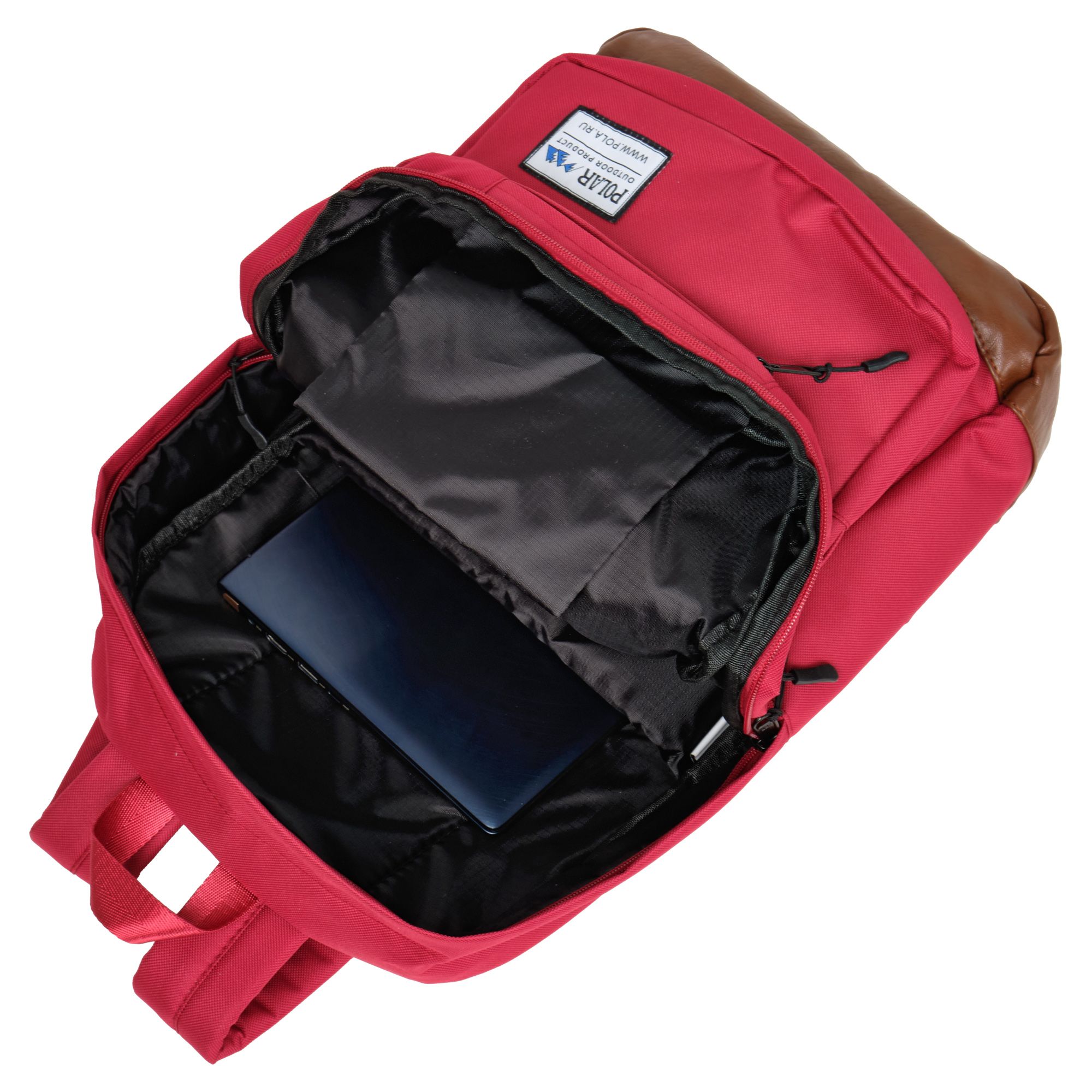 Городской рюкзак Polar прекрасно подходит для повседневной носки. Основное отделение застёгивается на молнию. Внутри рюкзака есть открытое  отделение для планшета и ноутбука диагональю 15 и документов в формате A4. Спереди рюкзака расположены два потайных кармана и один накладной карман на молнии для мелочей.  Низ рюкзака выполнен из экокожи. Лямки мягкие, с поролоновыми вставками. Лямки регулируются по длине 90 см. Сверху ручка высотой 8 см.