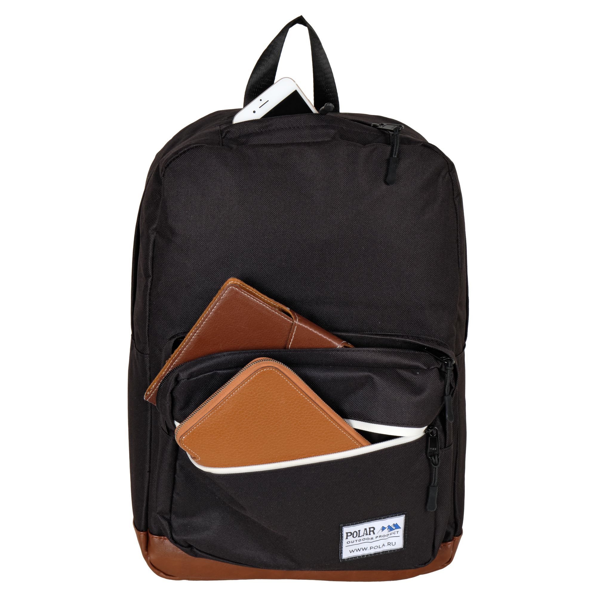 Городской рюкзак Polar прекрасно подходит для повседневной носки. Основное отделение застёгивается на молнию. Внутри рюкзака есть открытое отделение для планшета и ноутбука диагональю 15 и документов в формате A4. Спереди рюкзака расположены два потайных кармана и один накладной карман на молнии для мелочей. Низ рюкзака выполнен из экокожи. Лямки мягкие, с поролоновыми вставками. Лямки регулируются по длине 90 см. Сверху ручка высотой 8 см.