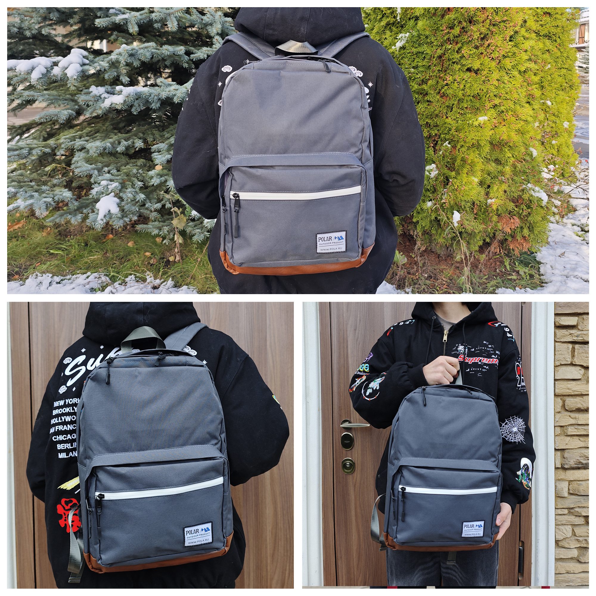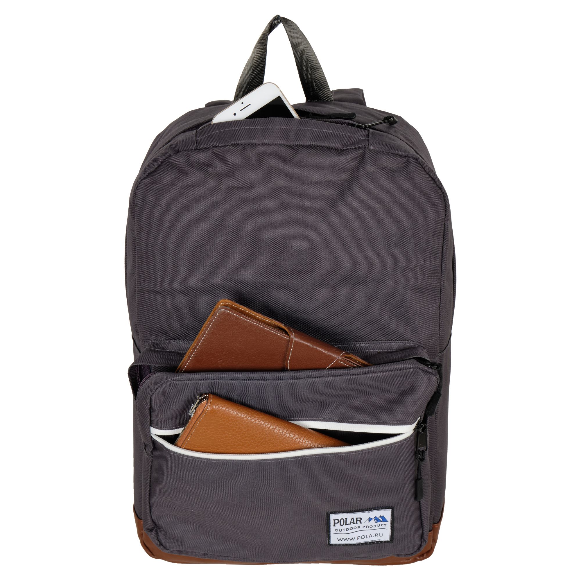 Городской рюкзак Polar прекрасно подходит для повседневной носки. Основное отделение застёгивается на молнию. Внутри рюкзака есть открытое  отделение для планшета и ноутбука диагональю 15 и документов в формате A4. Спереди рюкзака расположены два потайных кармана и один накладной карман на молнии для мелочей.  Низ рюкзака выполнен из экокожи. Лямки мягкие, с поролоновыми вставками. Лямки регулируются по длине 90 см. Сверху ручка высотой 8 см.