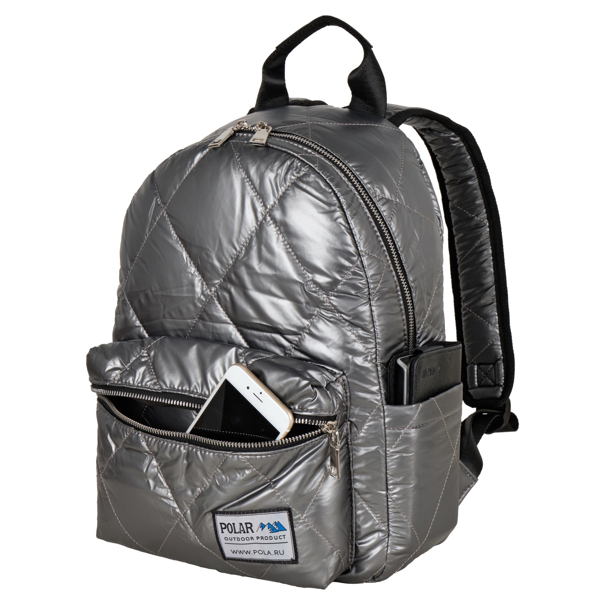 Женский стеганый маленький рюкзак фирмы Polar из болоньи, дополнит Ваш зимний образ с курткой и станет незаменимой вещью в Вашем гардеробе на каждый день. Рюкзак состоит из одного отделения, которое закрывается на молнию. Внутри отделения один карман на молнии и два открытых кармашка. Спереди накладной карман на молнии для мелочей. По бокам два открытых кармана. Максимальная длина лямок 85 см. Высота ручки 7 см.