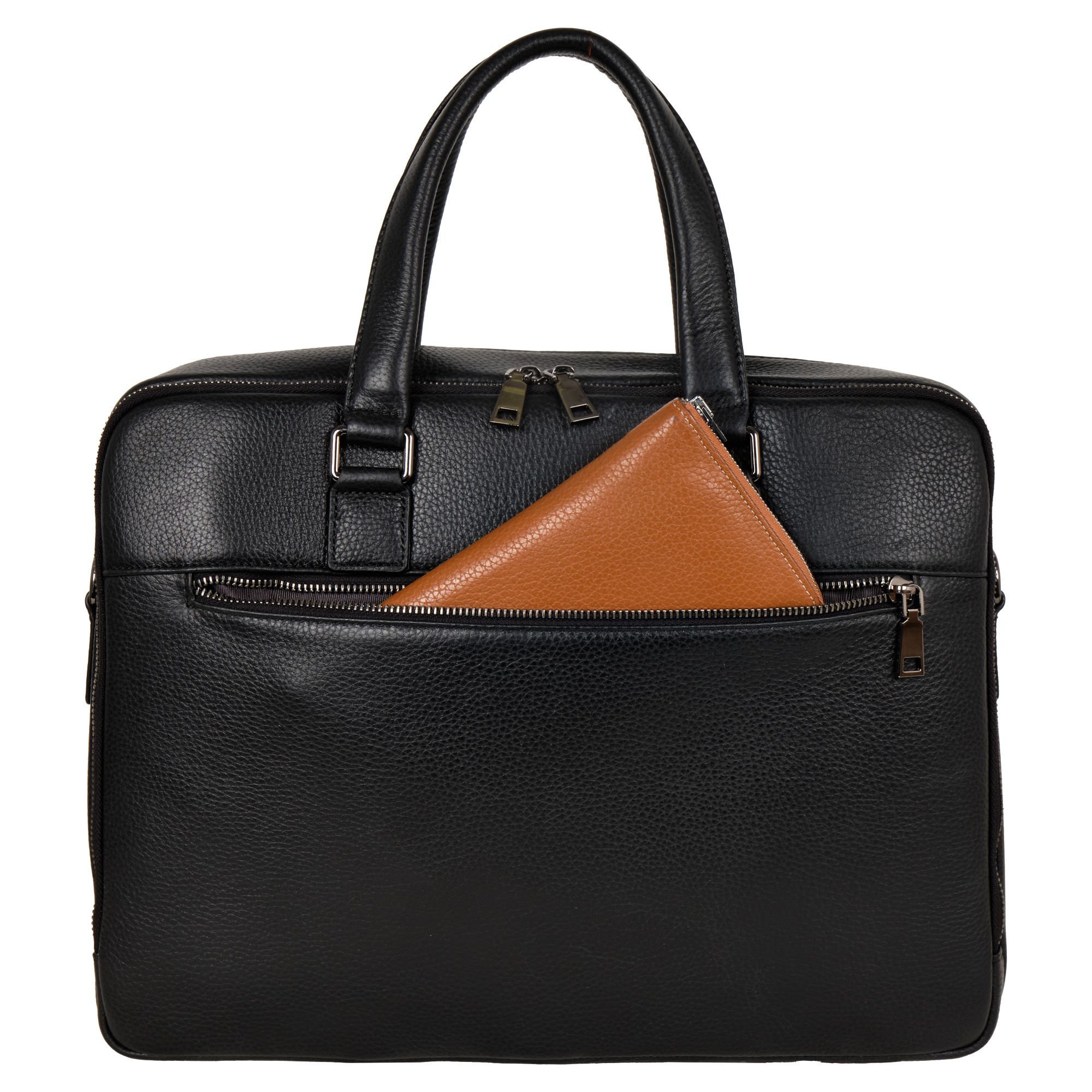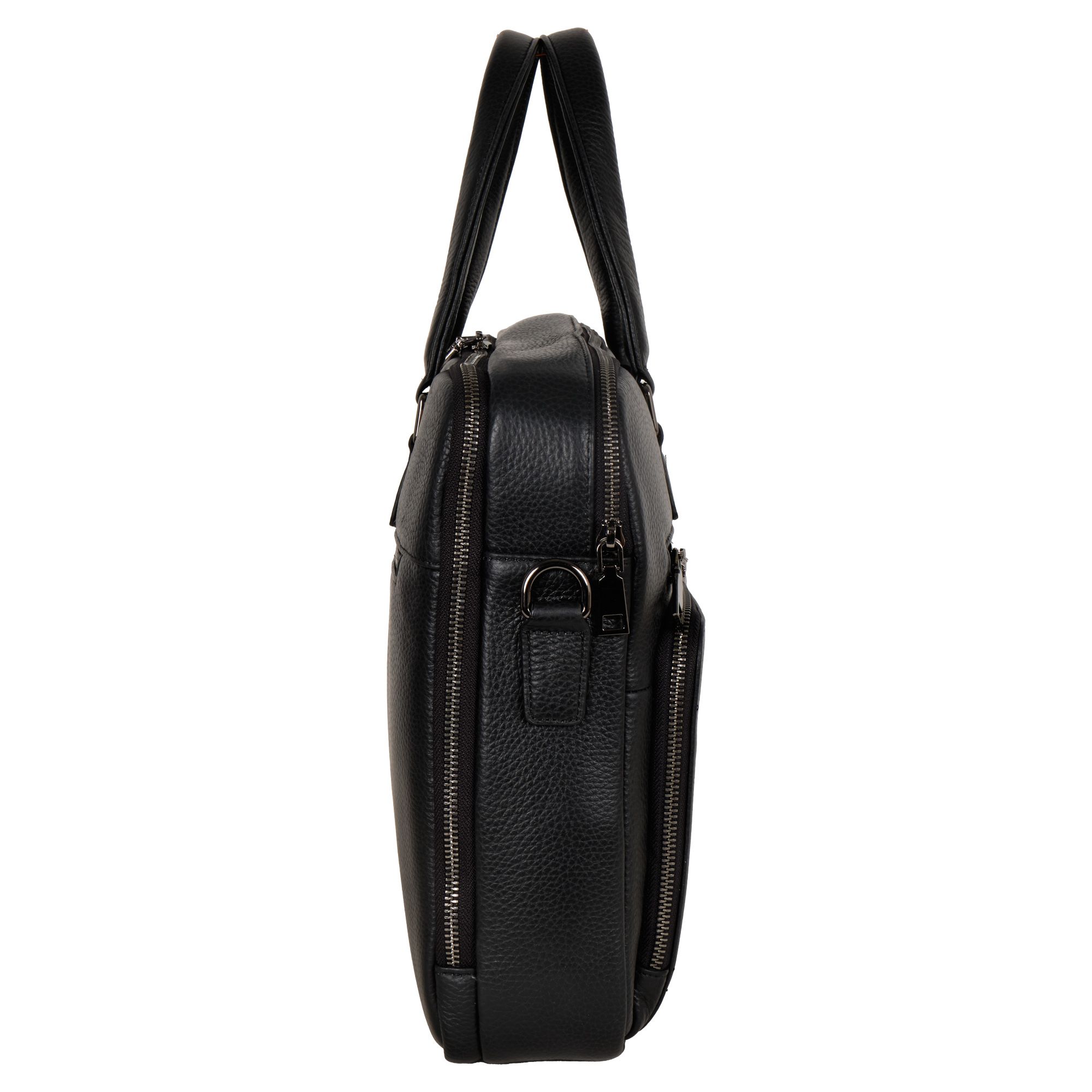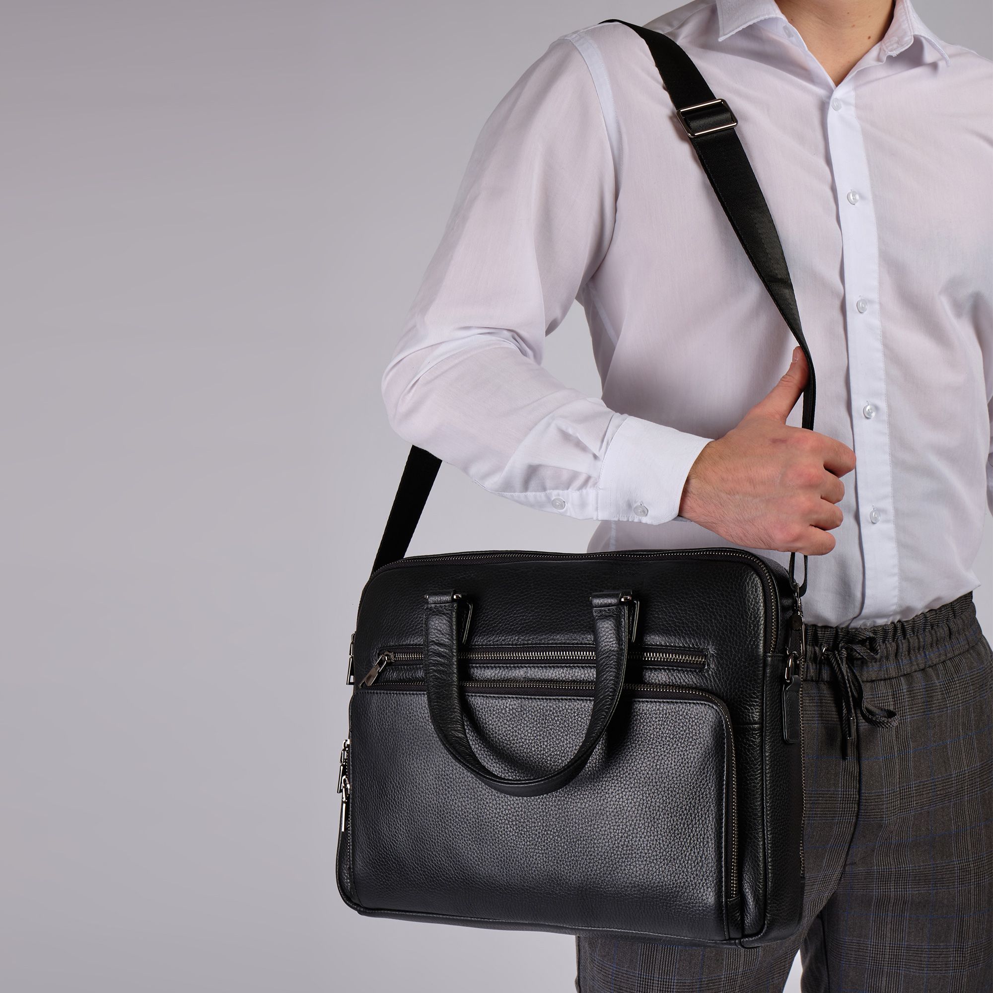 Мужской портфель фирмы Polar из высококачественной натуральной кожи. Черный цвет подчеркивает его классический вид, а также делает возможным легко сочетать его с любым стилем одежды. Подходит для деловых встреч, офисной работы, для учебы в институт и командировок. Портфель имеет два основных отделения, которые закрываются на металлическую молнию. Внутри есть отделение для электронных устройств или ноутбука с диагональю до 13,3” и открытый кармашек. Модель вмещает формат A4. Спереди есть большой вместительный карман на молнии. Сзади сумки есть также карман на молнии. Высота ручек 18 см, в комплекте есть регулируемый наплечный ремень, максимальная длина 153 см.