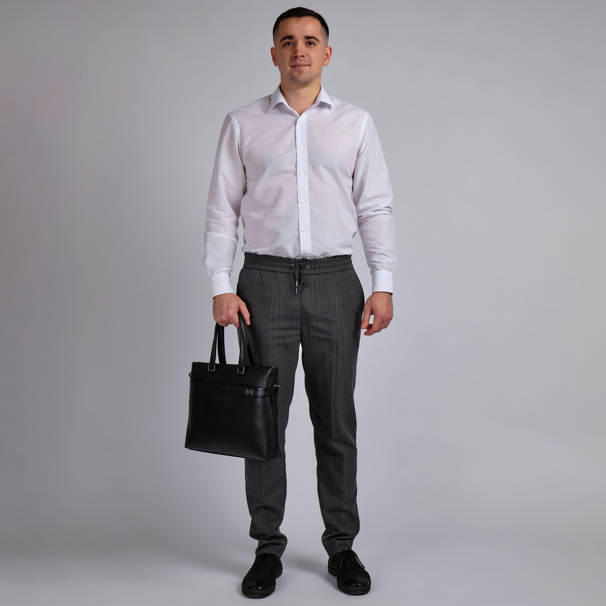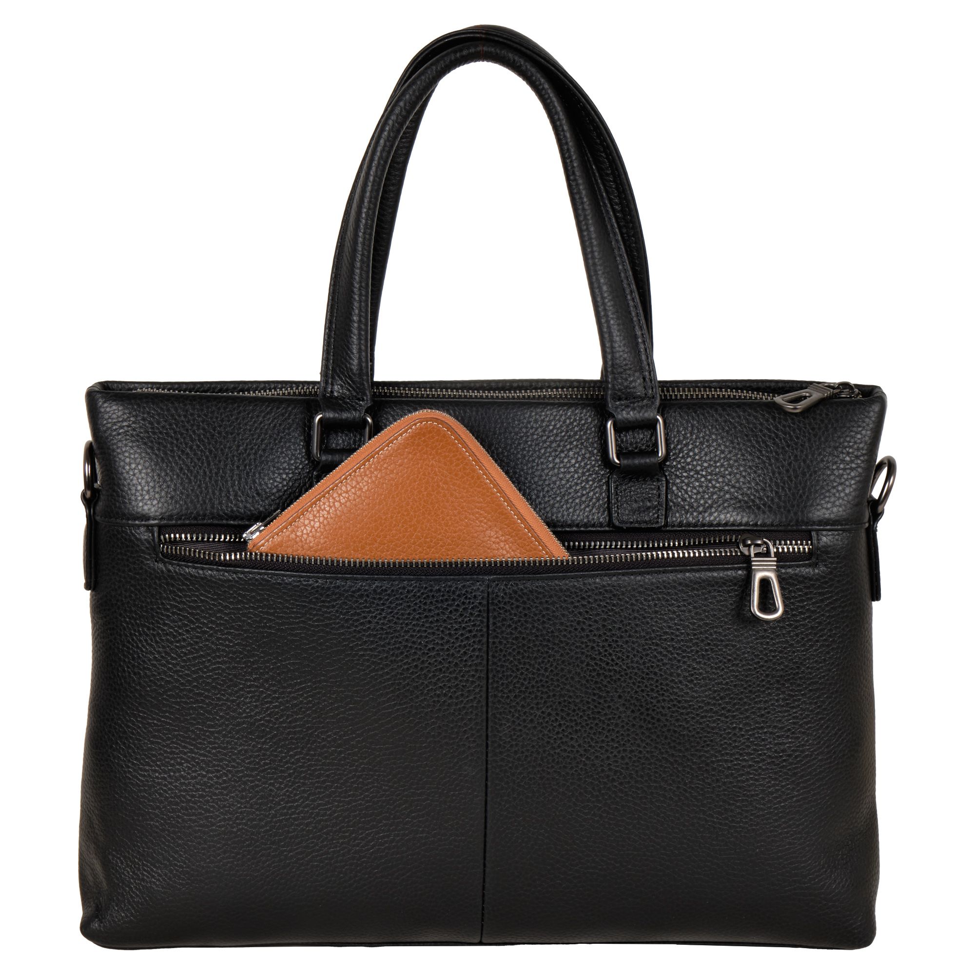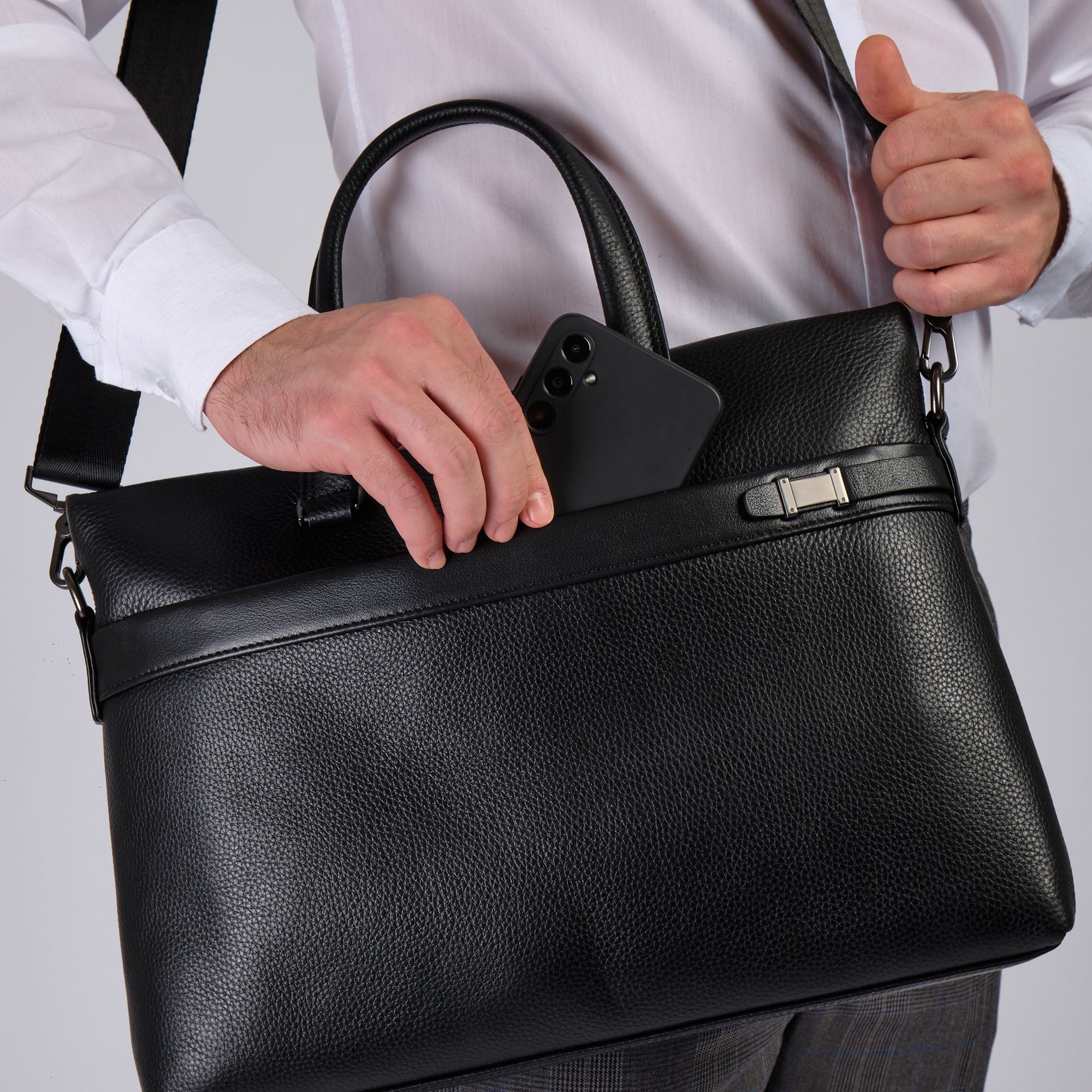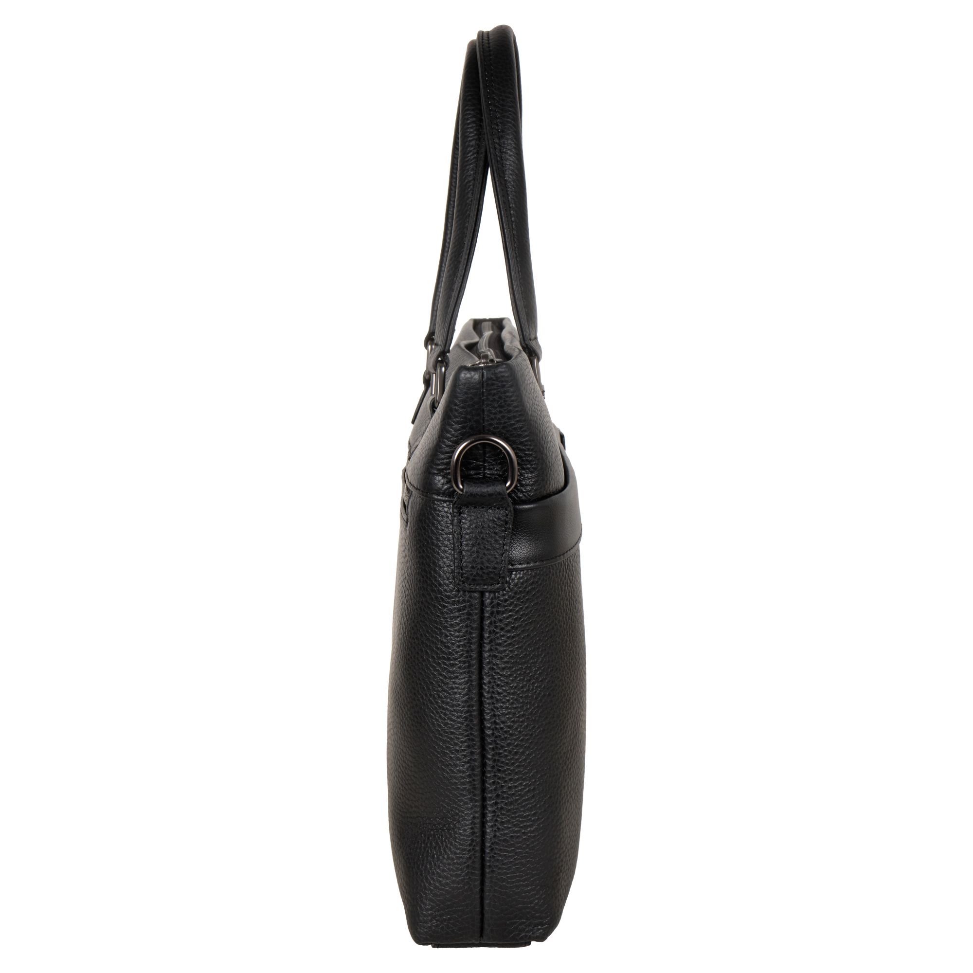 Мужской портфель фирмы Polar из высококачественной натуральной кожи. Черный цвет подчеркивает его классический вид, а также делает возможным легко сочетать его с любым стилем одежды. Подходит для деловых встреч, офисной работы, для учебы в институте и командировок. Портфель имеет одно основное отделение, которое закрывается на металлическую молнию. Внутри есть отделение для электронных устройств или ноутбука с диагональю до 13,3 и открытый кармашек. Модель вмещает формат A4. На передней и задней стенке сумки есть отделения, которое закрывается на магнитную кнопку. Сзади карман на молнии. Высота ручек 18 см, в комплекте есть регулируемый наплечный ремень, максимальная длина 153 см.