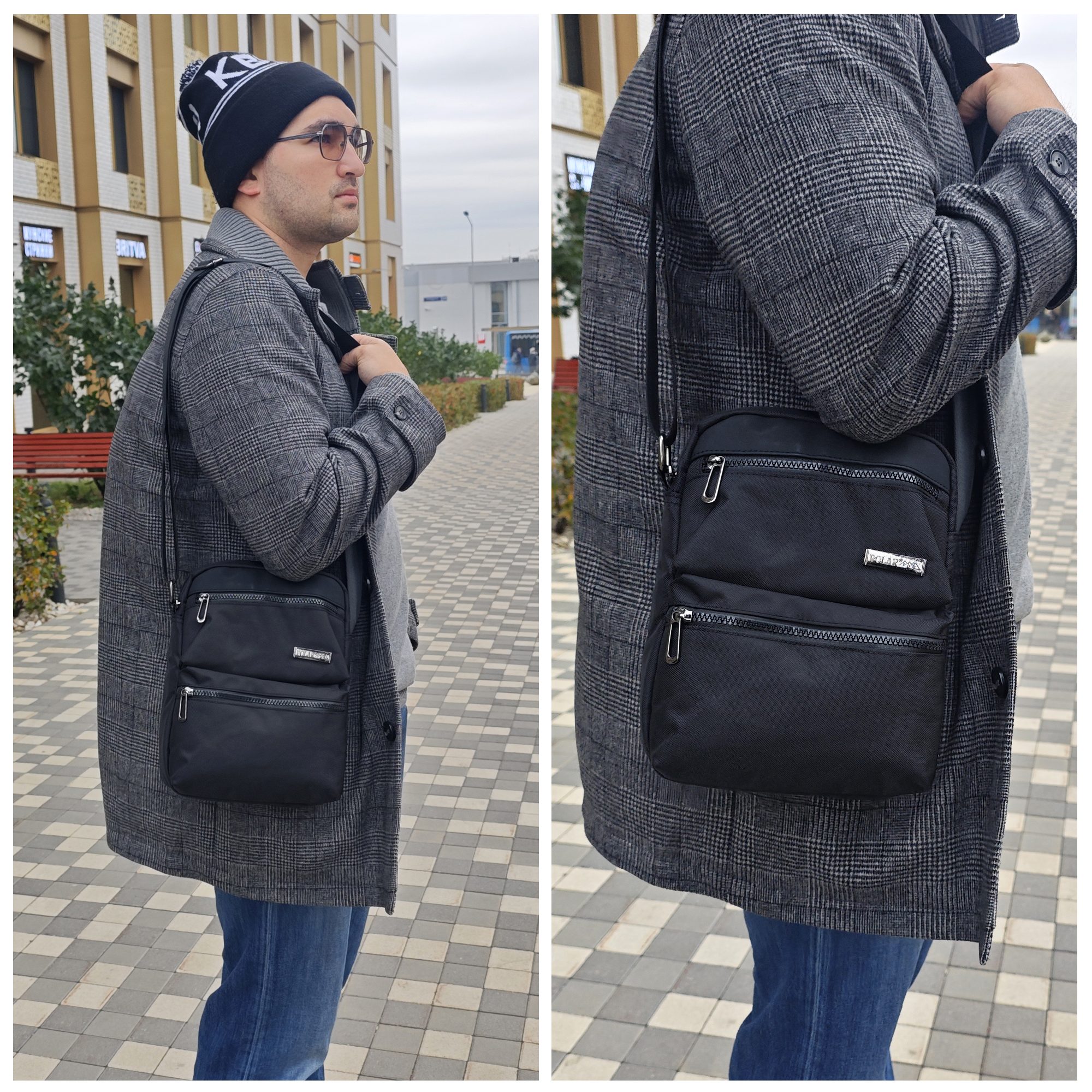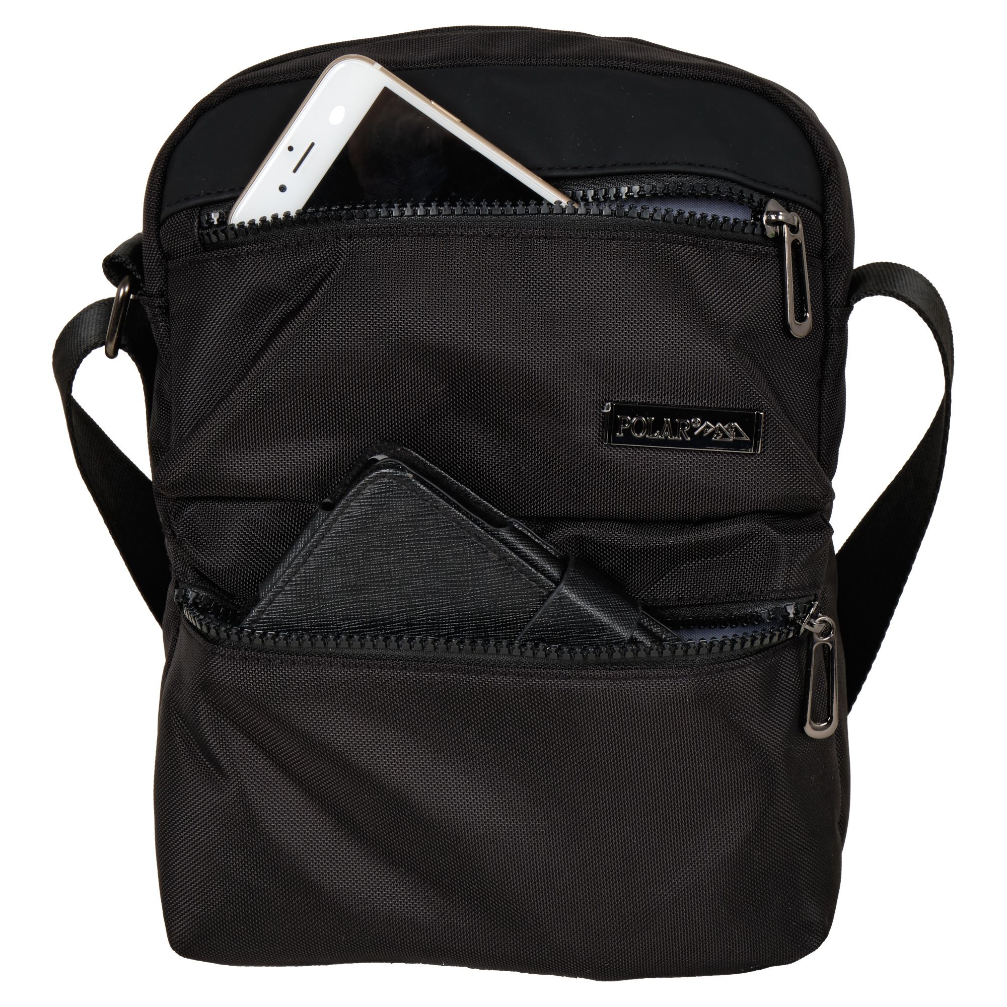 Мужская сумка фирмы Polar. Это настоящая находка для мужчин и подростков, которые хотят быть модными. Кросс-боди обладает практичностью, минималистичным дизайном, на плечо сделана из полиэстера.  Она имеет основное отделение и накладные карманы на тракторную молнию на лицевой стороне. Внутри одного отделения есть маленький карман на молнии.  Вмещает формат А 5. Аксессуар подойдет для хранения самых необходимых в повседневной жизни вещей. Плечевой ремень регулируется по длине 142 см. Цвет фурнитуры- темный никель