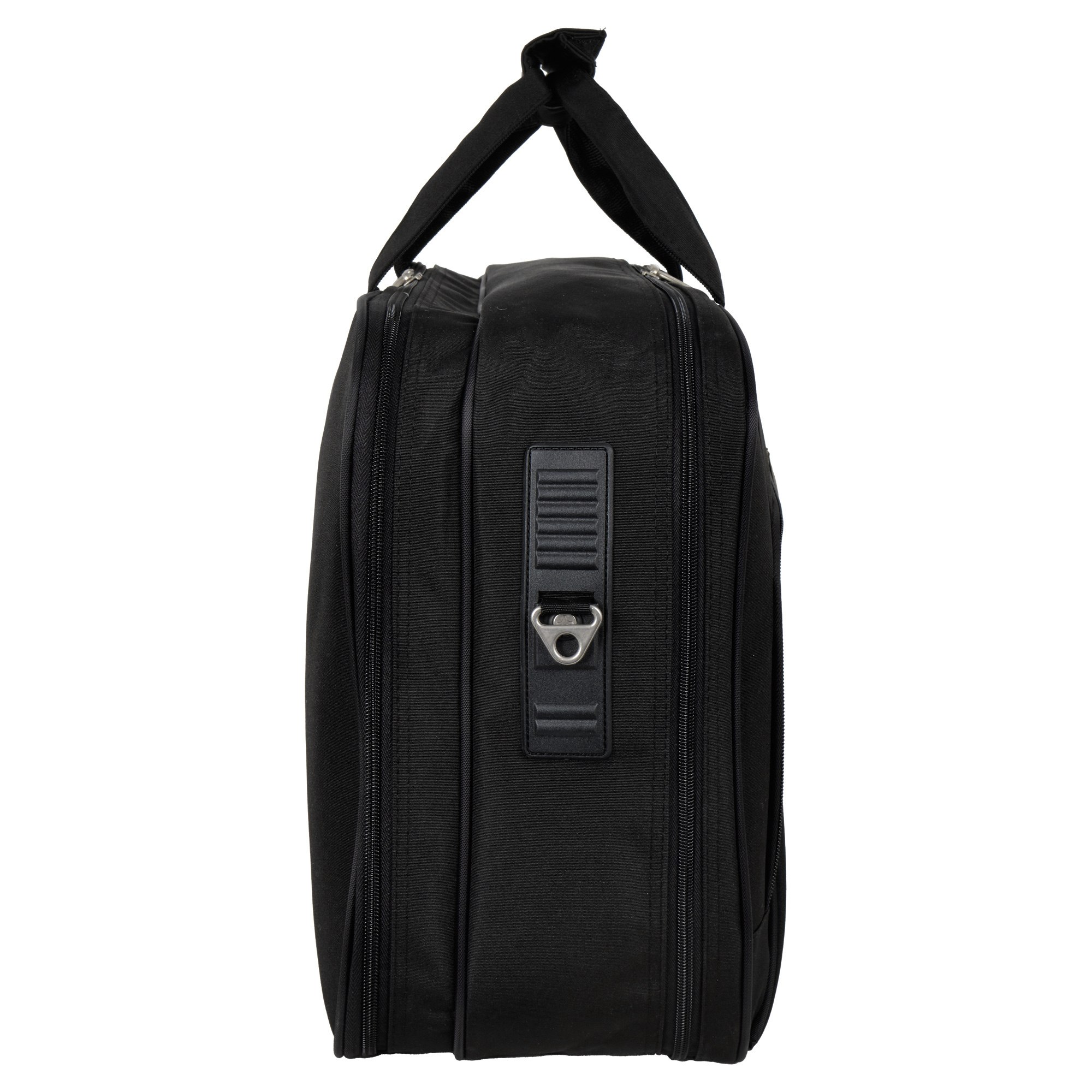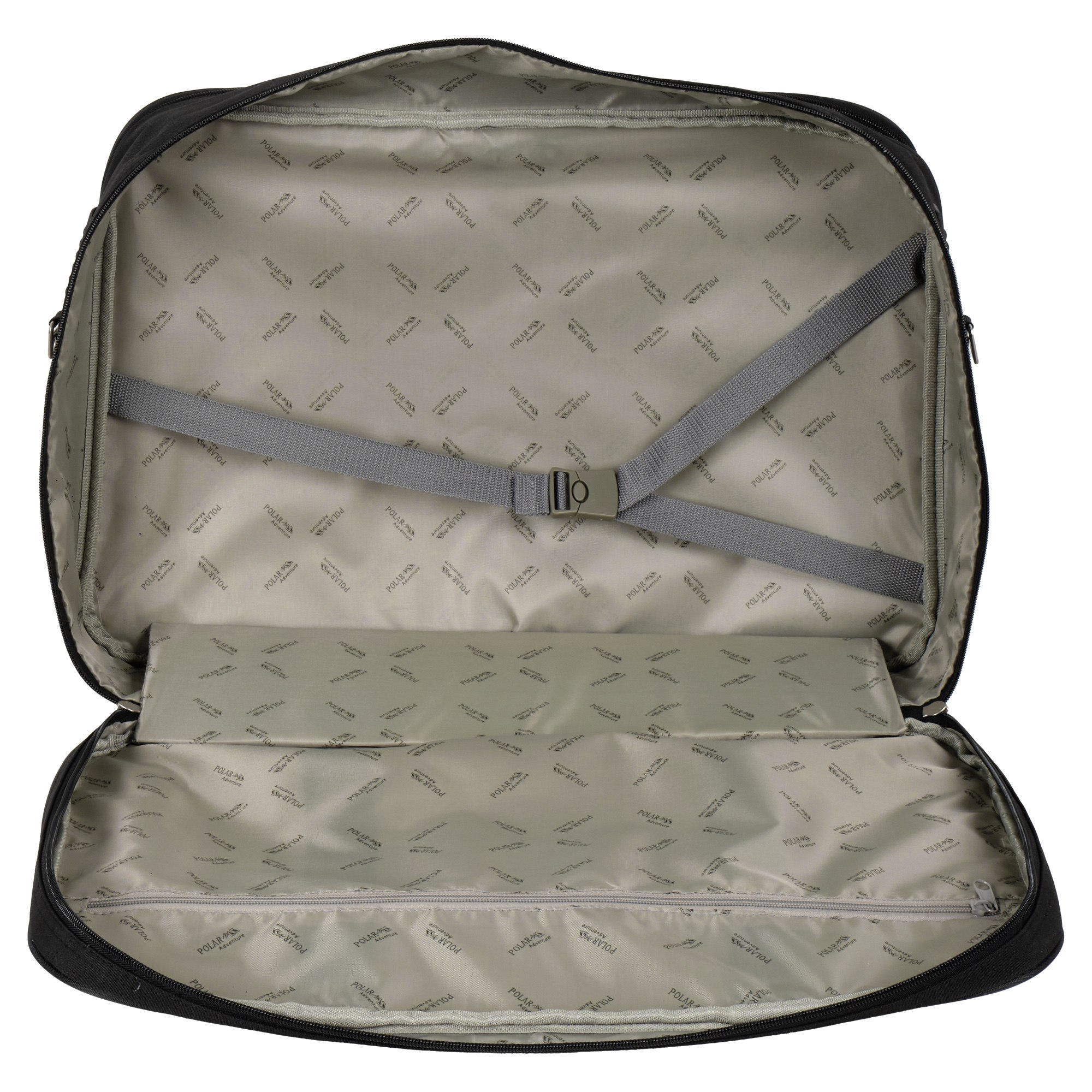 Дорожная сумка Портплед. Удобен для перевозки деловых костюмов в командировке. Это гарантия того, что ваш костюм прибудет в место назначения не только в целости и сохранности, но и сохранит свой презентабельный вид - не помнется и не испачкается. Основной отдел в форме чехла, складывается пополам, благодаря чему вещи сохраняют форму и не мнутся. Внутри два маленьких кармашка для мелких принадлежностей. Снаружи на передней части портпледа имеются объёмный карман на молнии. Снабжен плечевым ремнем и ручкой для переноски.