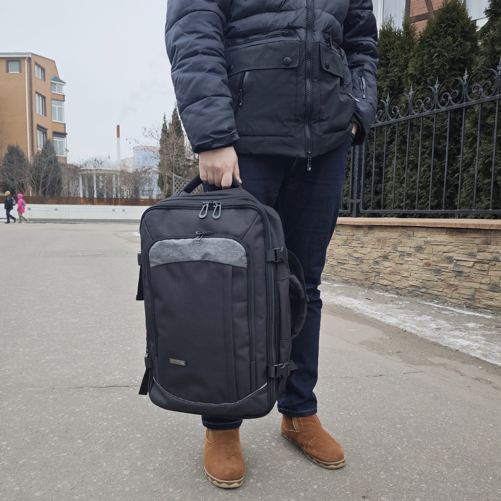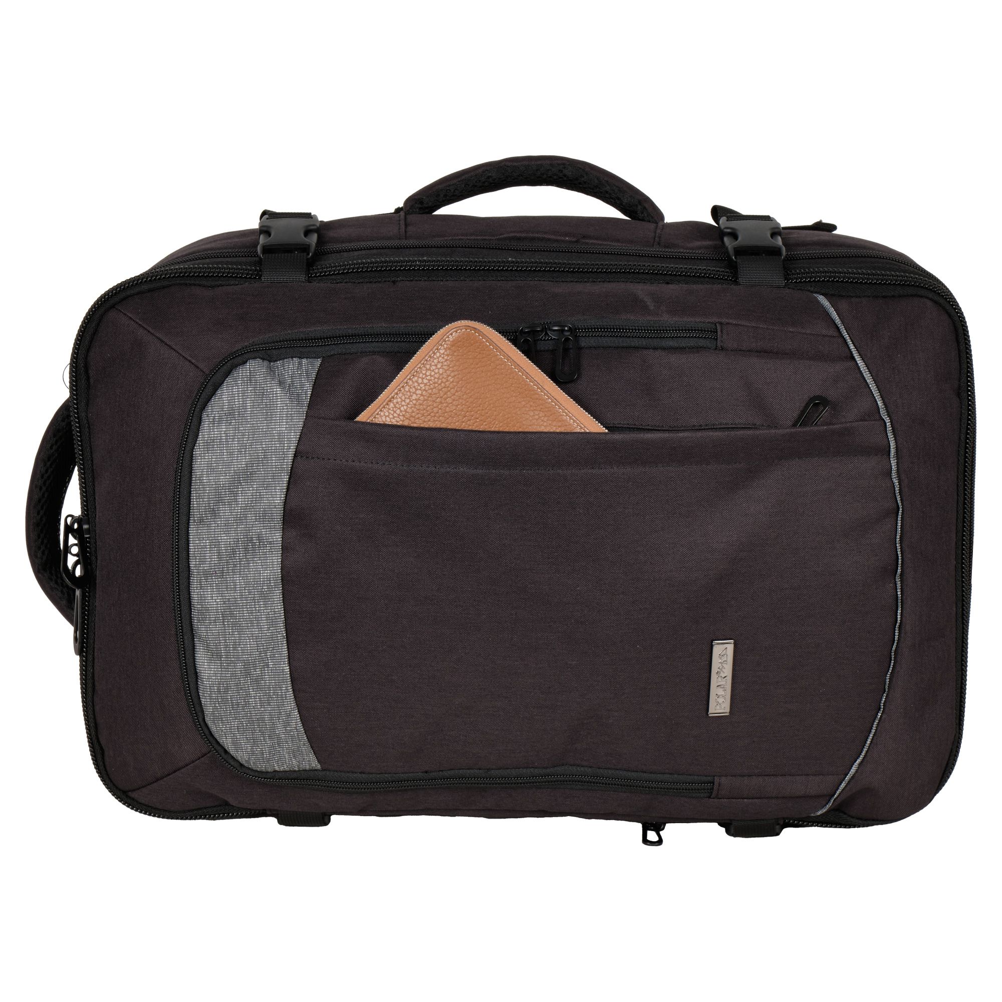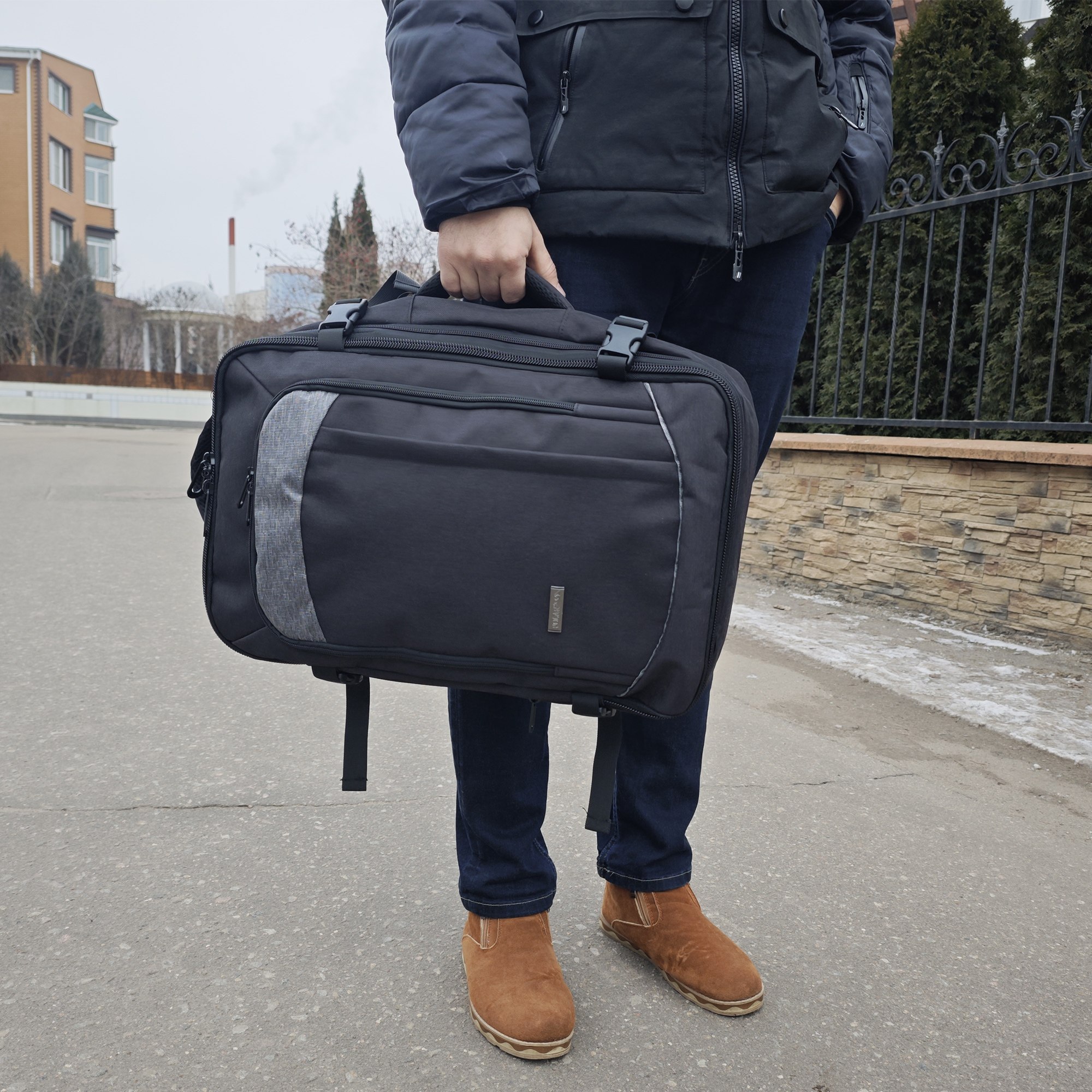 Рюкзак-трансформер фирмы Polar. Рюкзак - сочетает в себе функциональность, чтобы удовлетворить все потребности в хранении и комфорте в поездках и на работе. Он также имеет достаточно места для личных вещей, таких как одежда, документы и аксессуары, что делает его идеальным спутником для длительных путешествий или деловых командировок. Сумка-рюкзак расширяется на 6 см. На лицевой стороне рюкзака встроены два кармана, которые обеспечивают удобную организацию ваших мелочей и аксессуаров. Регулируемые лямки длина 90 см и вентилируемая мягкая спинка создают дополнительный комфорт при ношении. Регулирующая грудная и боковая стяжка с удобным фиксатором. На задней стенке рюкзака предусмотрено крепление на ручку чемодана и потайной карман на молнии.
