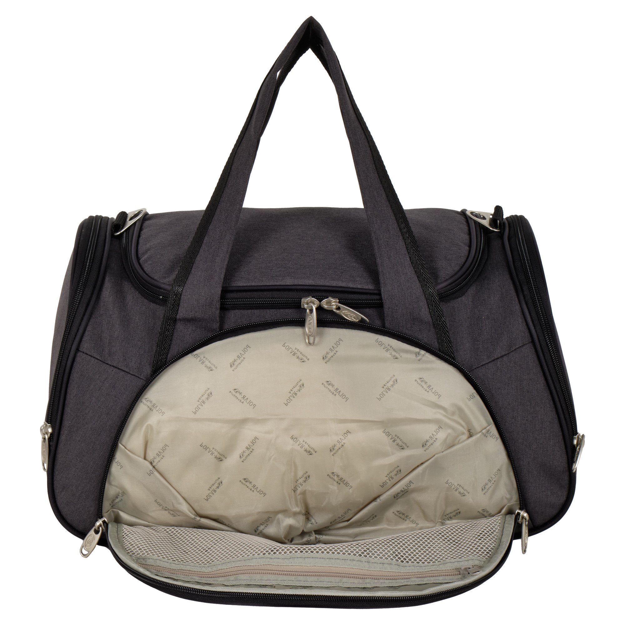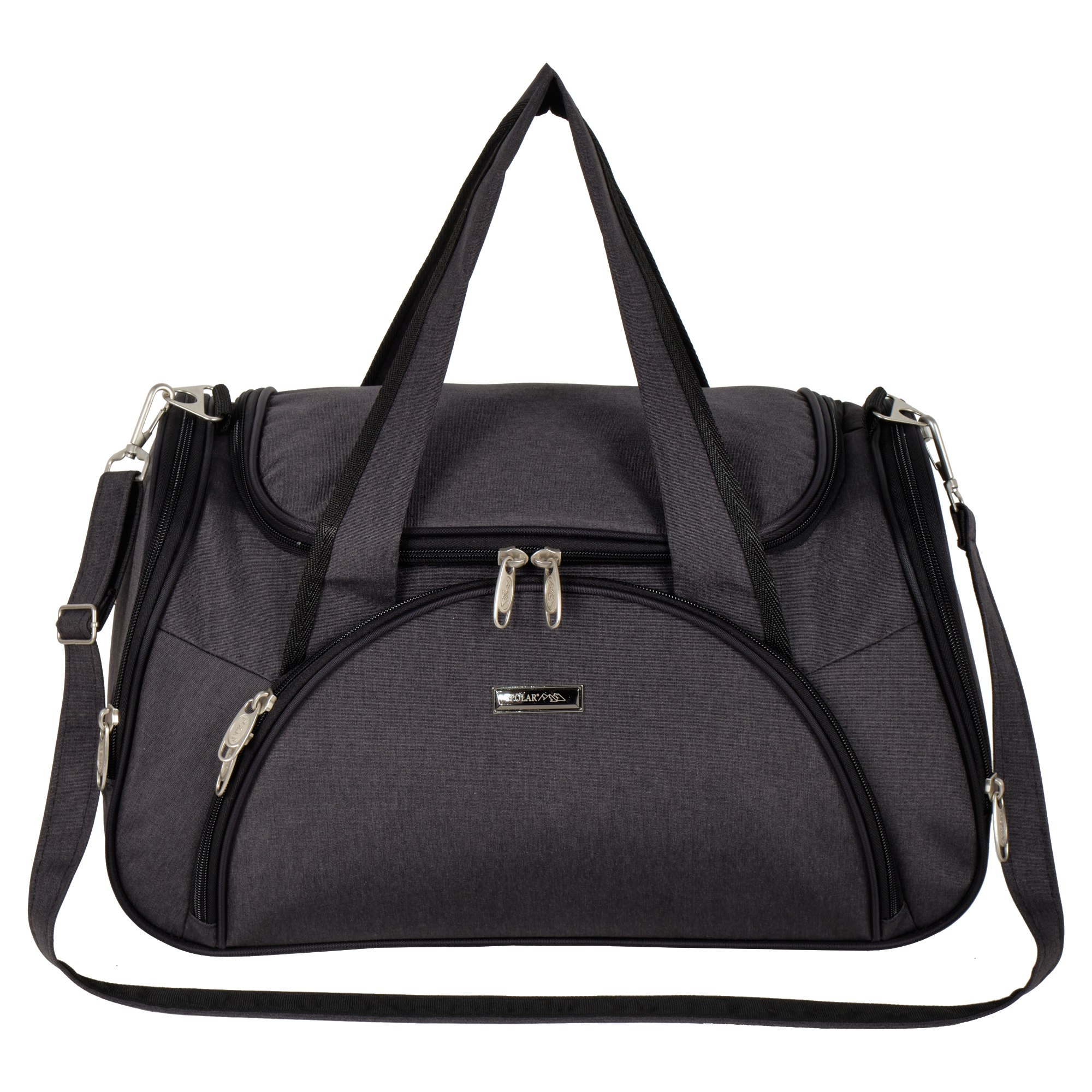 Вместительная и удобная дорожная сумка Polar . Основное отделение закрывается на молнию. Один из боковых карманов предназначен для обуви, мокрых вещей. Дополнительно снаружи большой карман на молнии спереди сумки и небольшие карманы по бокам.  В дорожную сумку легко помещаются спортивная форма, обувь или вещи для поездки. В комплекте регулируемый съемный плечевой ремень.