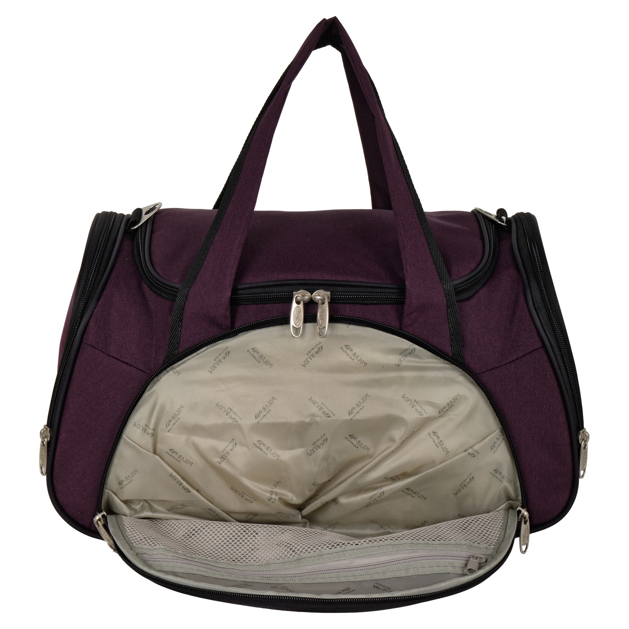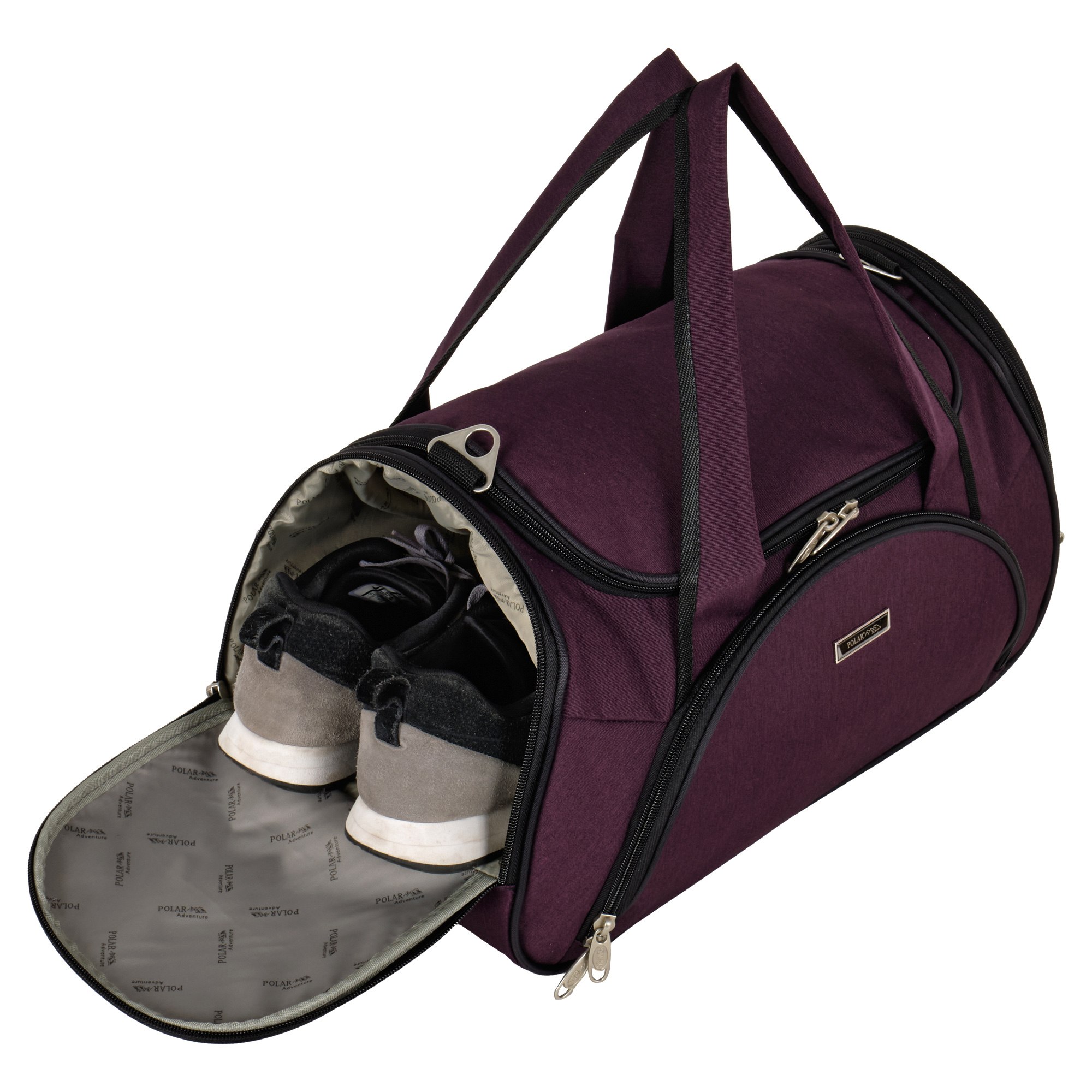 Вместительная и удобная дорожная сумка Polar . Основное отделение закрывается на молнию. Один из боковых карманов предназначен для обуви, мокрых вещей. Дополнительно снаружи большой карман на молнии спереди сумки и небольшие карманы по бокам.  В дорожную сумку легко помещаются спортивная форма, обувь или вещи для поездки. В комплекте регулируемый съемный плечевой ремень.