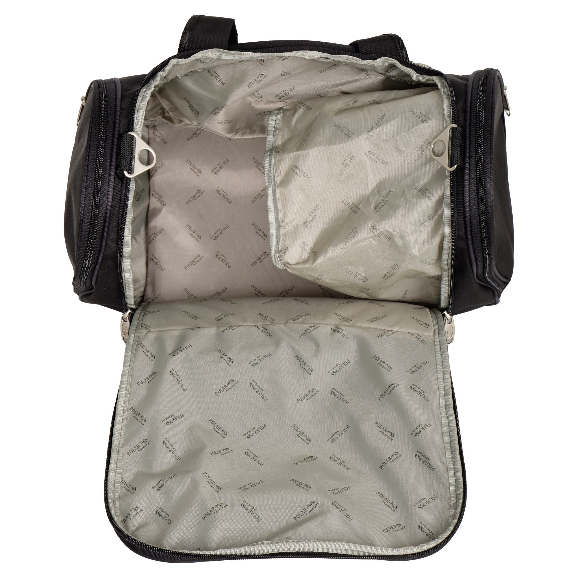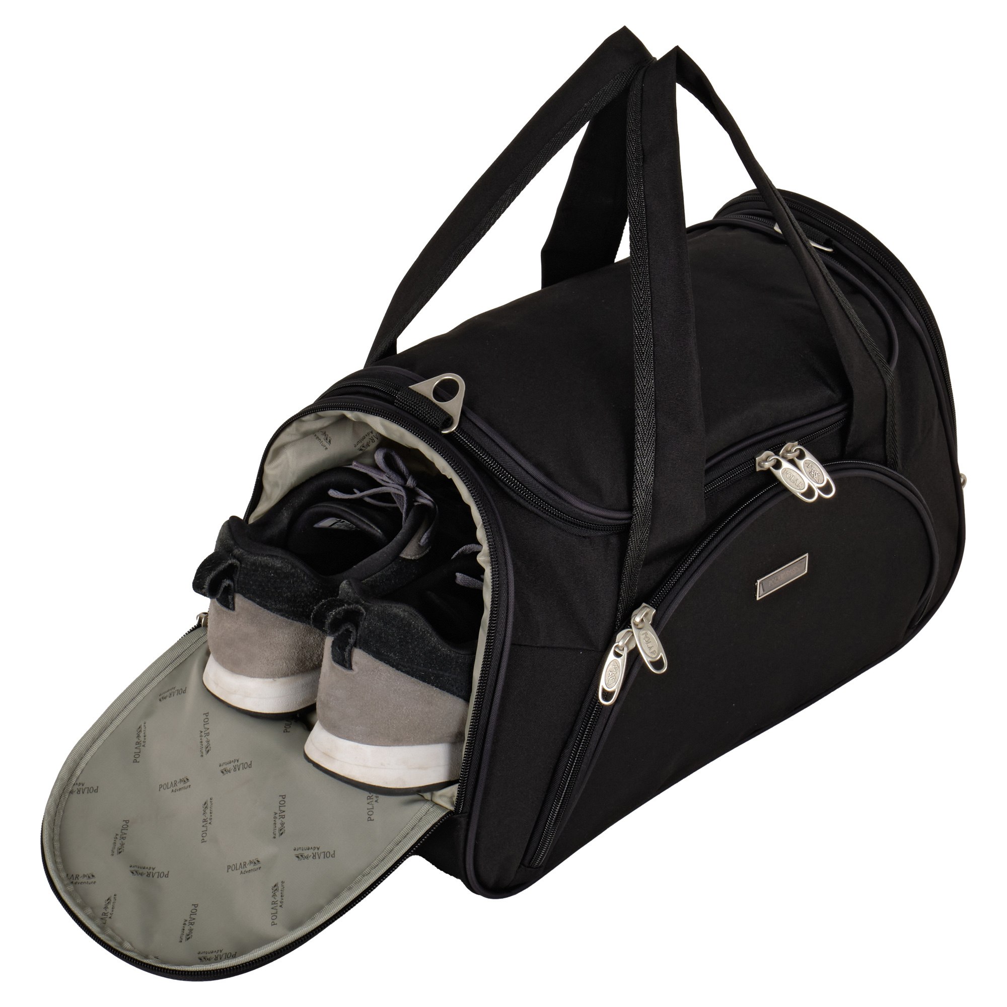 Вместительная и удобная дорожная сумка Polar . Основное отделение закрывается на молнию. Один из боковых карманов предназначен для обуви, мокрых вещей. Дополнительно снаружи большой карман на молнии спереди сумки и небольшие карманы по бокам.  В дорожную сумку легко помещаются спортивная форма, обувь или вещи для поездки. В комплекте регулируемый съемный плечевой ремень.