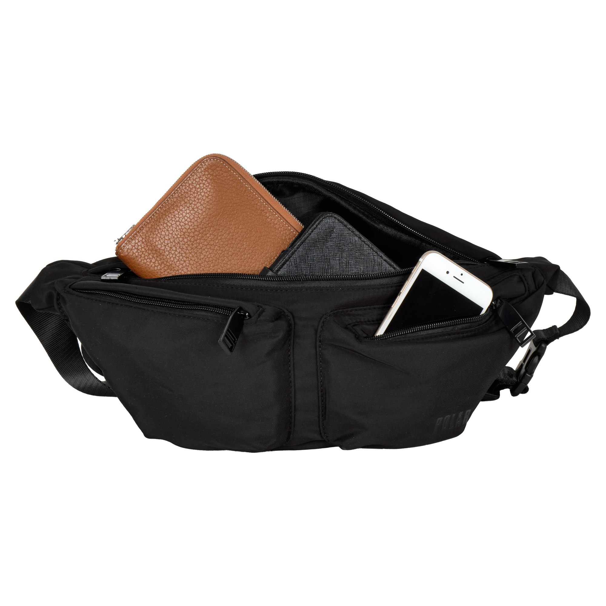 Поясная молодёжная сумка POLAR выполнена из полиэстера и прекрасно подходит для пеших прогулок и занятий спортом в черте города и на природе. Сумка состоит из одного отделения, которые закрываются на молнию. Внутри один открытый карман. Спереди два накладный кармана на молнии. Сзади карман на молнии. Модель очень удобная и комфортная. Максимальная длина ремня 136 см.