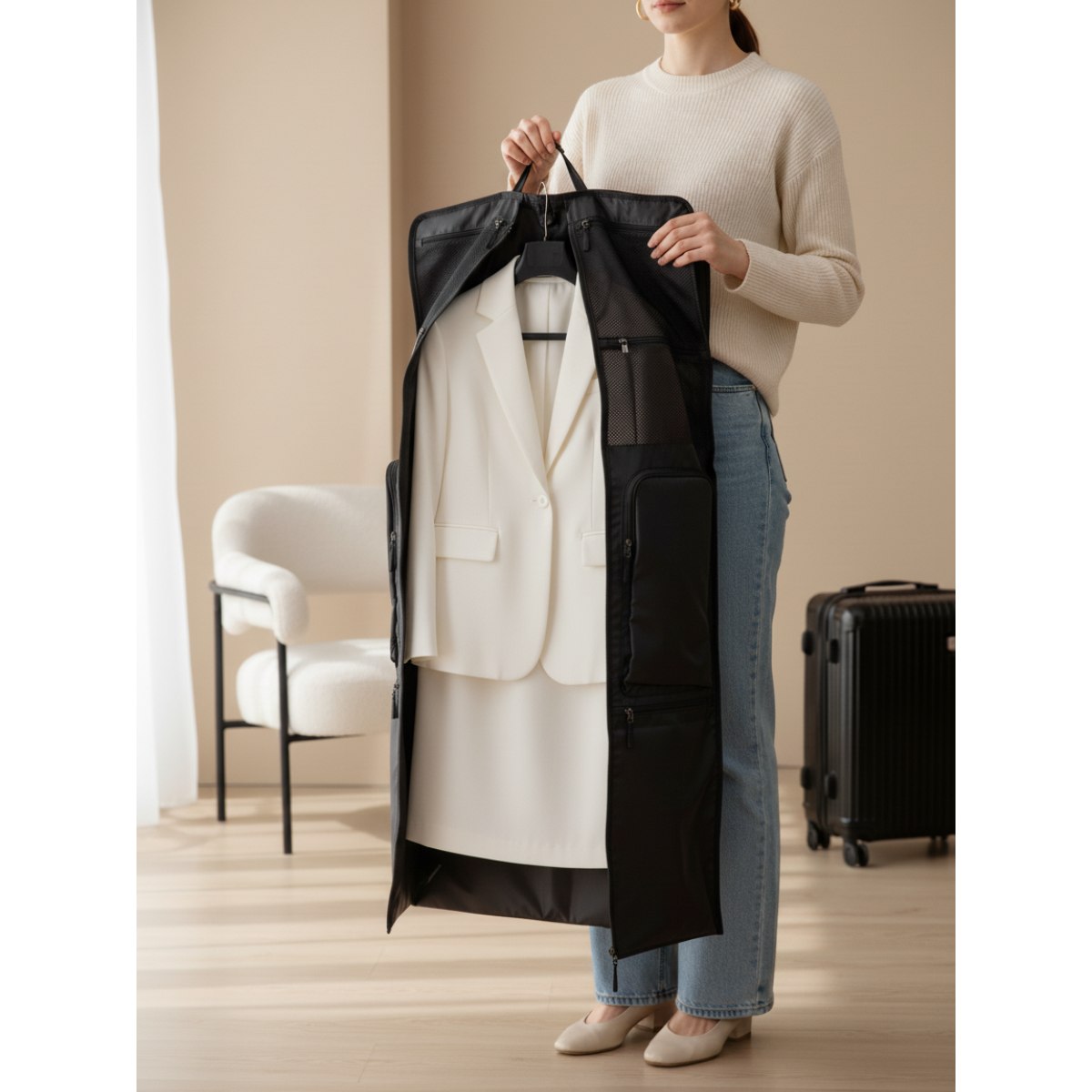 Портплед–чехол для одежды фирмы Polar изготовлен из легкого, прочного полиэстера . Для бережного хранения костюмов, платьев, рубашек или других вещей, которых надо уберечь от сминания. В верхней части чехла находится застежка фастекс, благодаря которому две половинки будут всегда вместе. Фастекс прочно закреплен окантовкой. Отверстие для вешалки находится в верхней части чехла. Внутри чехол застегивается на молнию. Множество карманов, чтобы разместить все необходимое в поездке. Максимальная длина чехла в разложенном виде 120 см. Ручка для переноски 9см.