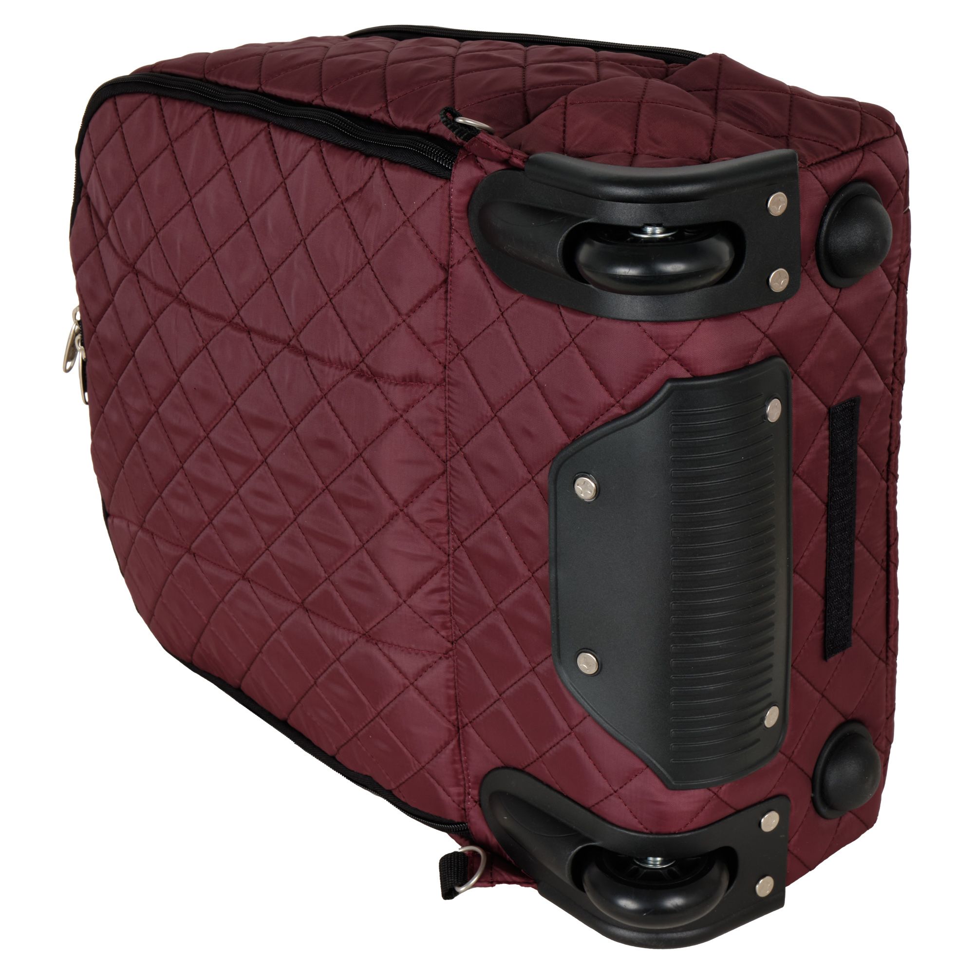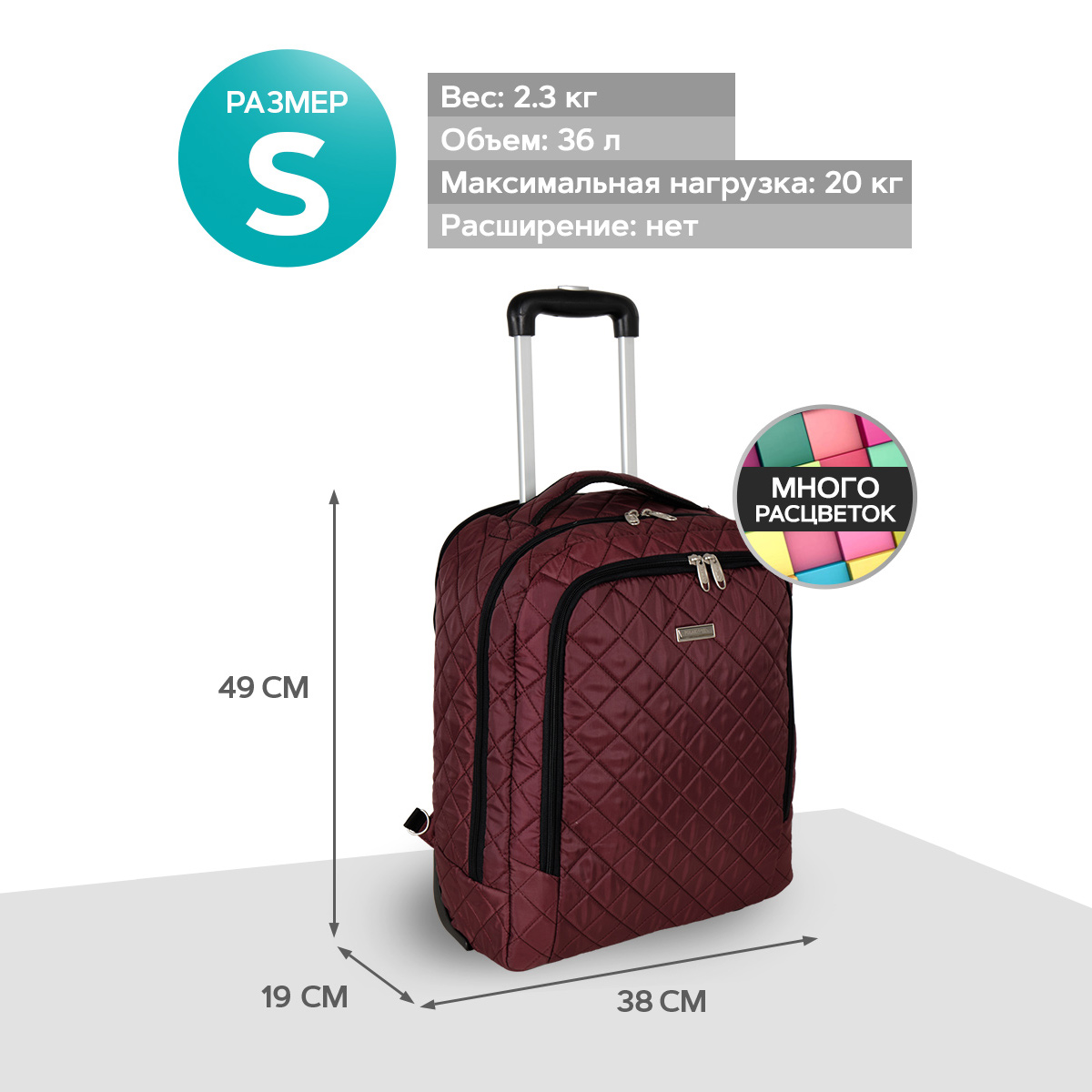 Колеса прорезиненные, дно дополнительно защищено от истирания. Сумка устойчиво стоит на ножках. Модель подходит под требования для ручной клади в большинство авиакомпаний с ограничениями по размерам 50X40X20 см, а линейный размер (сумма трех измерений равен 106 см).
