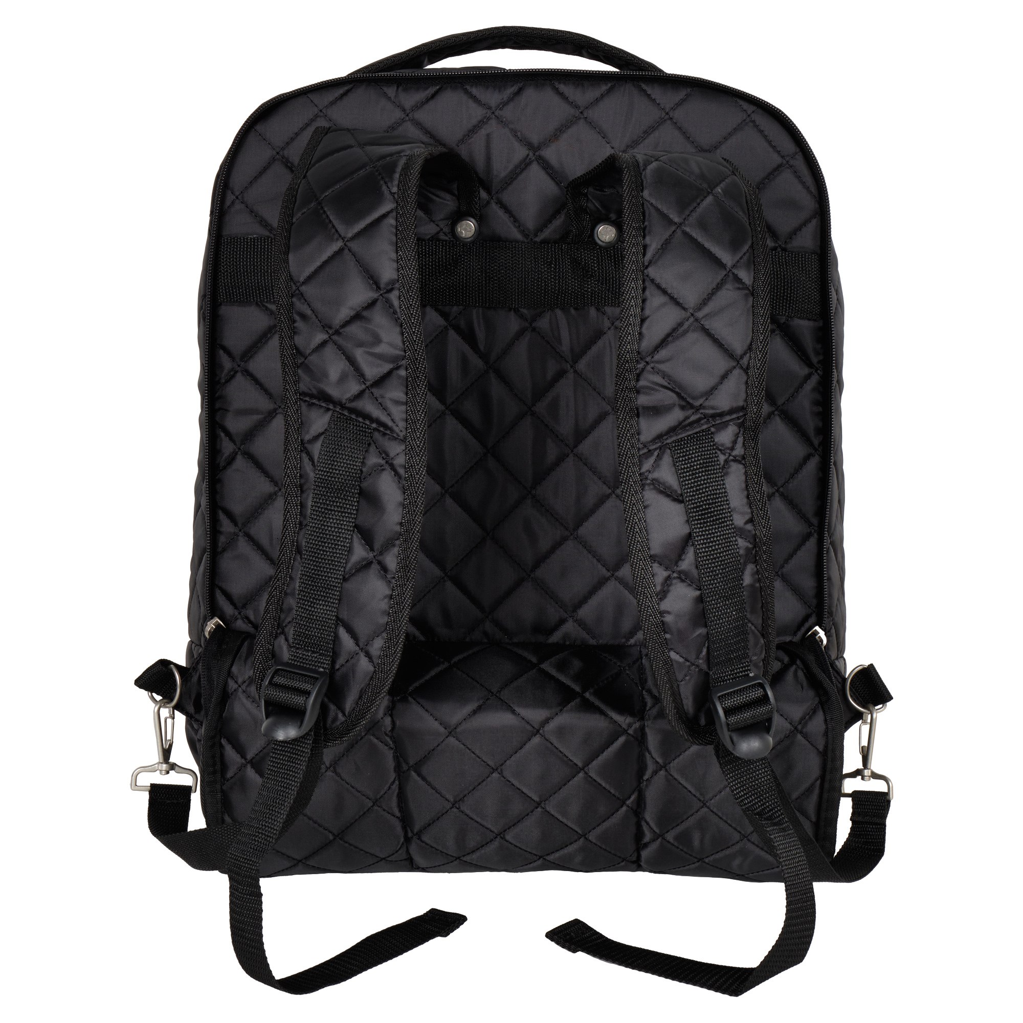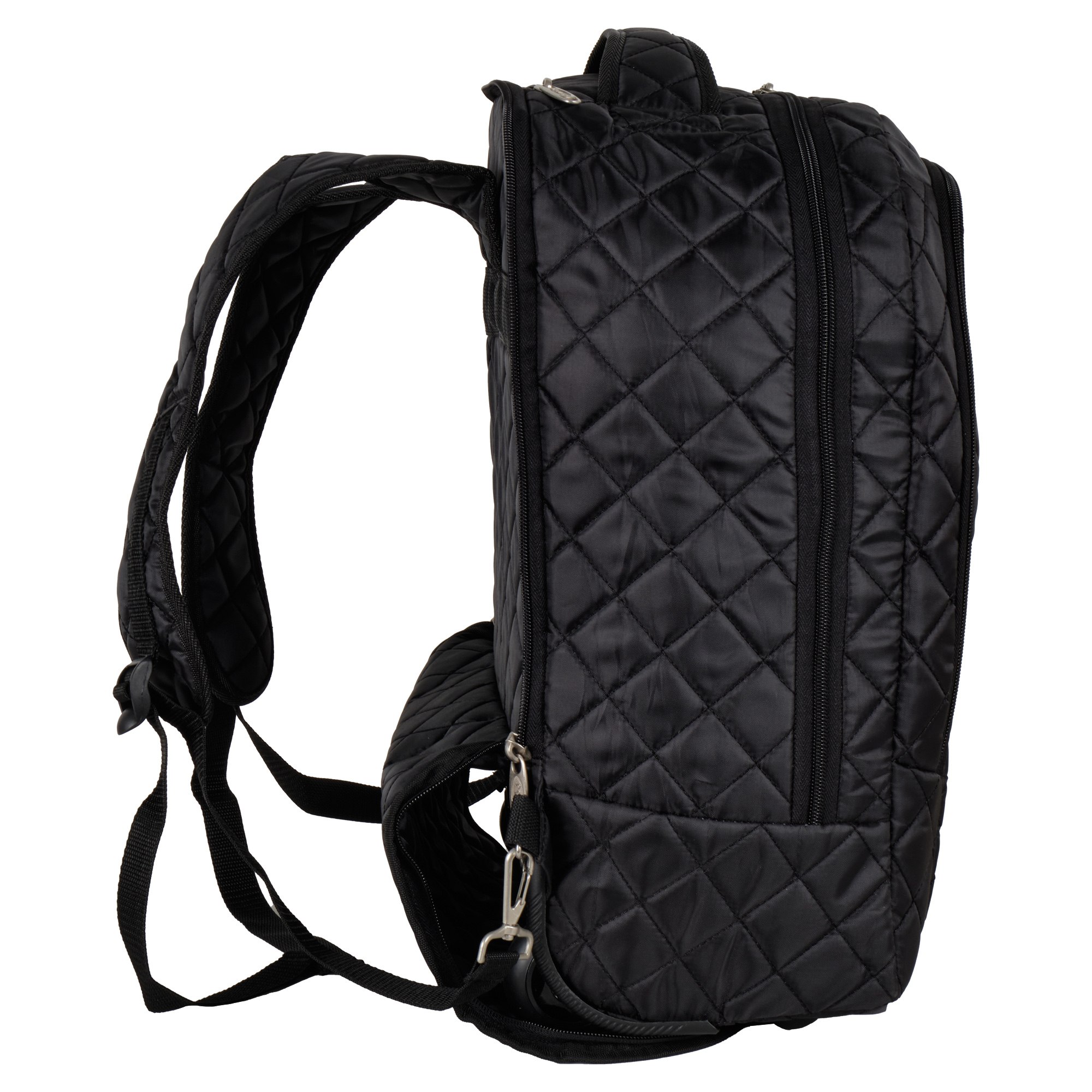 Особенностью данной модели является, то что на задней стенке, в отделении под молнией спрятаны рюкзачные лямки, которые вы можете пристегнуть и носить чемодан как рюкзак, освободив руки.