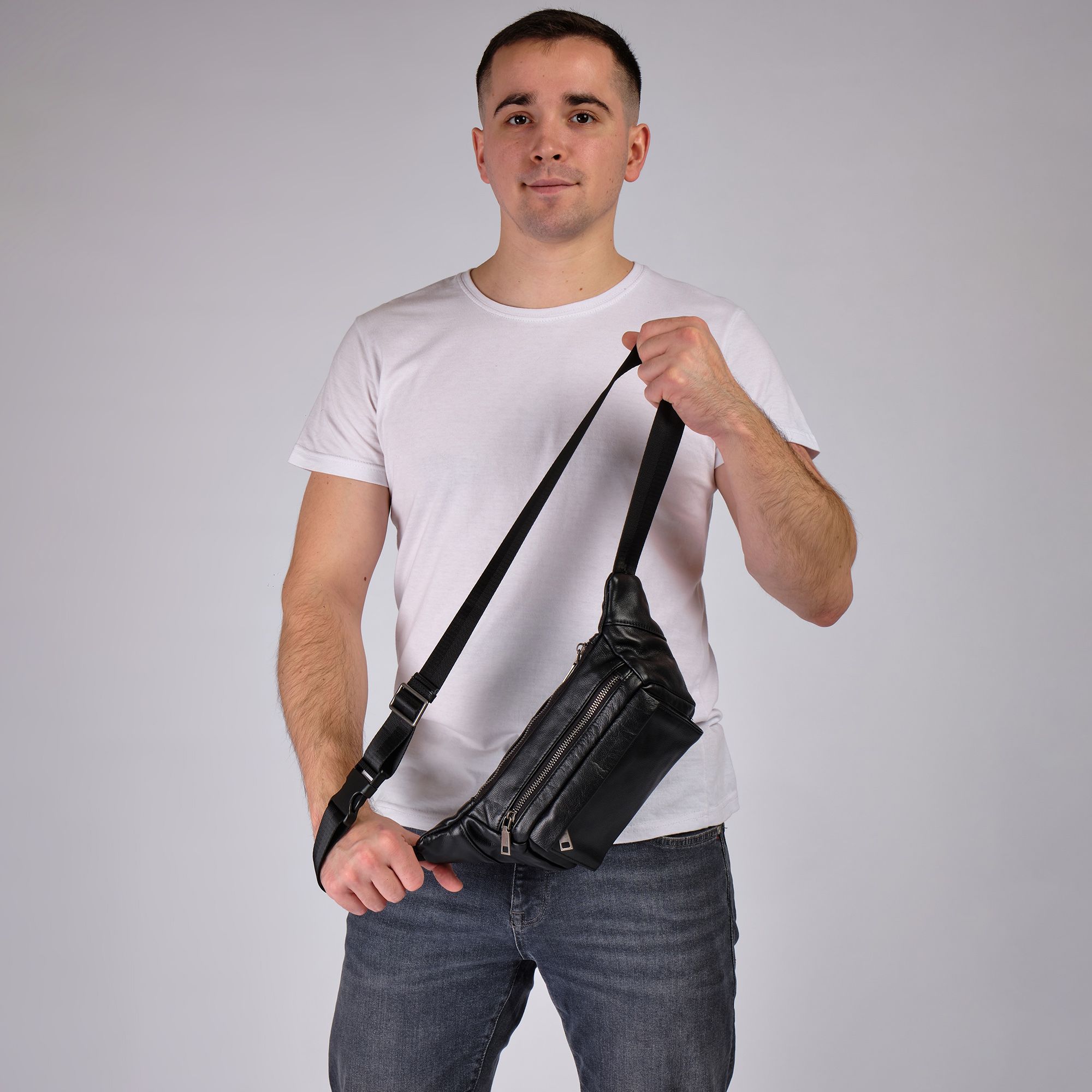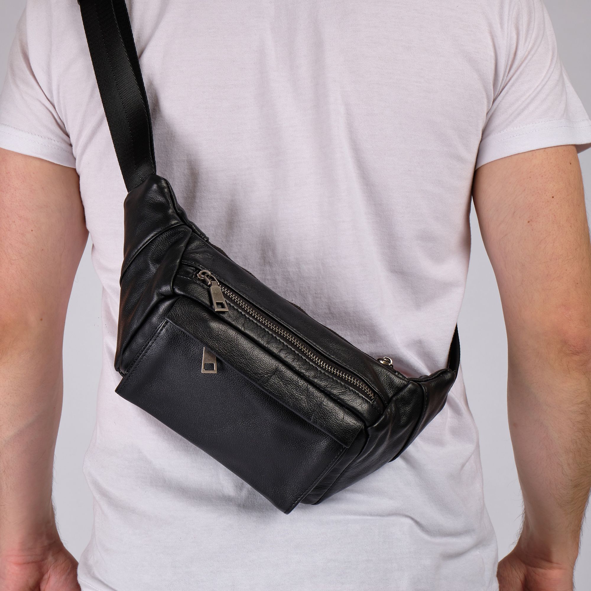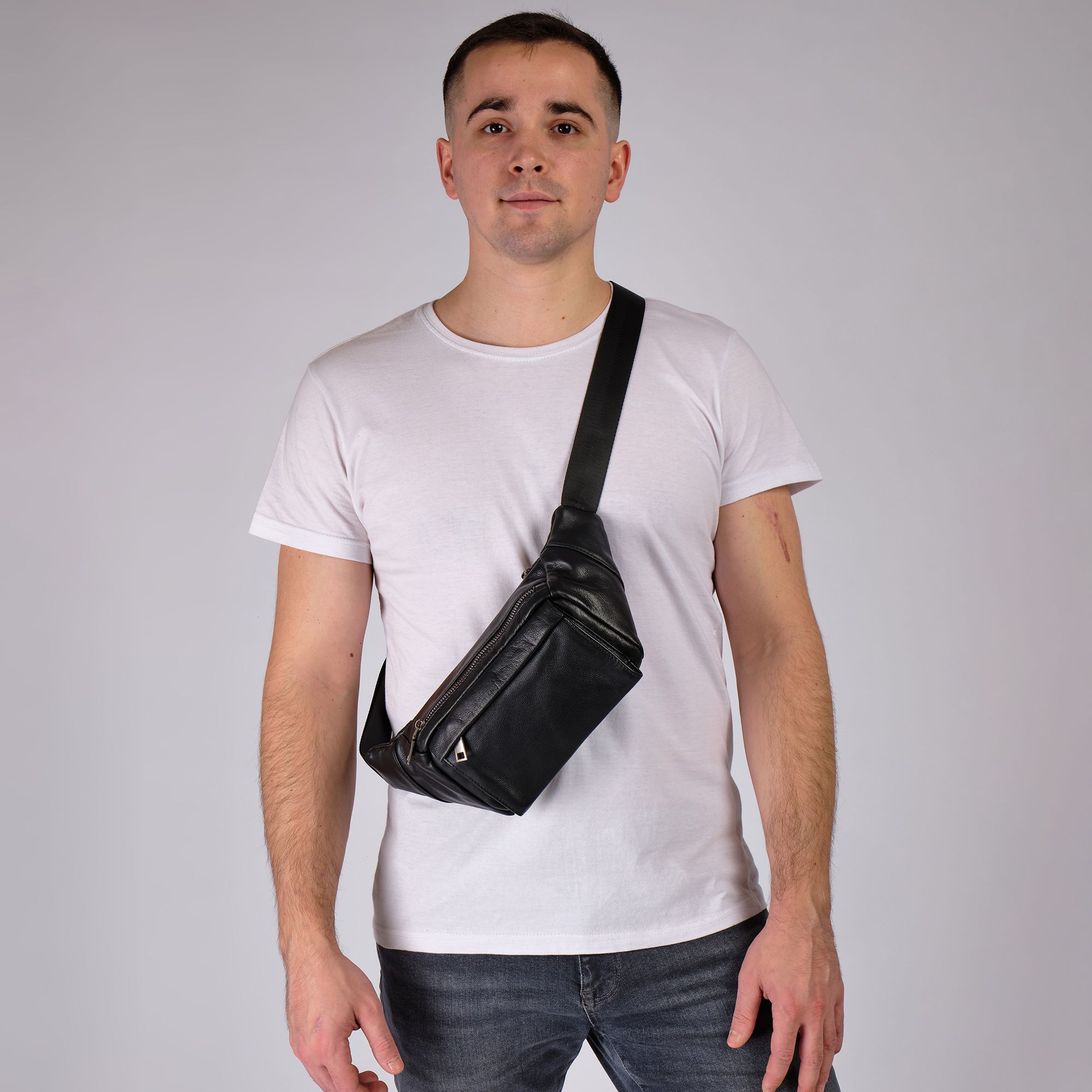 Мужская кожаная сумка фирмы Polar из высококачественной натуральной кожи. Эта модная большая и стильная сумка на грудь подойдет как для повседневного использования, так и для особых случаев. Классическая кросс боди мини изготовлена из натуральной кожи, эта черная бананка имеет мягкую текстуру и прочный ремень. Благодаря оптимальному размеру бананка позволит вместить большое количество необходимых вещей: бумажник, ключи, кошелек. Вместительное внутреннее отделение подходит для документов и письменных принадлежностей, карман - для телефона, а два внешних маленьких кармана на молнии для других мелочей. Стильная нагрудная барсетка идеально подойдет для мужчин любого возраста. В комплекте есть регулируемый наплечный ремень, максимальная длина 143 см.