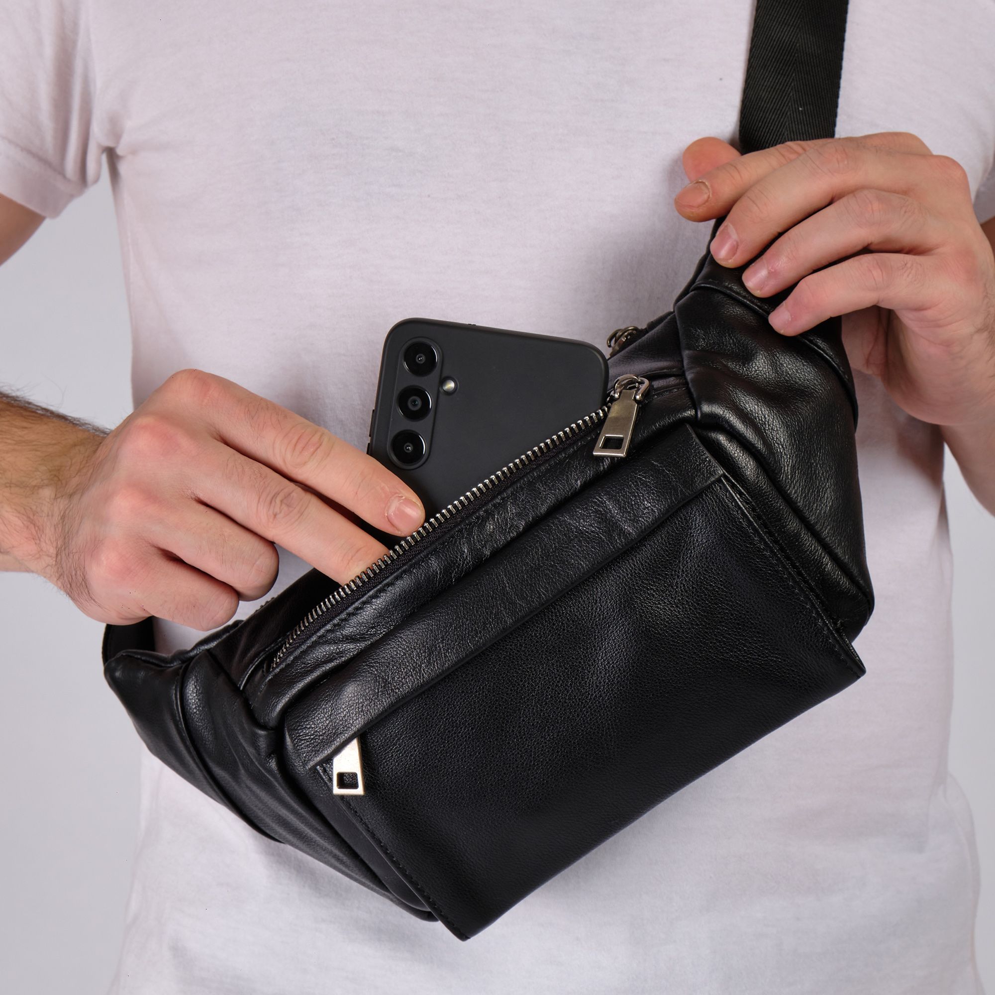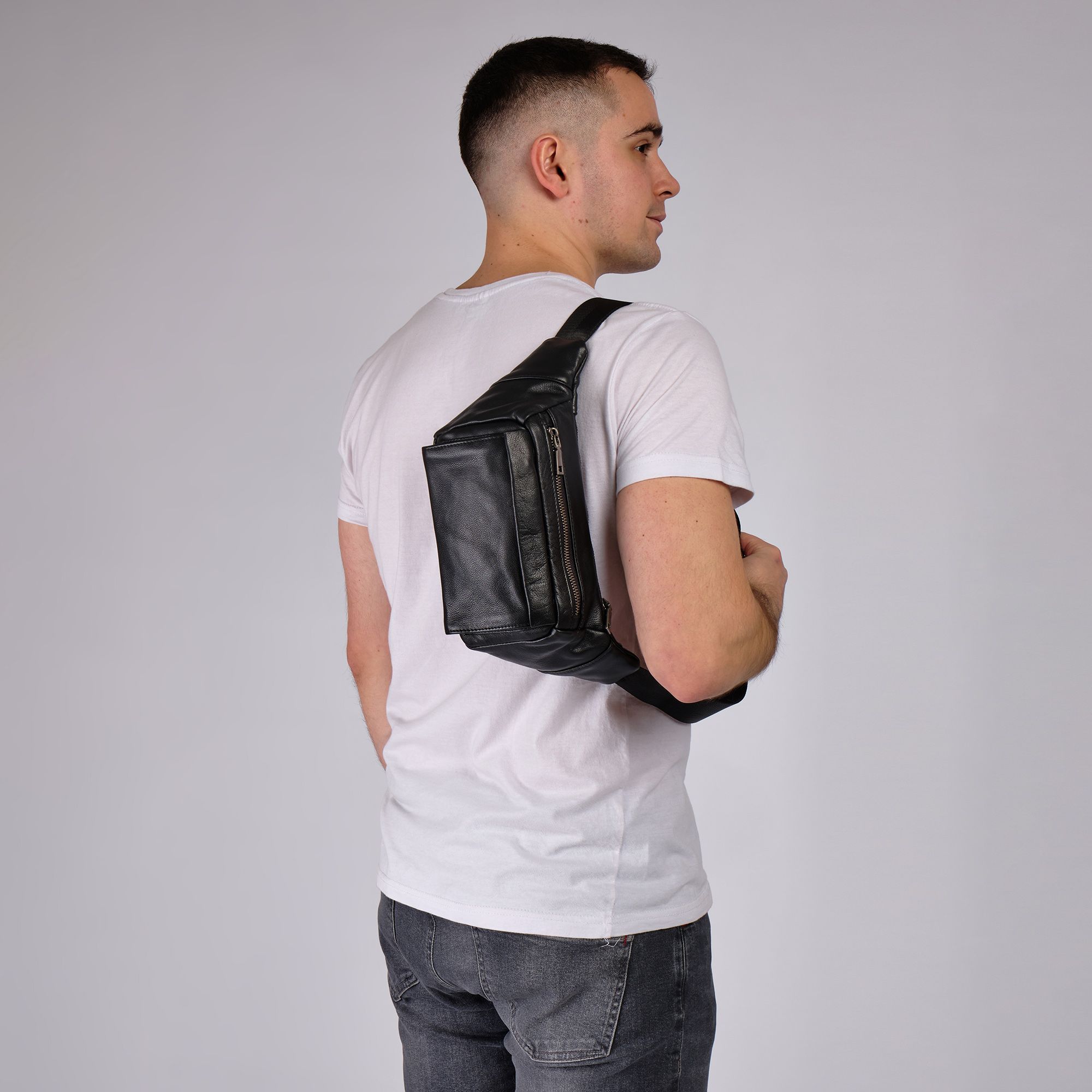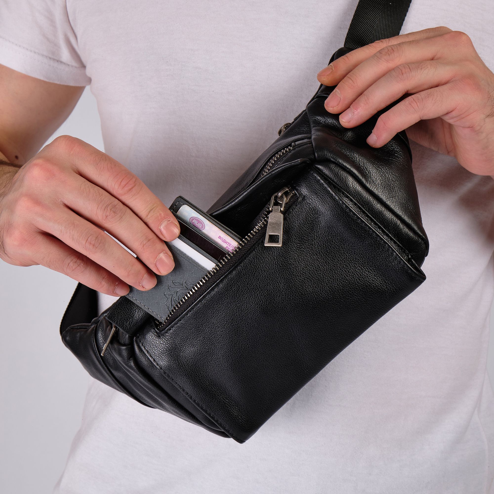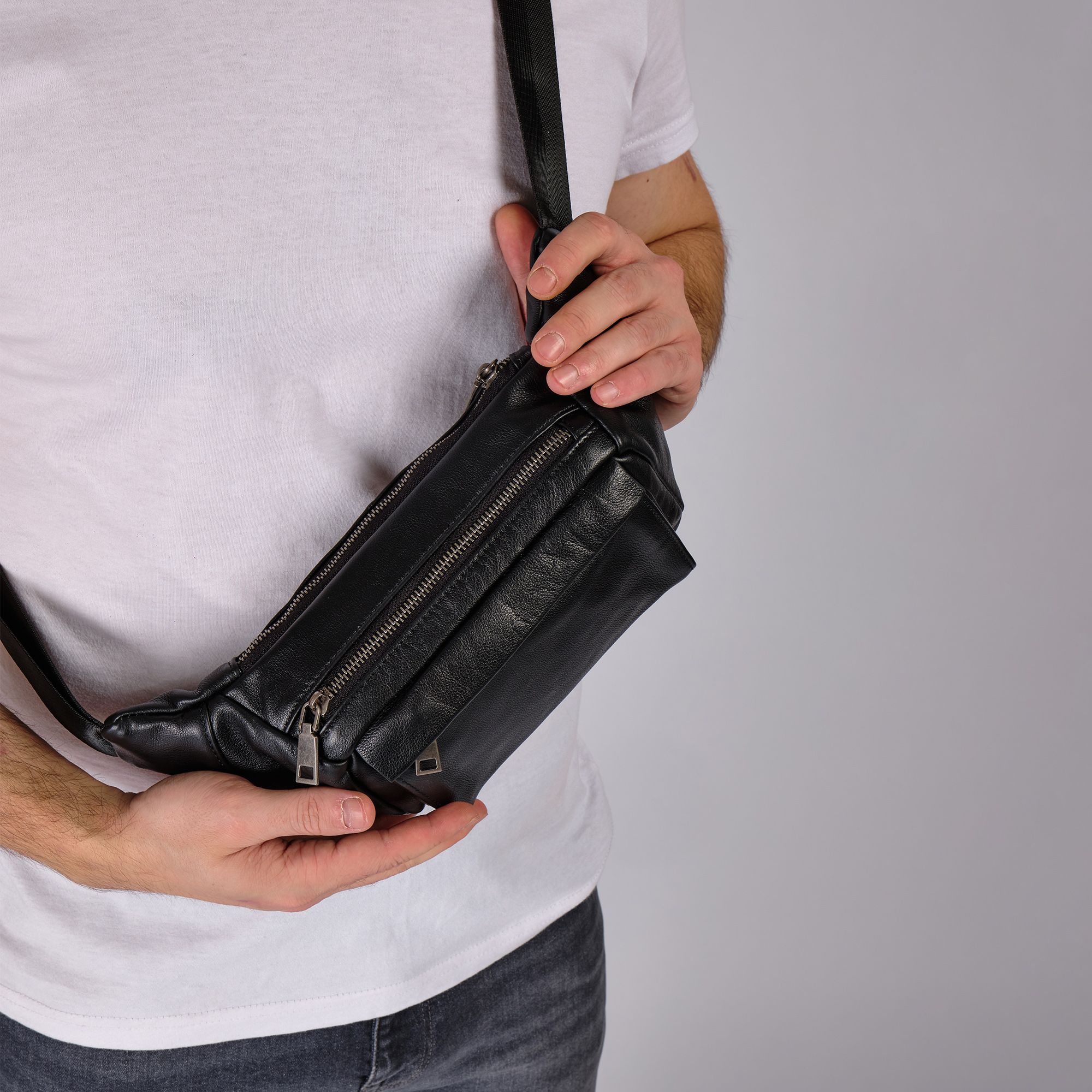 Мужская кожаная сумка фирмы Polar из высококачественной натуральной кожи. Эта модная большая и стильная сумка на грудь подойдет как для повседневного использования, так и для особых случаев. Классическая кросс боди мини изготовлена из натуральной кожи, эта черная бананка имеет мягкую текстуру и прочный ремень. Благодаря оптимальному размеру бананка позволит вместить большое количество необходимых вещей: бумажник, ключи, кошелек. Вместительное внутреннее отделение подходит для документов и письменных принадлежностей, карман - для телефона, а два внешних маленьких кармана на молнии для других мелочей. Стильная нагрудная барсетка идеально подойдет для мужчин любого возраста. В комплекте есть регулируемый наплечный ремень, максимальная длина 143 см.