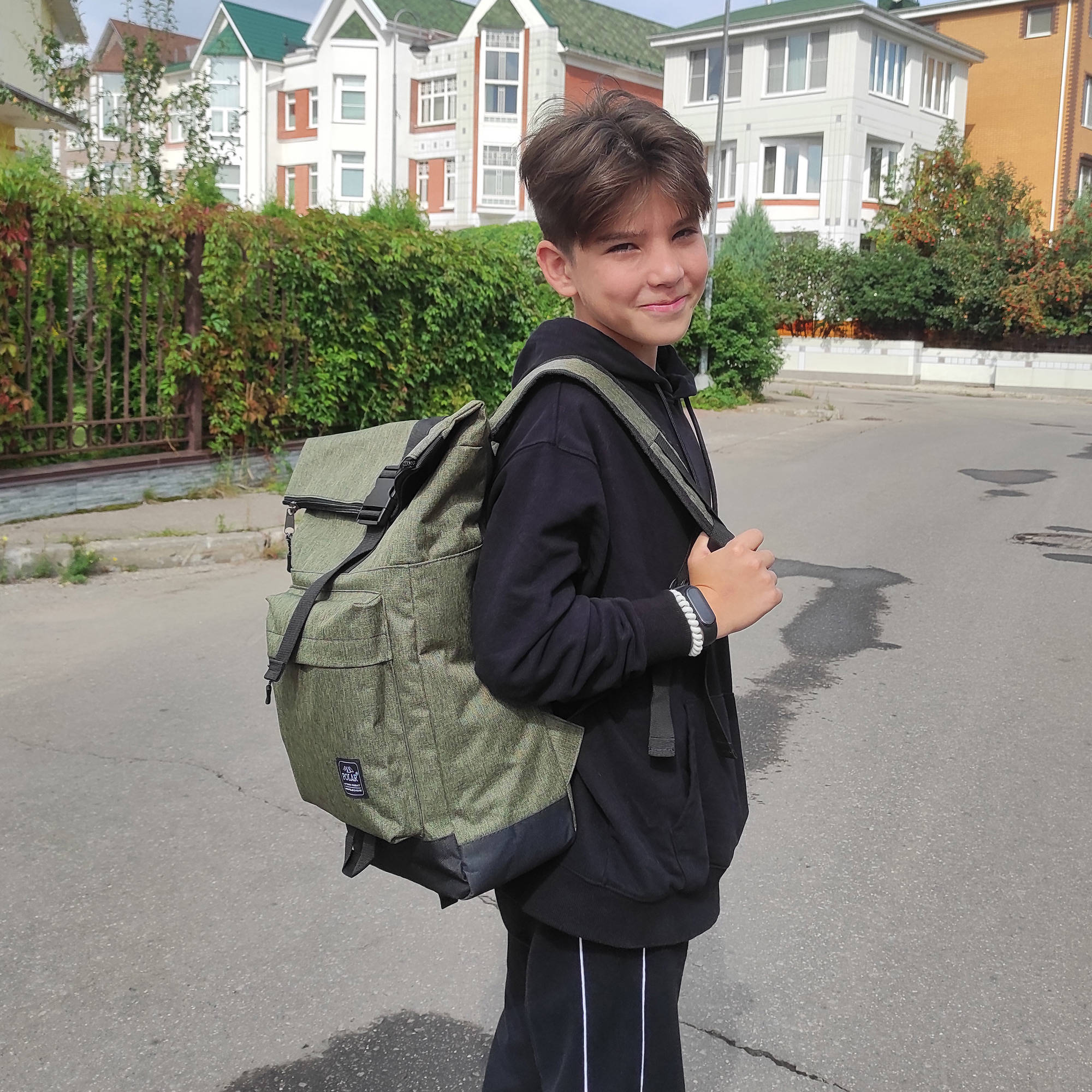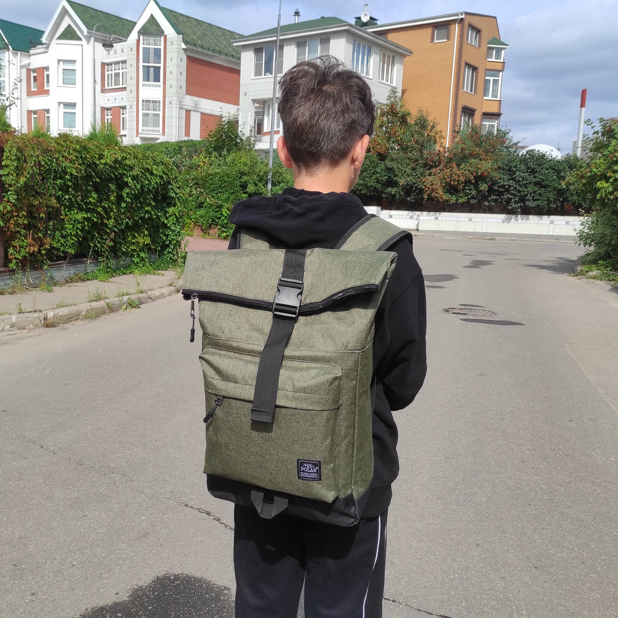 Стильный рюкзак фирмы POLAR для прогулок и учебы, путешествий и спорта, работы, школы, института с верхним клапаном на удобной пряжке.  Такая конструкция позволяет менять объем рюкзака, когда вы захотите увеличить его основное отделение за счет клапана на застежке.  Так же верхний клапан — это дополнительная защита ваших вещей от краж и дождя. Рюкзак выглядит очень современно. Он универсален и очень надежный, подходит как для мужчин, так и для женщин.  Материал рюкзака с водо- и грязеотталкивающей пропиткой.  Эргономические лямки с сетчатыми уплотнителями делают этот рюкзак очень комфортным в использовании и снимают лишнюю нагрузку. Регулирующая грудная стяжка с удобным фиксатором. Основное отделение закрывается на молнию и регулирующую застежку с клапаном на пряжке. Внутри один большой карман для документов формата А4, планшета или  ноутбука до 15"  и небольшой карман на молнии.  Есть накладной карман на молнии для карточек, ключей. Длина лямок 82 см, ширина 7,5 см.