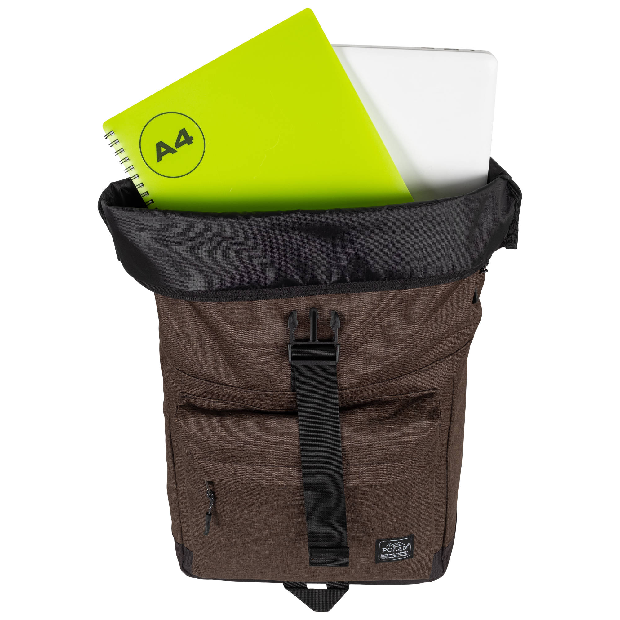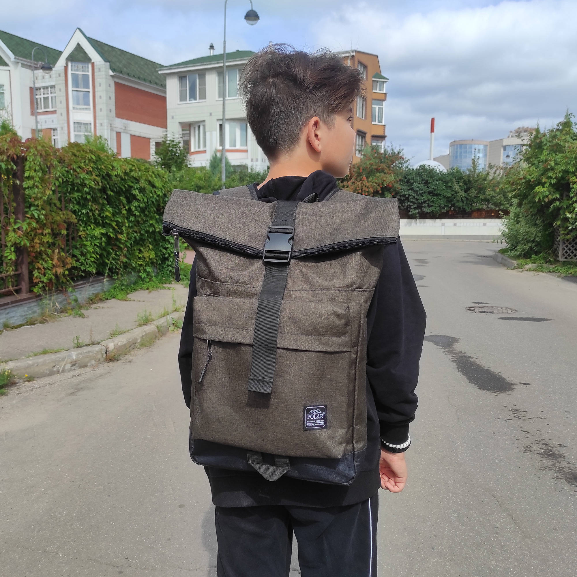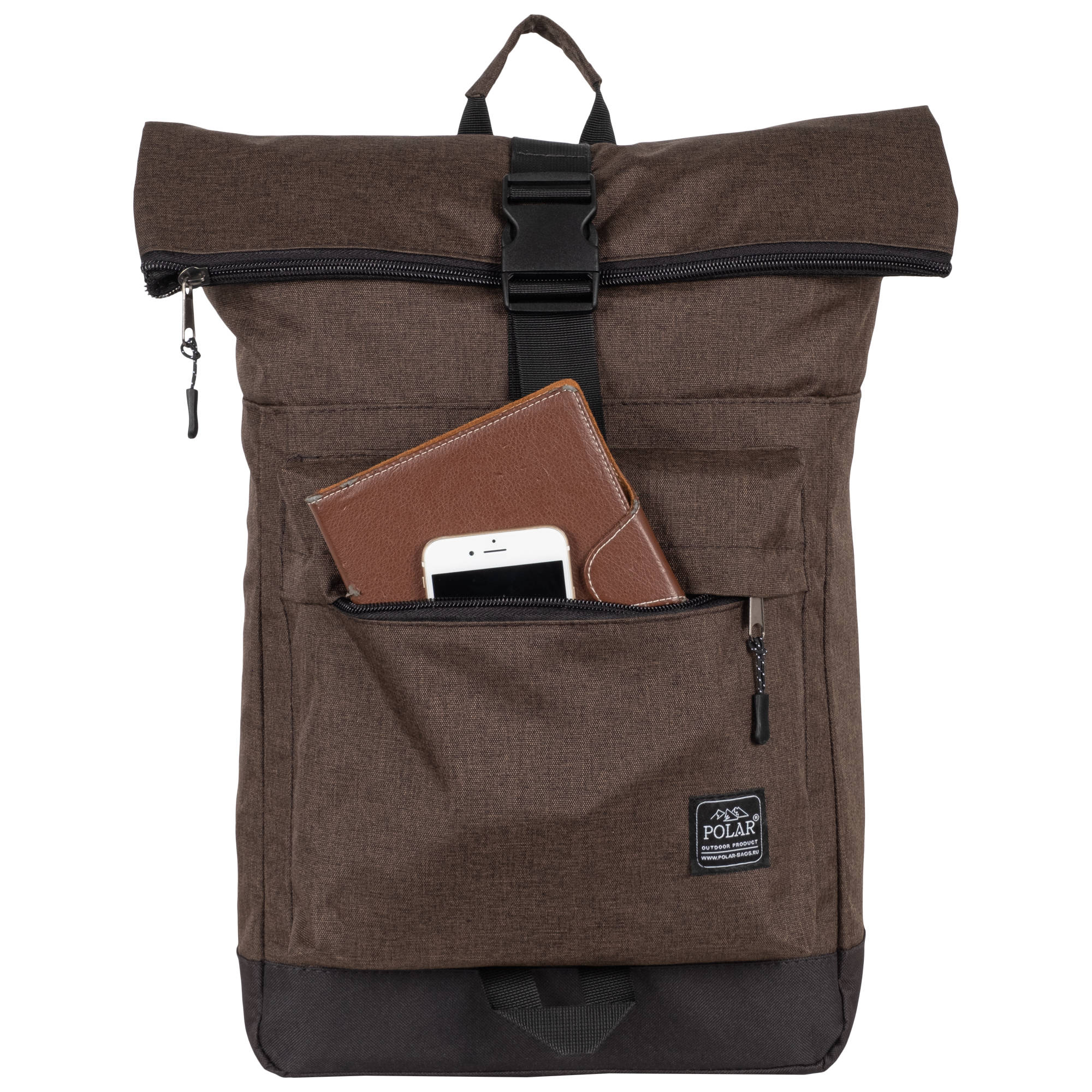 Стильный рюкзак фирмы POLAR для прогулок и учебы, путешествий и спорта, работы, школы, института с верхним клапаном на удобной пряжке.  Такая конструкция позволяет менять объем рюкзака, когда вы захотите увеличить его основное отделение за счет клапана на застежке.  Так же верхний клапан — это дополнительная защита ваших вещей от краж и дождя. Рюкзак выглядит очень современно. Он универсален и очень надежный, подходит как для мужчин, так и для женщин.  Материал рюкзака с водо- и грязеотталкивающей пропиткой.  Эргономические лямки с сетчатыми уплотнителями делают этот рюкзак очень комфортным в использовании и снимают лишнюю нагрузку. Регулирующая грудная стяжка с удобным фиксатором. Основное отделение закрывается на молнию и регулирующую застежку с клапаном на пряжке. Внутри один большой карман для документов формата А4, планшета или  ноутбука до 15"  и небольшой карман на молнии.  Есть накладной карман на молнии для карточек, ключей. Длина лямок 82 см, ширина 7,5 см.