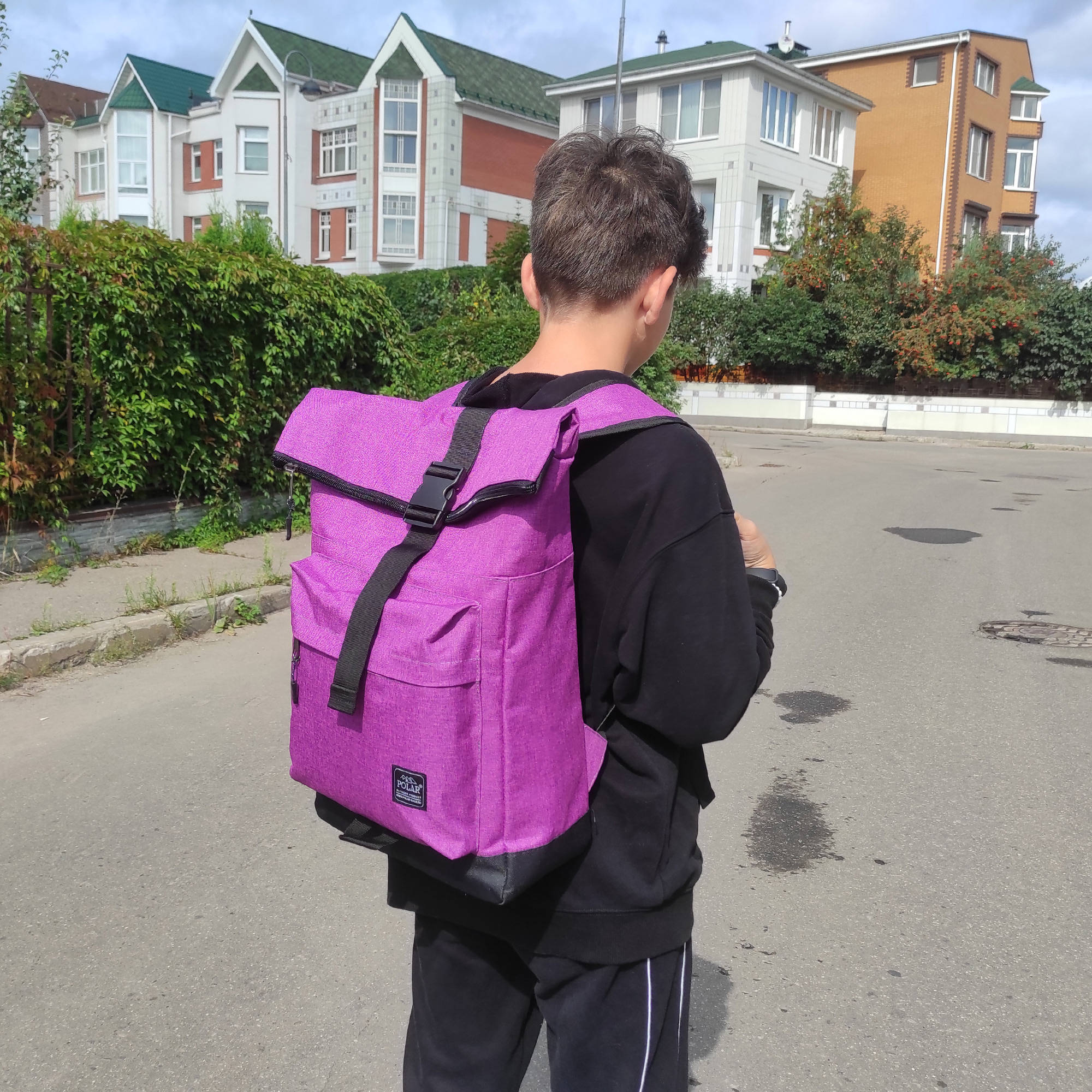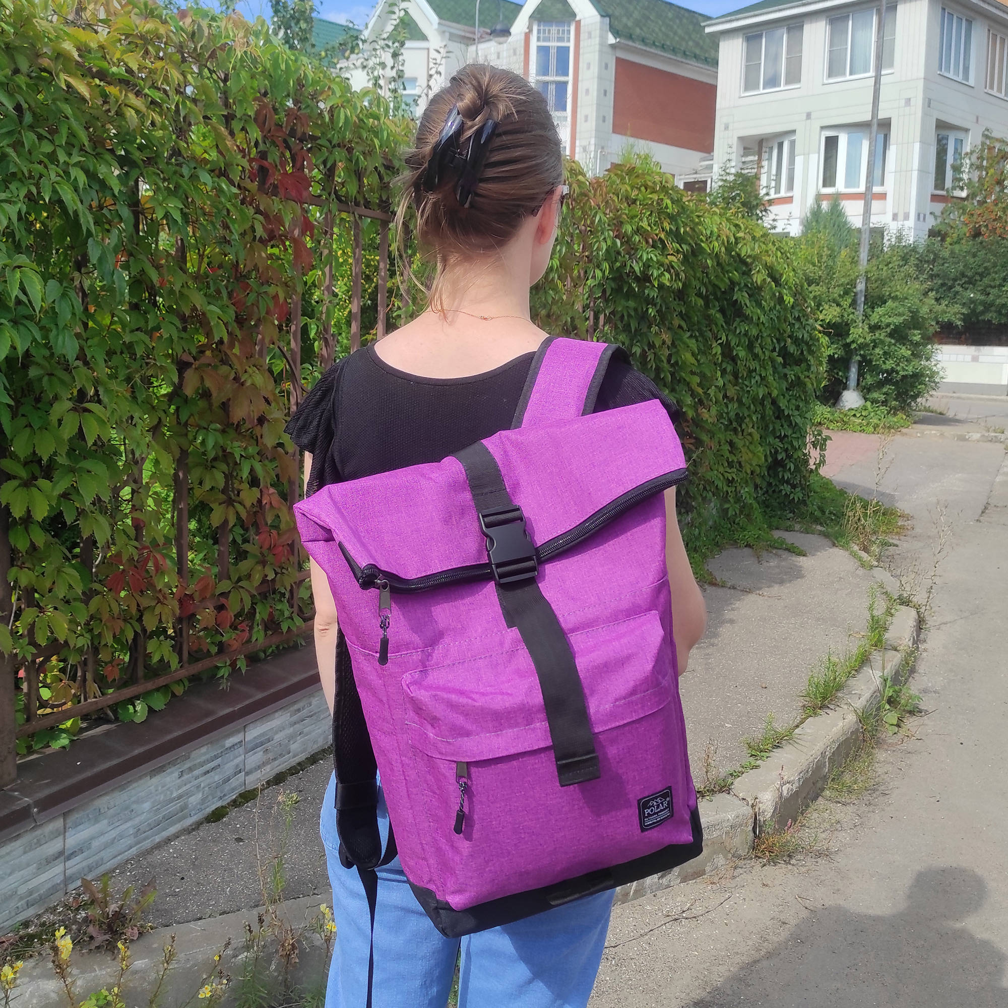 Стильный рюкзак фирмы POLAR для прогулок и учебы, путешествий и спорта, работы, школы, института с верхним клапаном на удобной пряжке.  Такая конструкция позволяет менять объем рюкзака, когда вы захотите увеличить его основное отделение за счет клапана на застежке.  Так же верхний клапан — это дополнительная защита ваших вещей от краж и дождя. Рюкзак выглядит очень современно. Он универсален и очень надежный, подходит как для мужчин, так и для женщин.  Материал рюкзака с водо- и грязеотталкивающей пропиткой.  Эргономические лямки с сетчатыми уплотнителями делают этот рюкзак очень комфортным в использовании и снимают лишнюю нагрузку. Регулирующая грудная стяжка с удобным фиксатором. Основное отделение закрывается на молнию и регулирующую застежку с клапаном на пряжке. Внутри один большой карман для документов формата А4, планшета или  ноутбука до 15"  и небольшой карман на молнии.  Есть накладной карман на молнии для карточек, ключей. Длина лямок 82 см, ширина 7,5 см.
