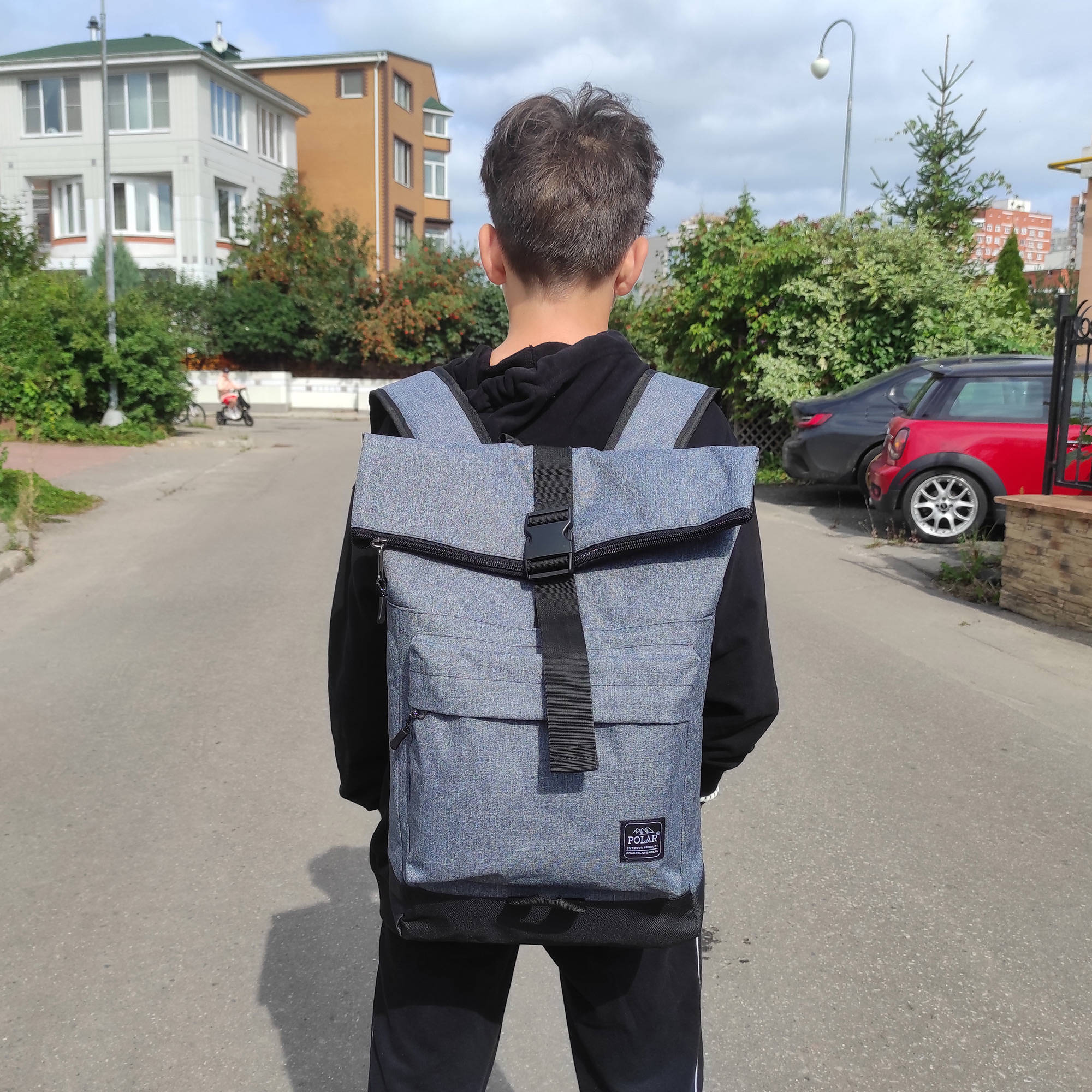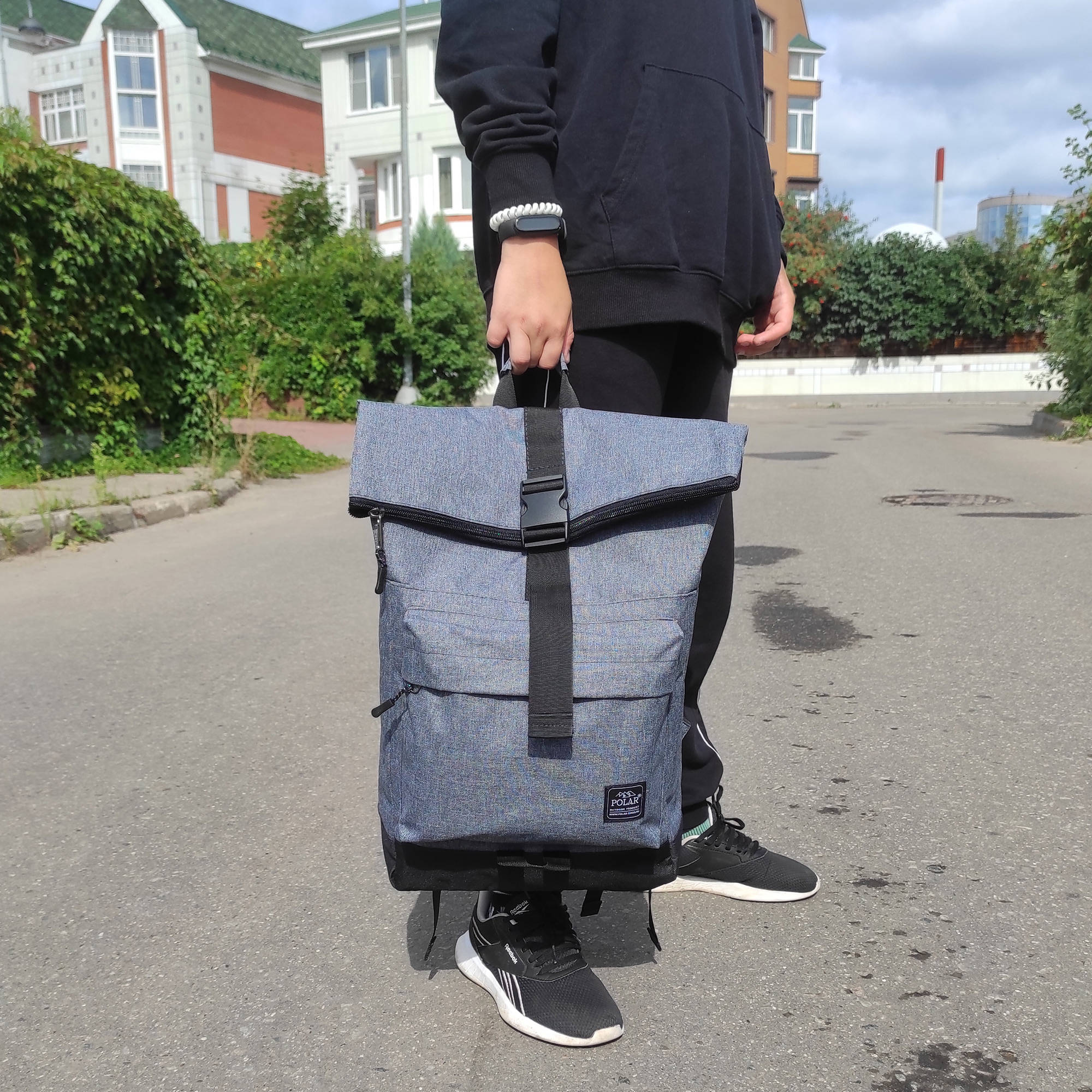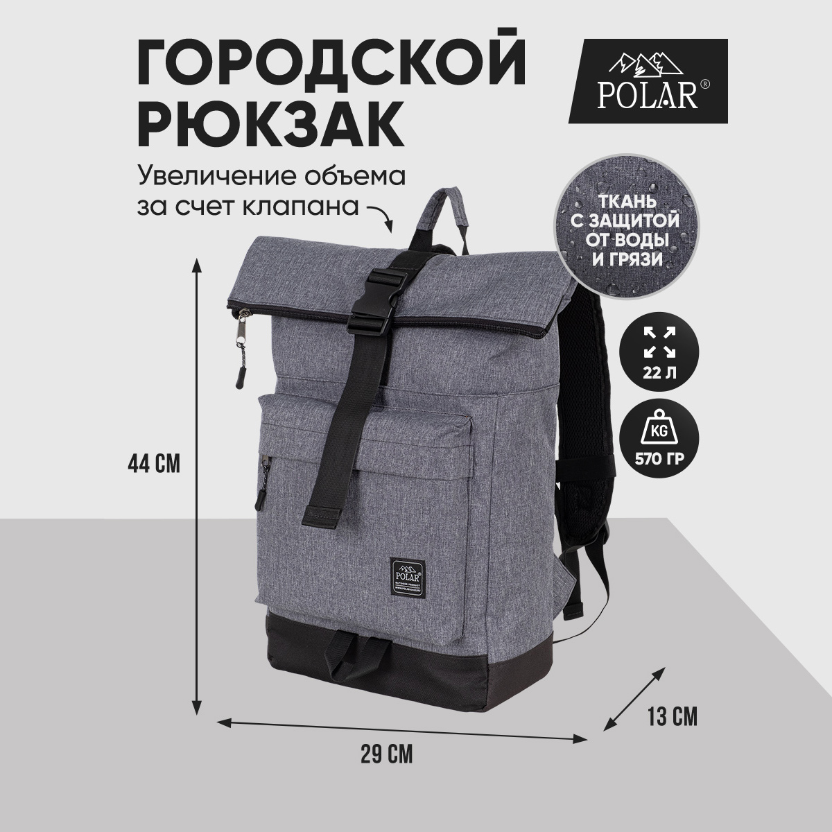 Стильный рюкзак фирмы POLAR для прогулок и учебы, путешествий и спорта, работы, школы, института с верхним клапаном на удобной пряжке. Такая конструкция позволяет менять объем рюкзака, когда вы захотите увеличить его основное отделение за счет клапана на застежке. Так же верхний клапан — это дополнительная защита ваших вещей от краж и дождя. Рюкзак выглядит очень современно. Он универсален и очень надежный, подходит как для мужчин, так и для женщин. Материал рюкзака с водо- и грязеотталкивающей пропиткой. Эргономические лямки с сетчатыми уплотнителями делают этот рюкзак очень комфортным в использовании и снимают лишнюю нагрузку. Регулирующая грудная стяжка с удобным фиксатором. Основное отделение закрывается на молнию и регулирующую застежку с клапаном на пряжке. Внутри один большой карман для документов формата А4, планшета или ноутбука до 15" и небольшой карман на молнии. Есть накладной карман на молнии для карточек, ключей. Длина лямок 82 см, ширина 7,5 см.