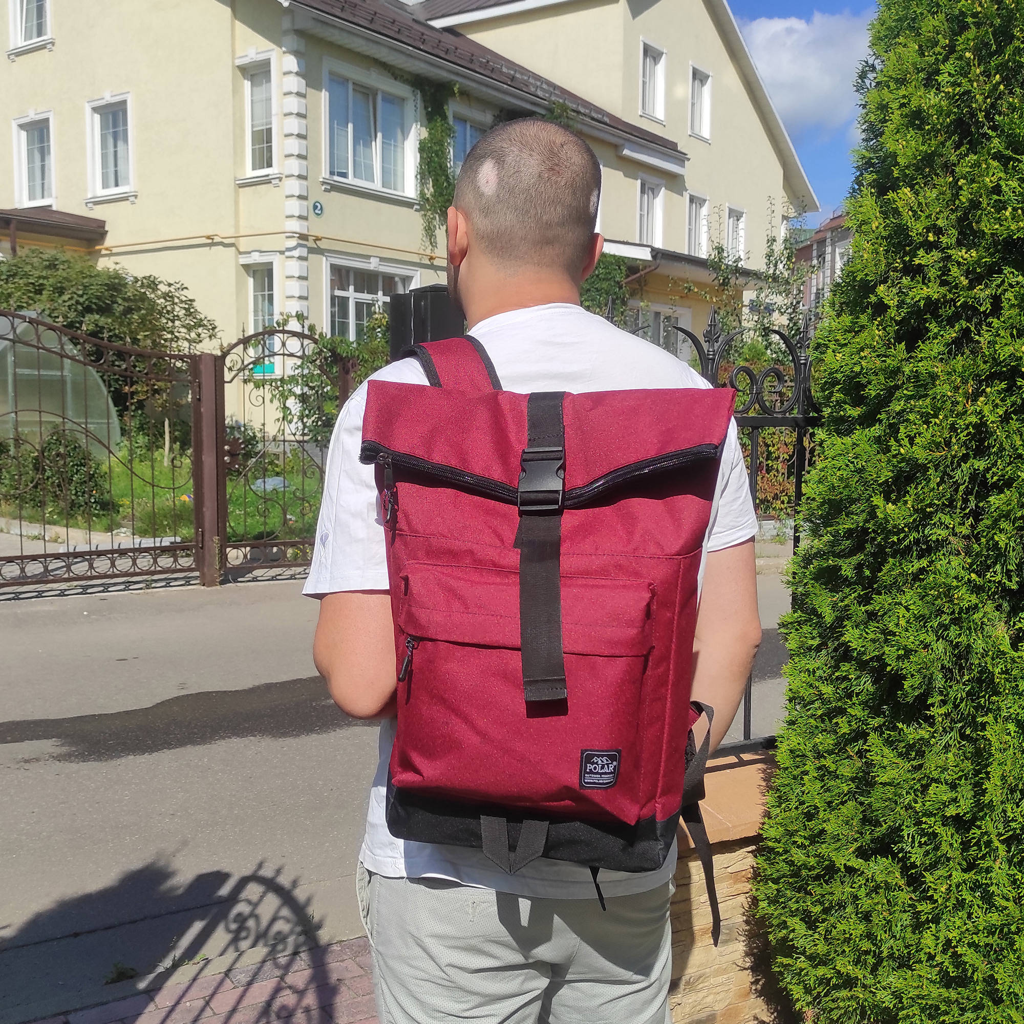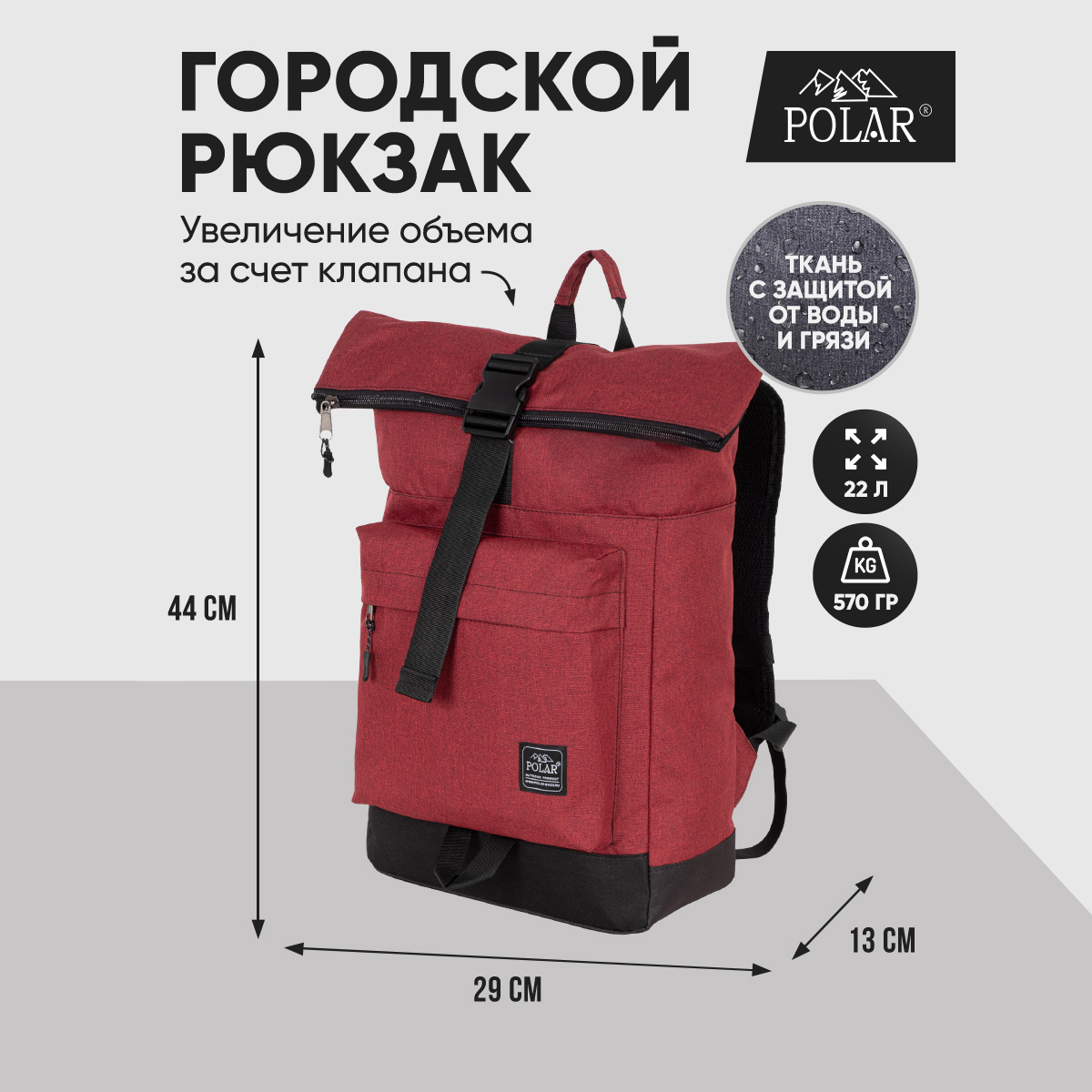 Стильный рюкзак фирмы POLAR для прогулок и учебы, путешествий и спорта, работы, школы, института с верхним клапаном на удобной пряжке.  Такая конструкция позволяет менять объем рюкзака, когда вы захотите увеличить его основное отделение за счет клапана на застежке.  Так же верхний клапан — это дополнительная защита ваших вещей от краж и дождя. Рюкзак выглядит очень современно. Он универсален и очень надежный, подходит как для мужчин, так и для женщин.  Материал рюкзака с водо- и грязеотталкивающей пропиткой.  Эргономические лямки с сетчатыми уплотнителями делают этот рюкзак очень комфортным в использовании и снимают лишнюю нагрузку. Регулирующая грудная стяжка с удобным фиксатором. Основное отделение закрывается на молнию и регулирующую застежку с клапаном на пряжке. Внутри один большой карман для документов формата А4, планшета или  ноутбука до 15"  и небольшой карман на молнии.  Есть накладной карман на молнии для карточек, ключей. Длина лямок 82 см, ширина 7,5 см.