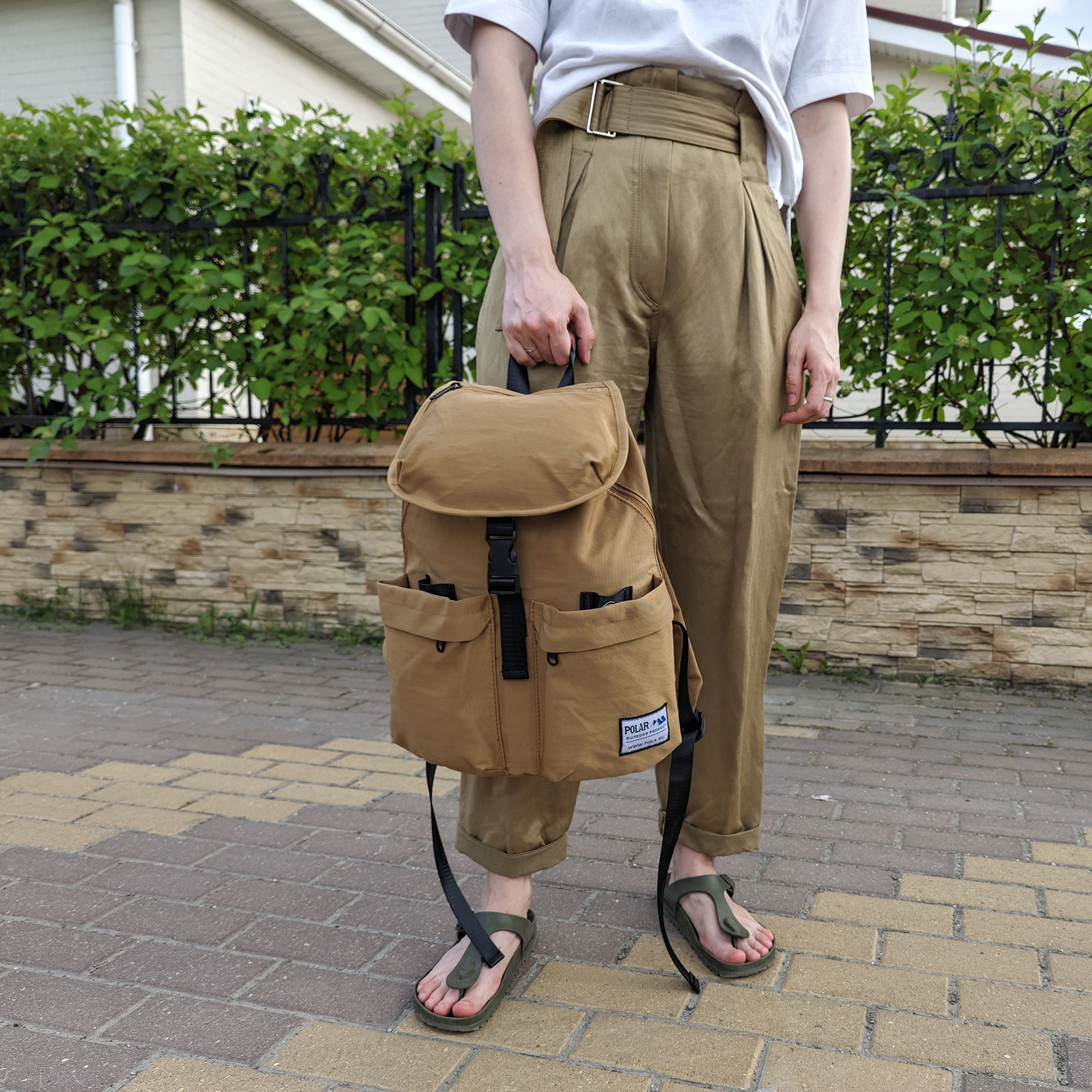 Рюкзак фирмы Polar мягкая поролоновая спинка. Основное отделение закрывается клапаном на удобной пряжке. Вместительное основное отделение, внутри которого большой открытый карман и два кармашка для мелочей и мобильного телефона. В рюкзак отлично помещается формат А4. В основное отделение рюкзака можно попасть через молнию на спинке рюкзака. Спереди рюкзака два кармана, которые закрываются на кнопки и потайную молнию. На клапане небольшой карман на молнии. Максимальная длина лямок 89 см. Высота ручки 8 см.