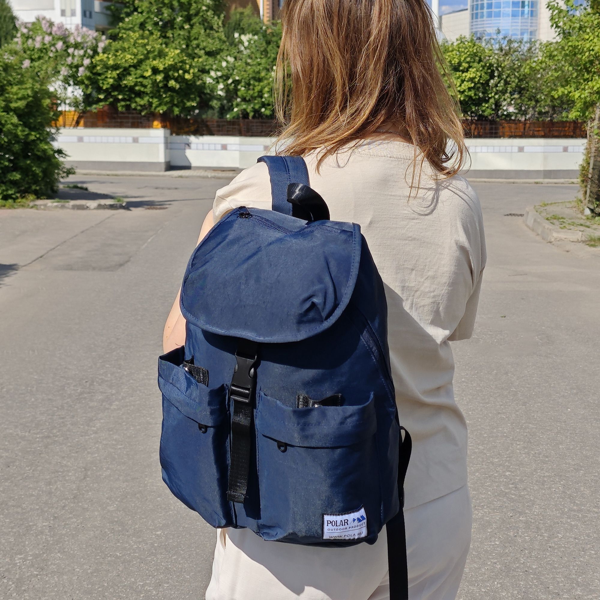 Рюкзак фирмы Polar мягкая поролоновая спинка. Основное отделение закрывается клапаном на удобной пряжке. Вместительное основное отделение, внутри которого большой открытый карман и два кармашка для мелочей и мобильного телефона. В рюкзак отлично помещается формат А4. В основное отделение рюкзака можно попасть через молнию на спинке рюкзака. Спереди рюкзака два кармана, которые закрываются на кнопки и потайную молнию. На клапане небольшой карман на молнии. Максимальная длина лямок 89 см. Высота ручки 8 см.