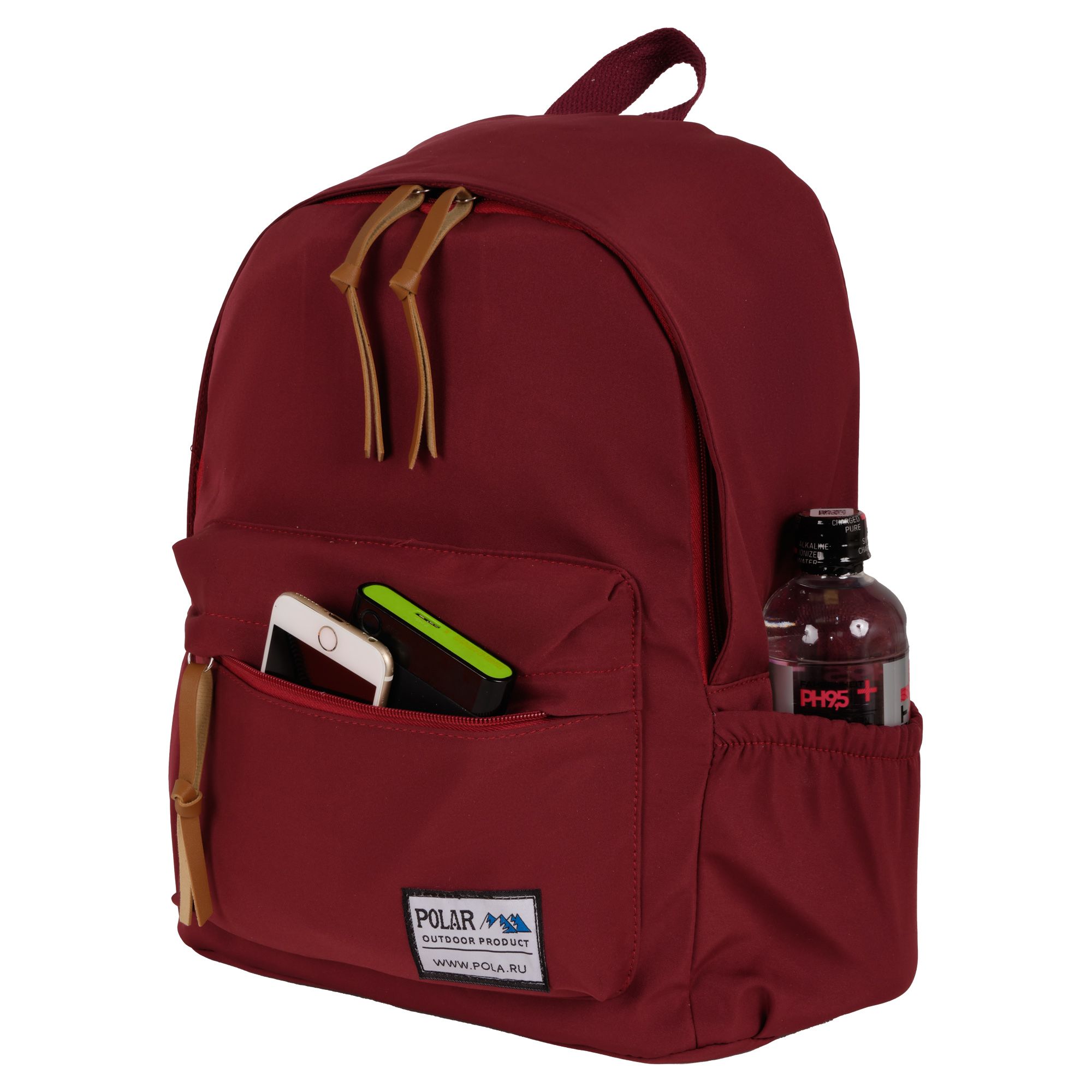 Городской рюкзак фирмы Polar имеет мягкую поролоновую спинку и мягкие лямки. Рюкзак состоит из одного отделения, которое закрывается на молнию. Внутри отделения один карман на молнии и два небольших открытых кармашка. Спереди объемный карман для небольших предметов. По бокам два кармана на резинке. Сзади потайной небольшой кармашек. Максимальная длина лямок 80 см. Высота ручки 8 см.