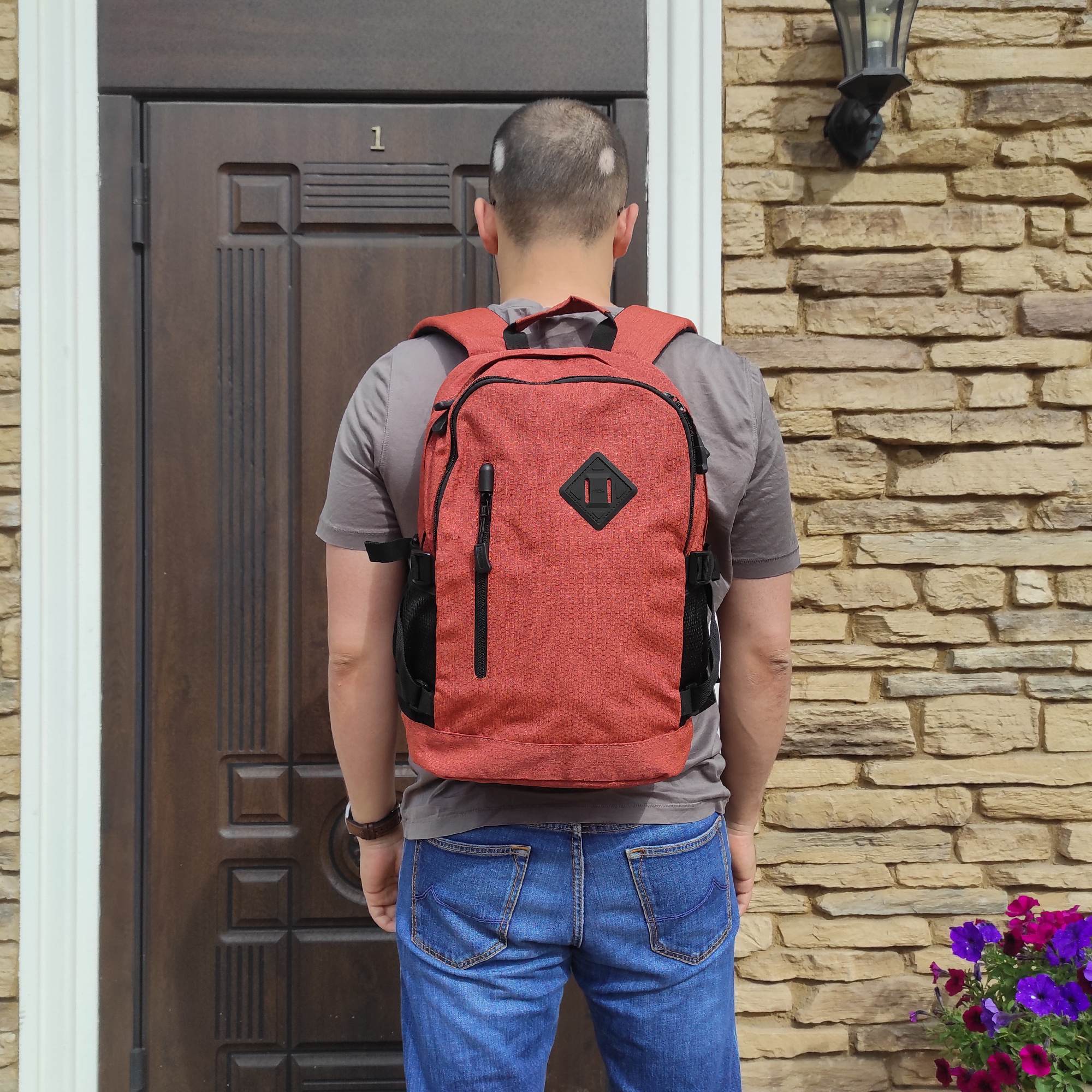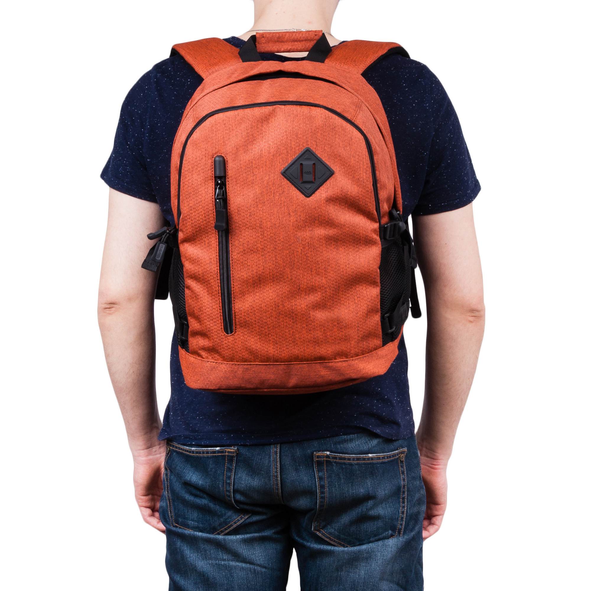 Городской рюкзак Polar прекрасно подходит для повседневной носки. Спинка мягкая. Основное отделение закрывается карманом на молнии, внутри маленький карман на молнии для небольших предметов, и большой открытый карман, где можно разместить как планшет или документы и папки формата А4. Спереди накладной карман на молнии, внутри которого органайзер. В нем также можно разместить документы формата А4. На клапане также есть вместительный карман на молнии. По бокам расположены открытые карманы из сетчатого материла, и стяжки из резинки для регулирования объема рюкзака. Лямки мягкие, с поролоновыми вставками. Сверху рюкзака ручка для переноски.