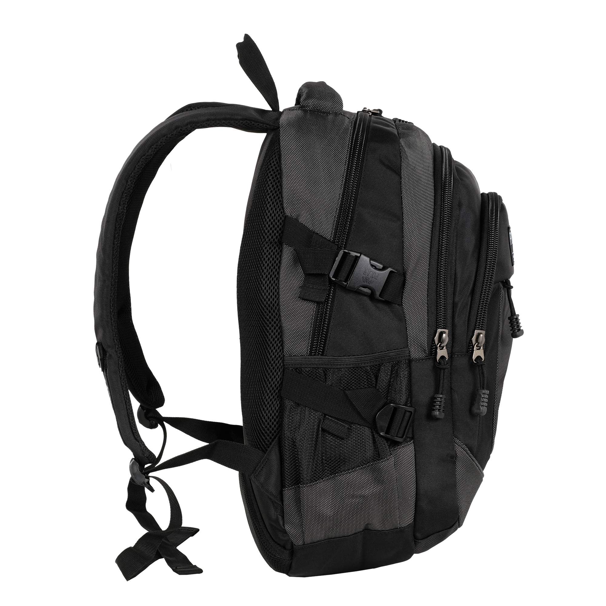 Удобный городской рюкзак для походов и прогулок. Полностью вентилируемая и удобная ортопедическая спинка, мягкие плечевые лямки создают дополнительный комфорт при использовании данной модели. Рюкзак состоит из трёх отделений, которые закрываются на пластиковую молнию и небольшого накладного кармана. Центральное отделение предназначено для персональных вещей и документов формата А4, среднее отделение для спортивной обуви и т.д., третье отделение и карман для более мелких вещей. У рюкзака есть два боковых сетчатых кармана под бутылки с водой на резинке и регулируемая боковая стяжка с удобным фиксатором.