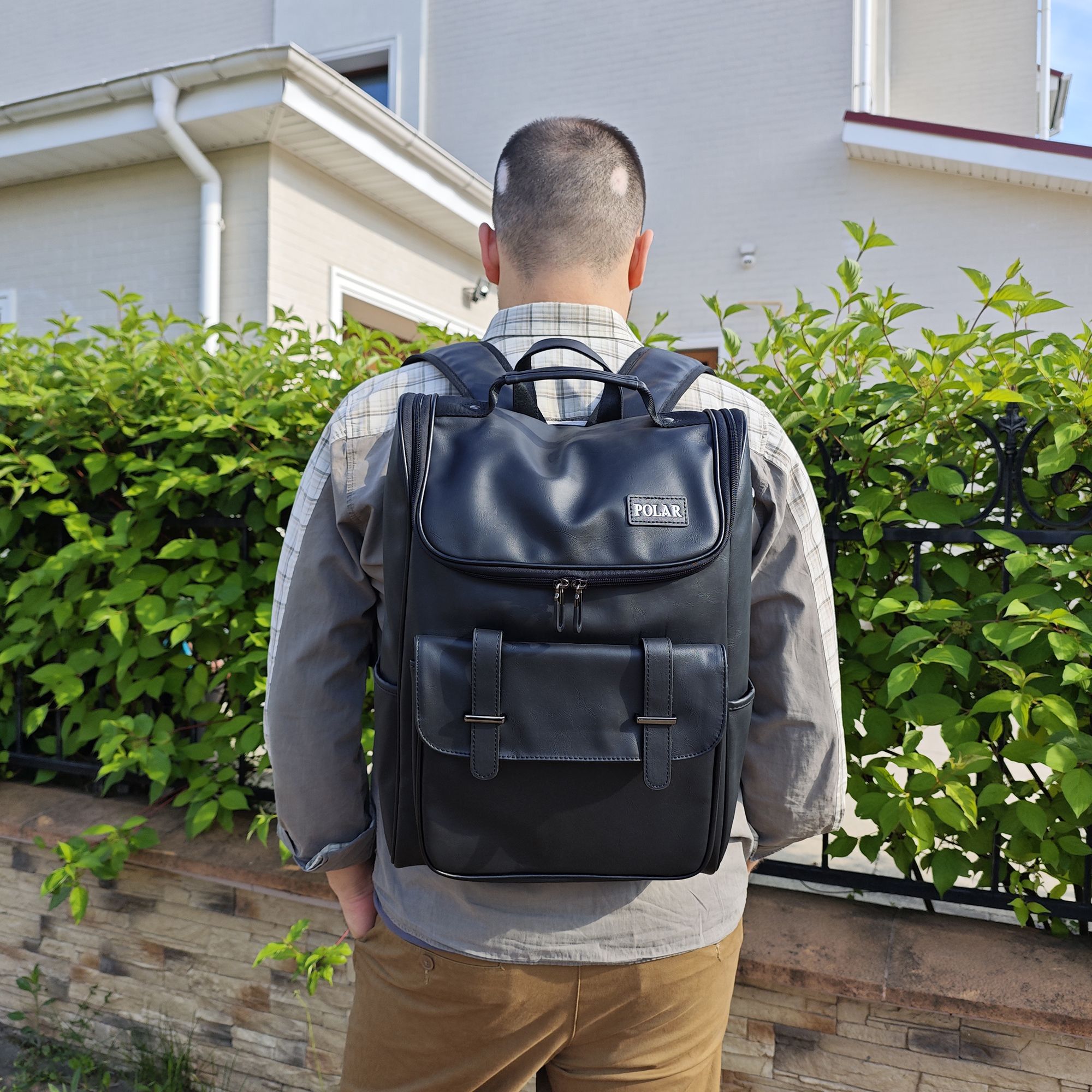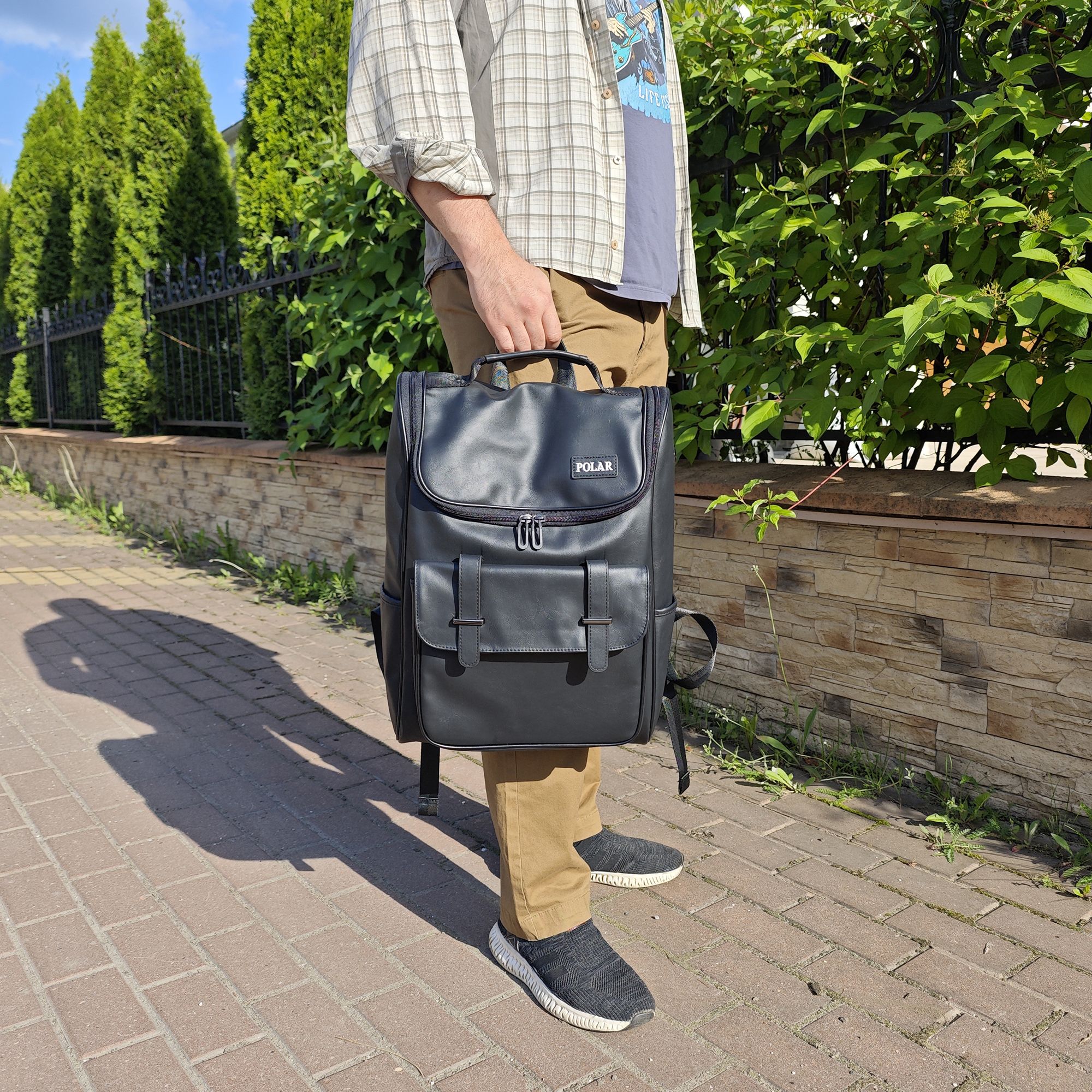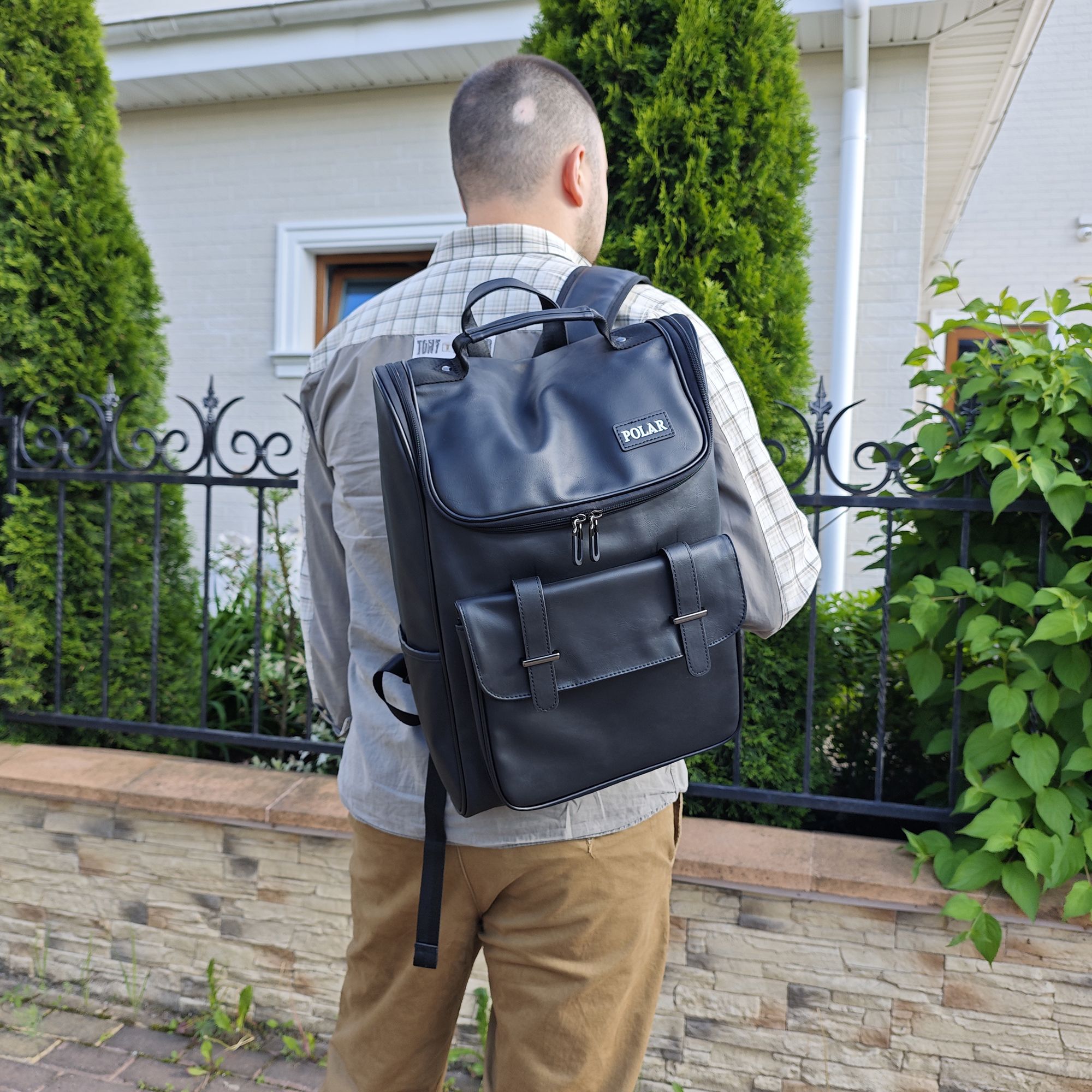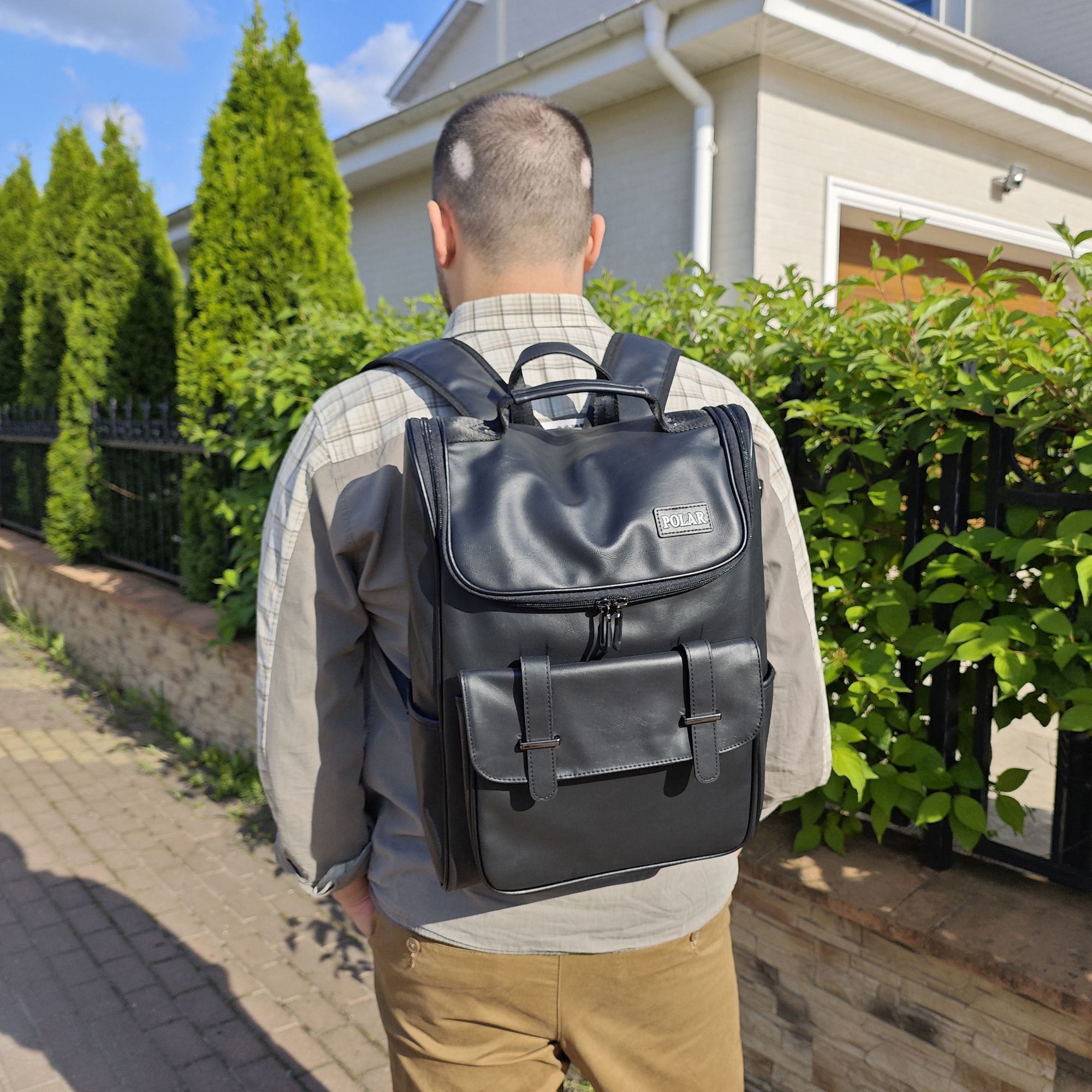 Городской рюкзак фирмы POLAR из экокожи. Основное отделение закрывается на молнию. Внутри основного отделения карман для ноутбука 14 дюймов. Два боковых кармана. Максимальная длинна лямок 94 см.