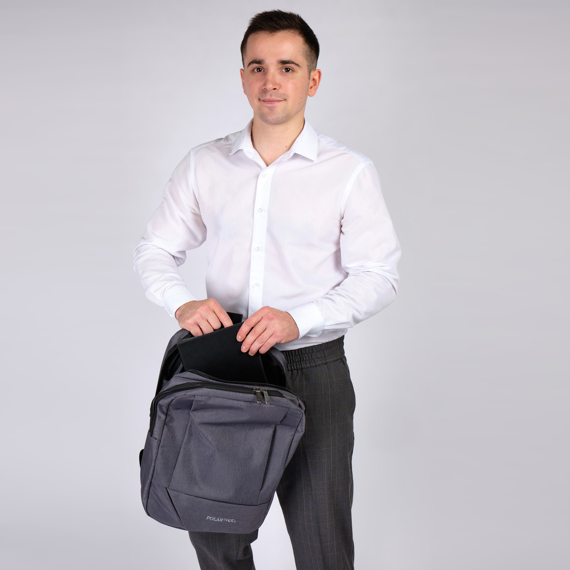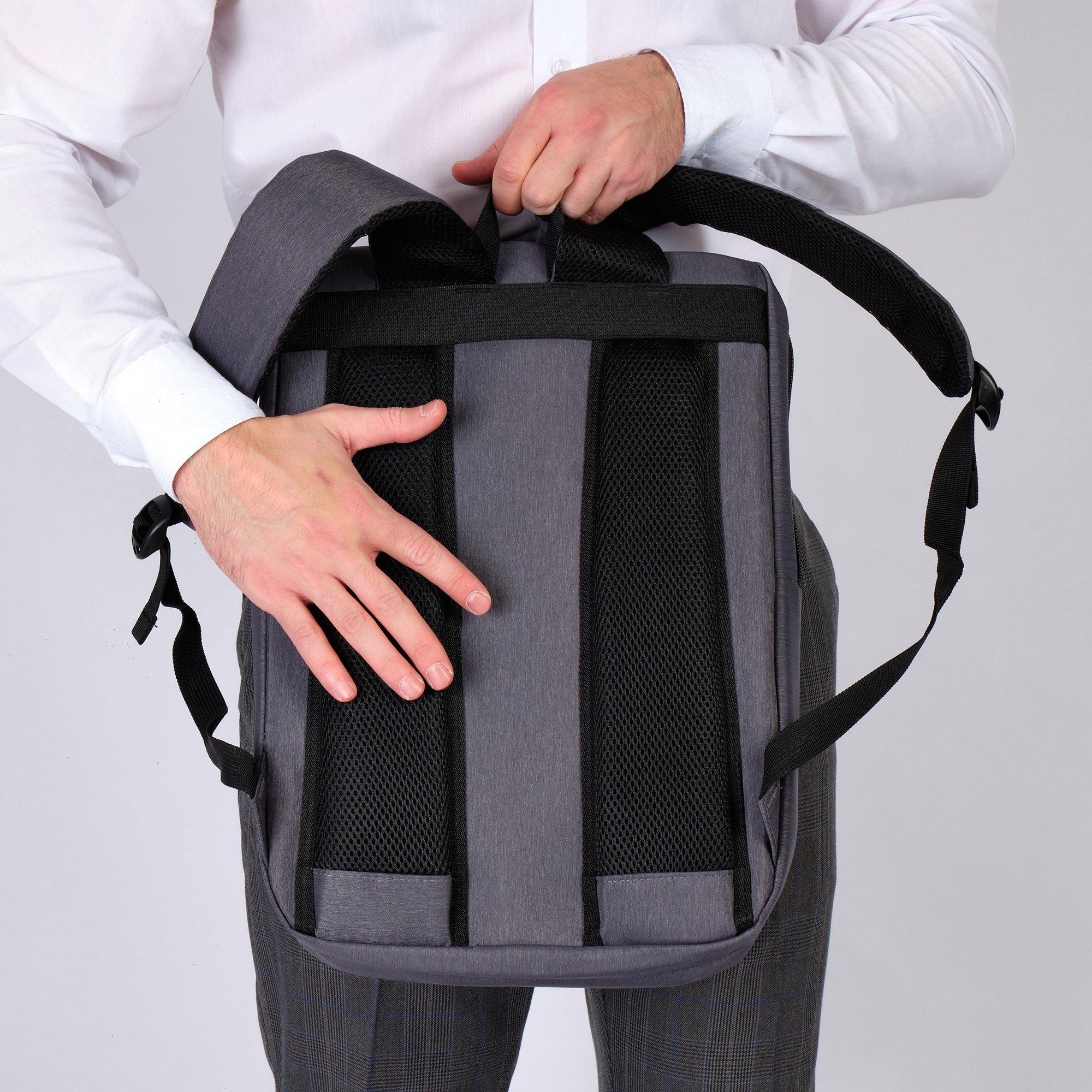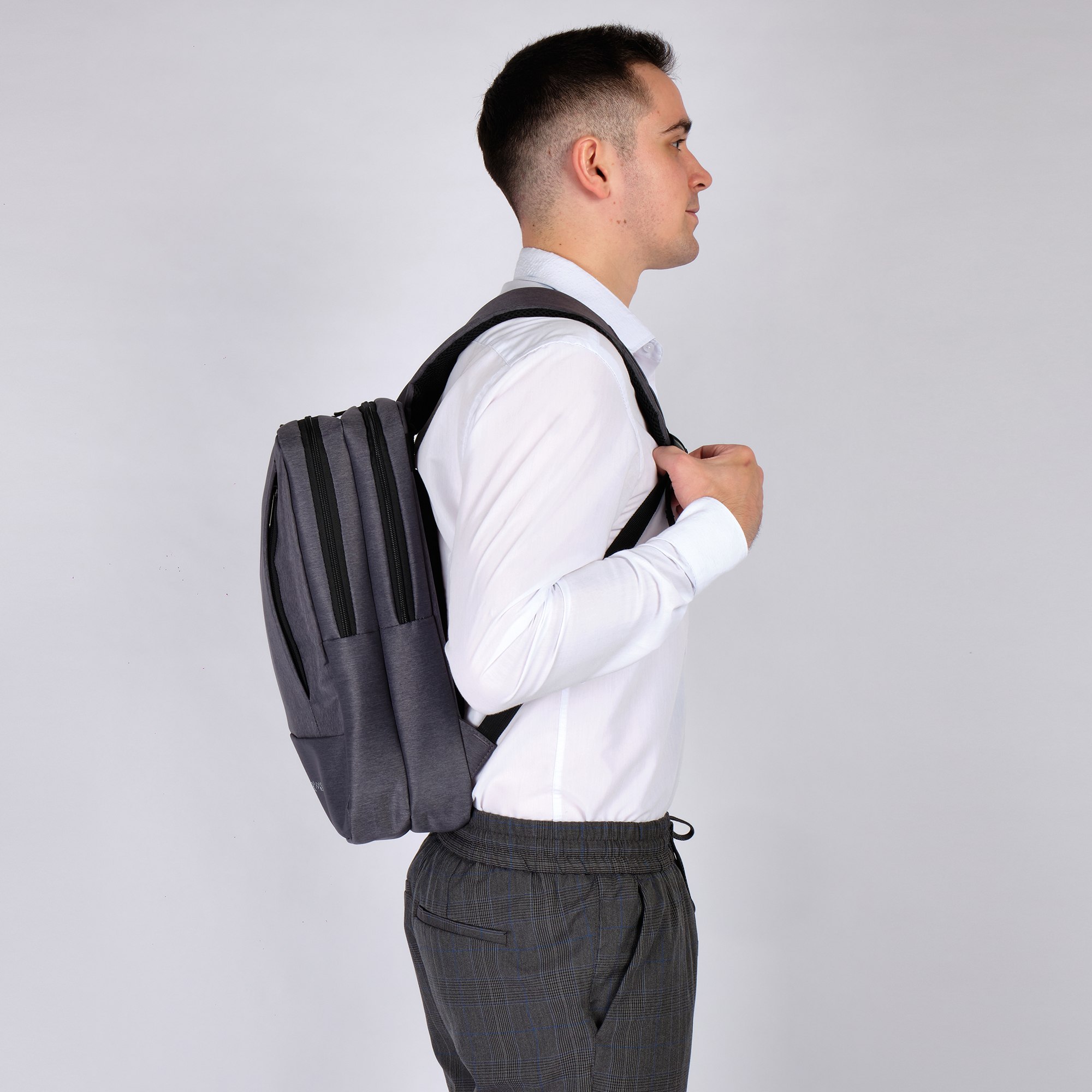 Стильный, городской,  деловой рюкзак с отделением для ноутбука выполнен в строгом дизайне с минимумом внешних деталей. Модель имеет универсальную расцветку, которая прекрасно сочетается как с повседневной одеждой, так и с офисным дресс-кодом.