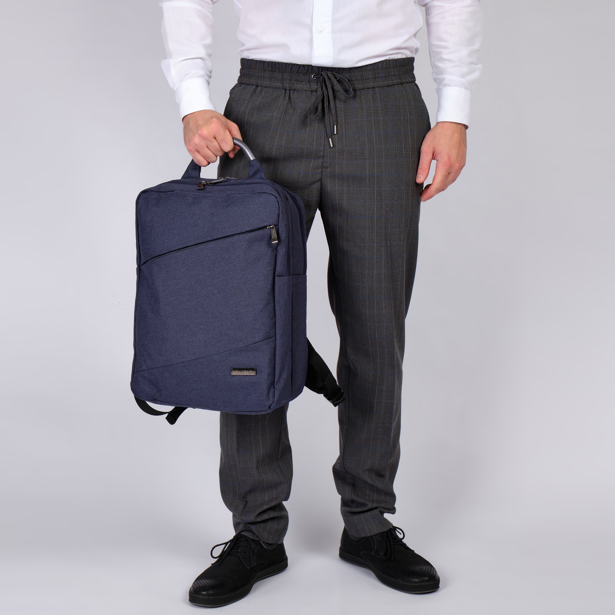 Рюкзак имеет два независимых отделения, который закрываются на молнию. Внутри первого – есть отделение для ноутбука диаганалью 15" размер отсека 38 х 27 х 2,5 и планшета, внутри второго отделения есть карман на молнии и организационная панель для канцелярии. Спереди у рюкзака скрытый карман на молнии. Спинка и лямки рюкзака отделаны мягким вентилируемым материалом, благодаря этому с рюкзаком комфортно ходить целый день. Поверхность рюкзака водостойкая. При загрязнении рюкзак чистится обычными влажными салфетками.