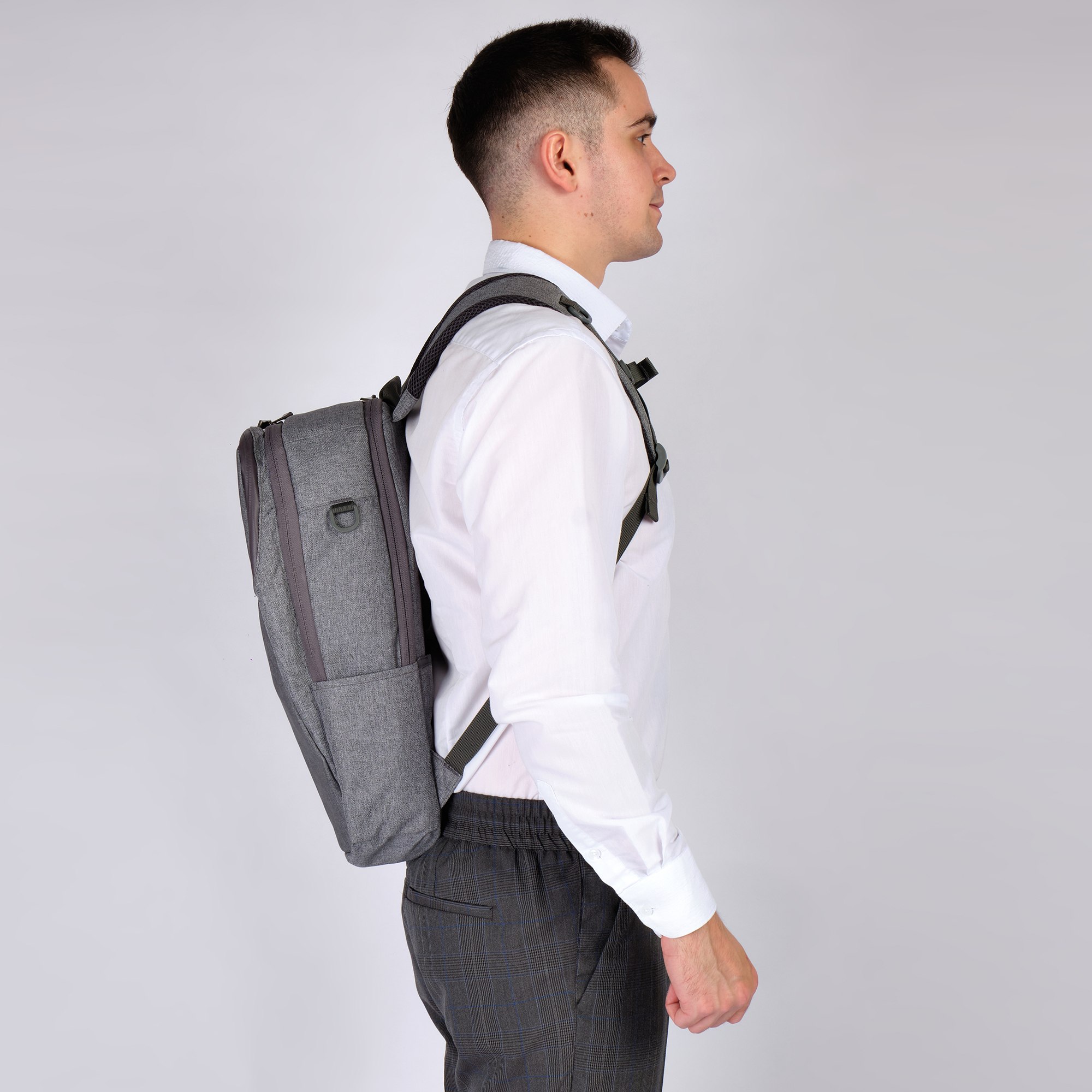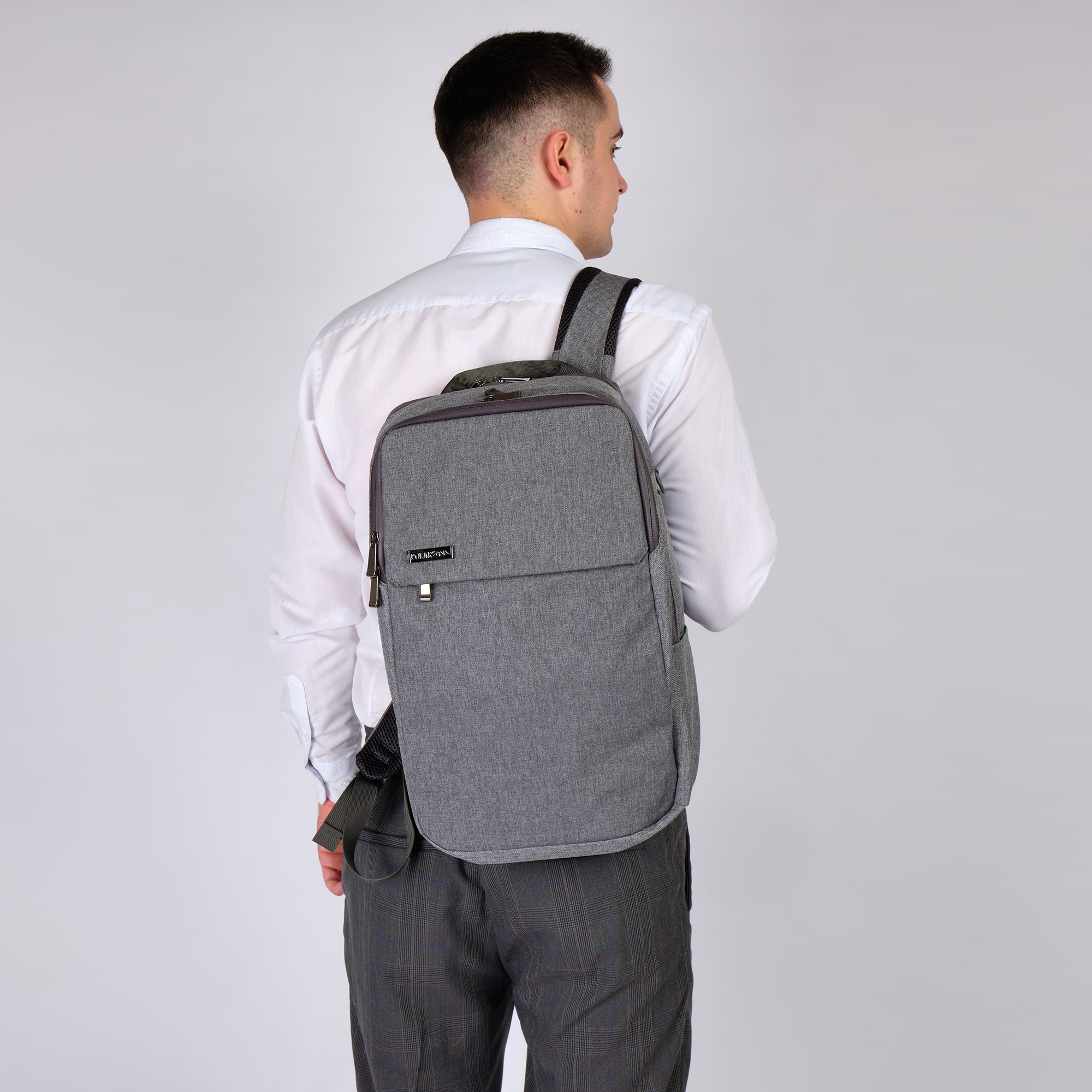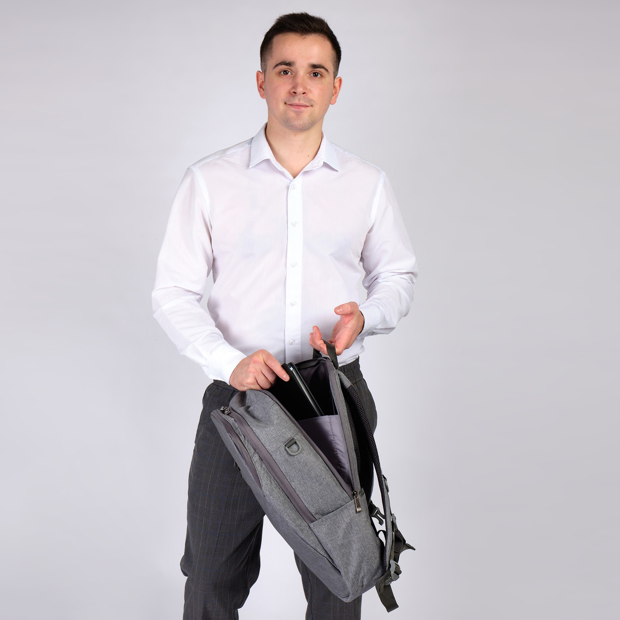 Городской рюкзак с отделением для ноутбука создан специально для повседневной жизни и имеет множество удобных и нужных особенностей. У рюкзака три независимых отделения, в которых можно разместить все необходимые вещи для школы, работы или путешествия. В первом отделении есть уплотненный карман для ноутбука диагональю до 17”, размеры отсека для ноутбука 39 x 27 x 2.5. Второе отделение свободного назначения, имеет открытый карман и карман на молнии. В этом отделении отлично разместятся книги или документы формата А4. В третьем отделении множество потайных карманов на молнии и открытый карман с флисовой подкладкой для планшета или другого гаджета. На передней стенке прорезной карман на молнии для мелочей. По бокам несколько открытых карманов. Сзади рюкзака предусмотрена широкая лента, с помощью которой рюкзак можно повесить на ручку чемодана, что очень удобно в путешествии или в деловой поездке.