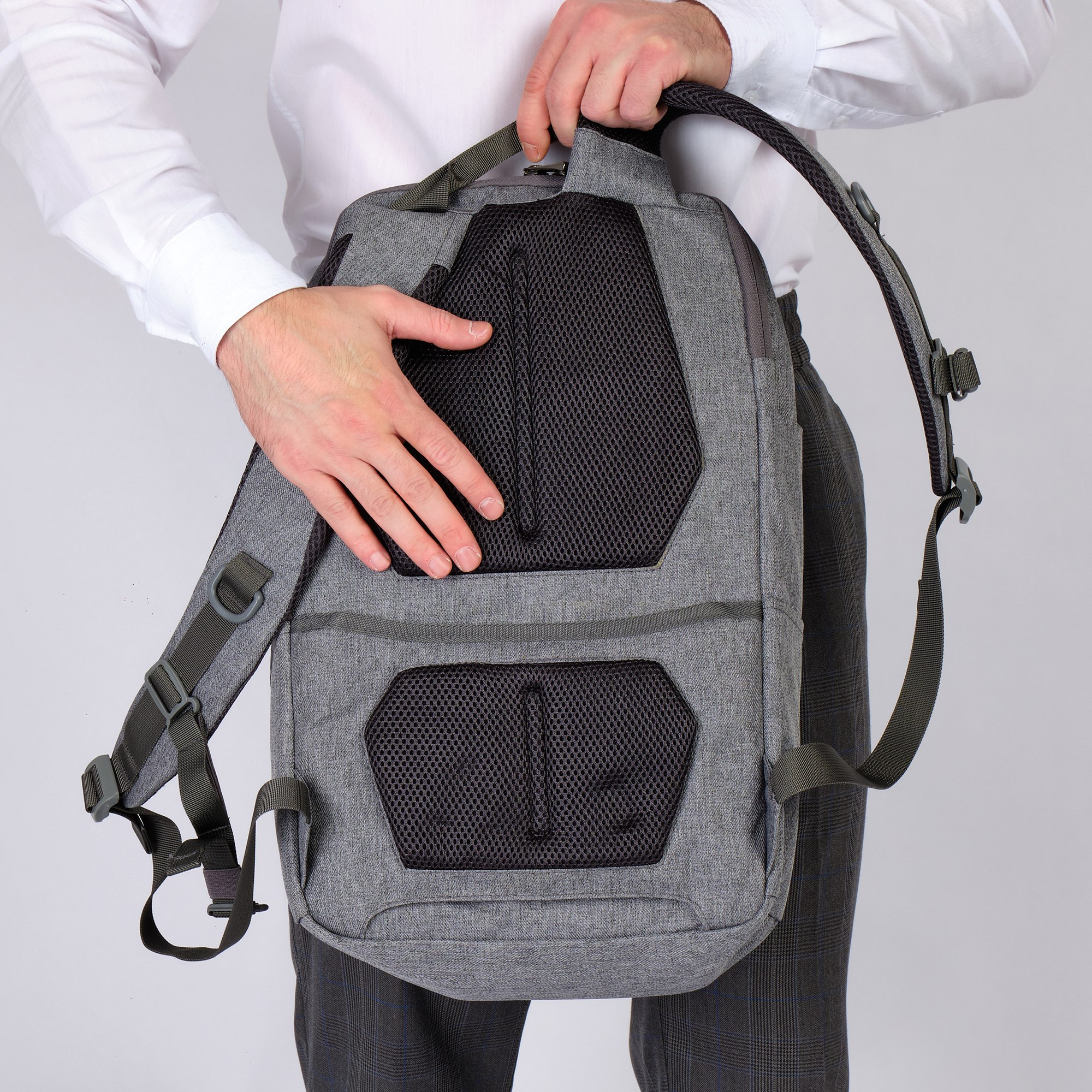 Спинка рюкзака отделана мягким вентилируемым материалом, благодаря этому с рюкзаком комфортно ходить целый день.