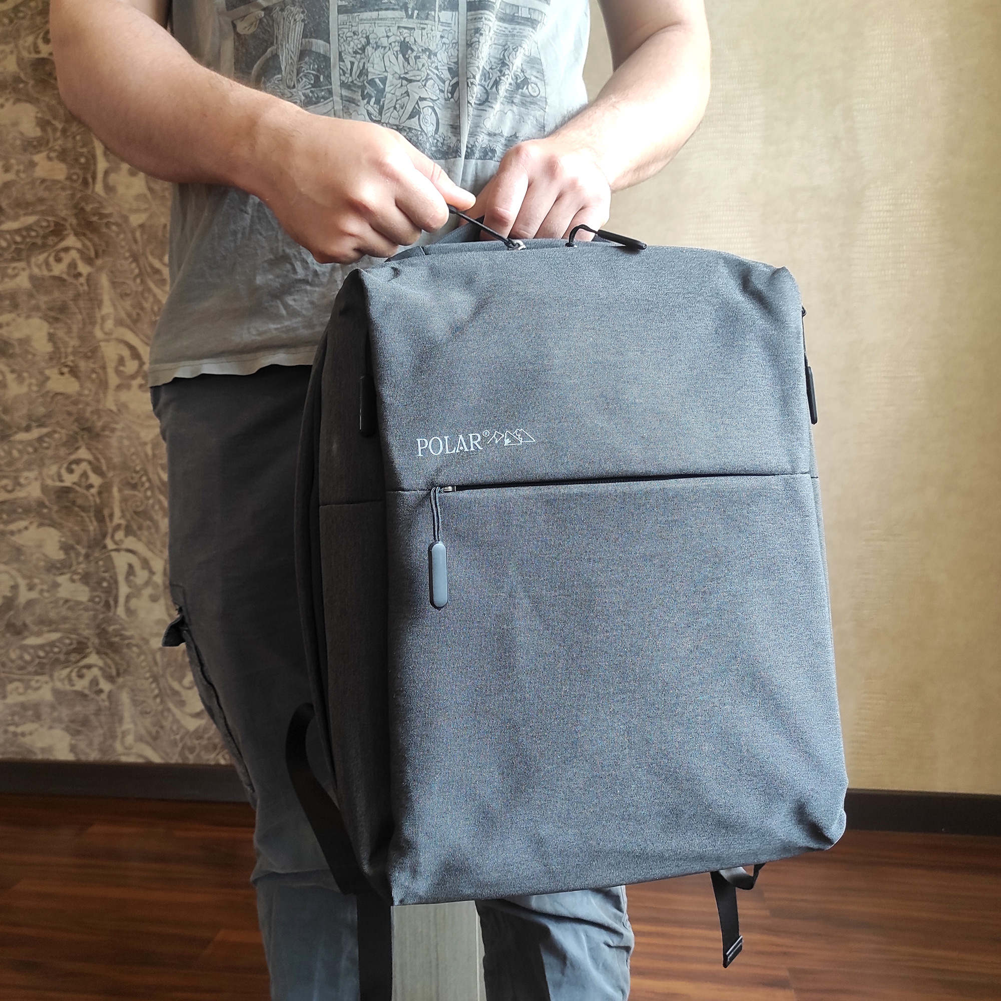 Рюкзак выполнен из прочного водонепроницаемого материала. У рюкзака очень удобная ручка для переноски и эргономичные лямки, регулируемые по длине.